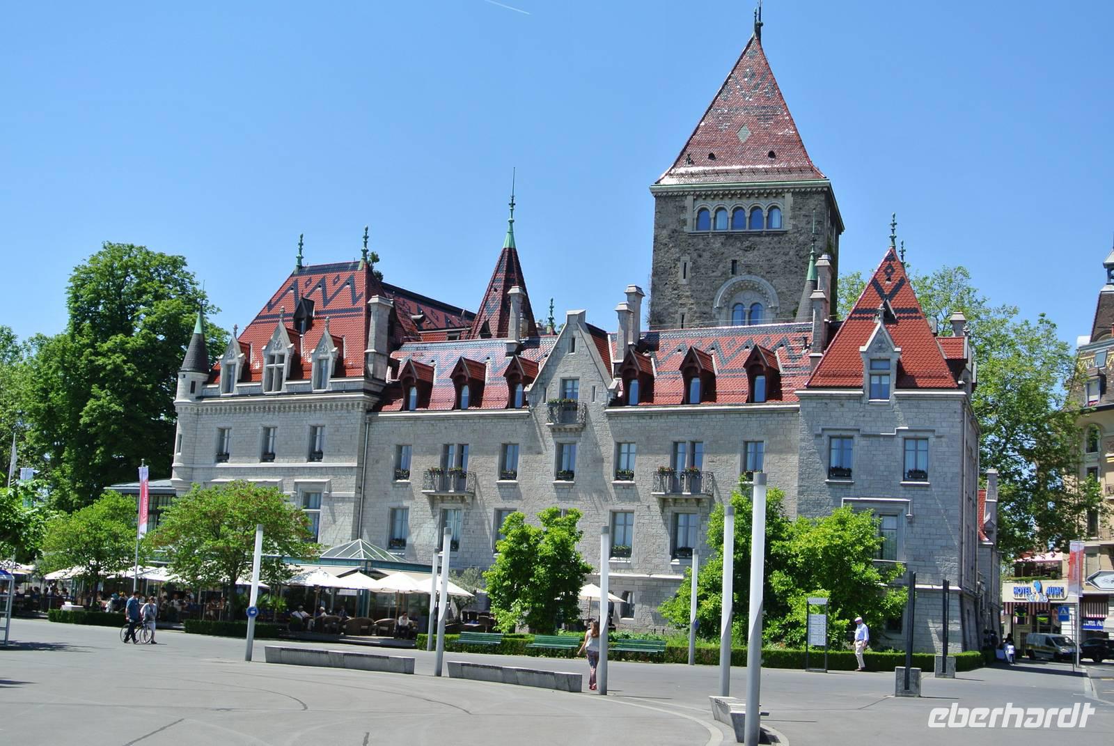 Zunächst machten wir vom Busparkplatz am See entlang und am olympischen Museum vorbei, eine Stadtrundfahrt durch die Innenstadt von Lausanne. Die Fahrt führte uns über die Brücken der Altstadt zum Schloss, dass oben auf dem Hügel lag. Während der Fahrt erklärte uns Irene mit ihrem Schweizer Dialekt und leicht ironischem Schweizer Humor, die wechselvolle Geschichte sowie die Gegenwart von Lausanne als Bildungs- und Dienstleistungsmetropole der Schweiz.