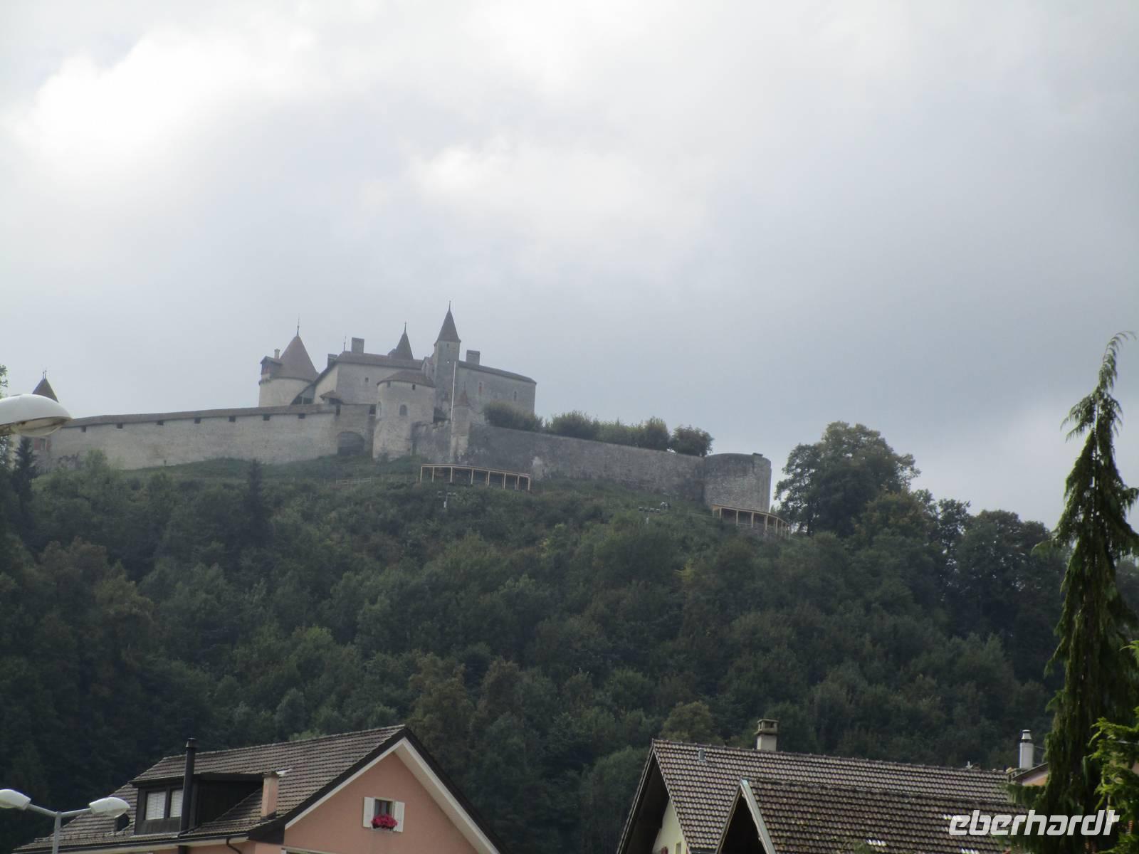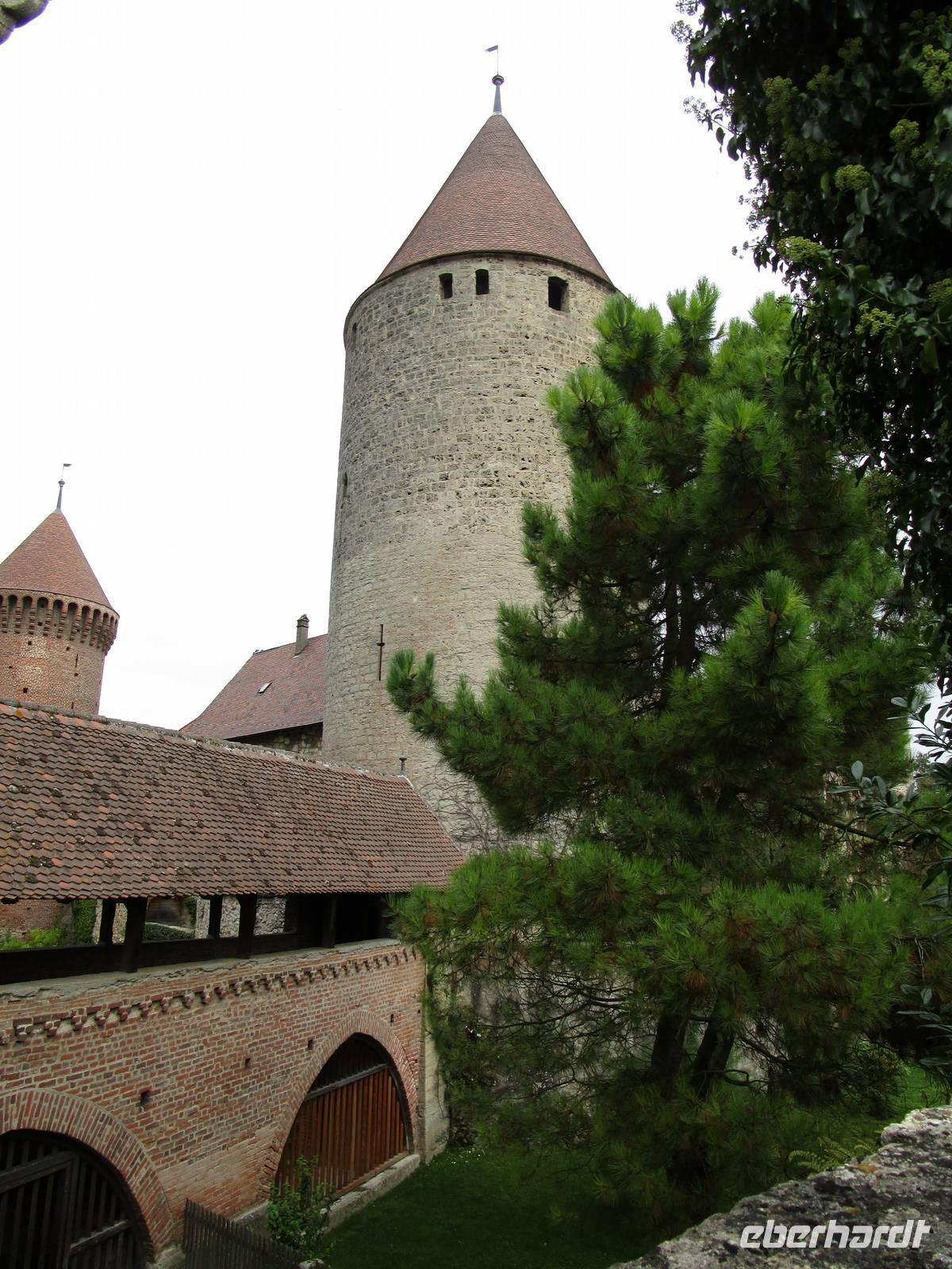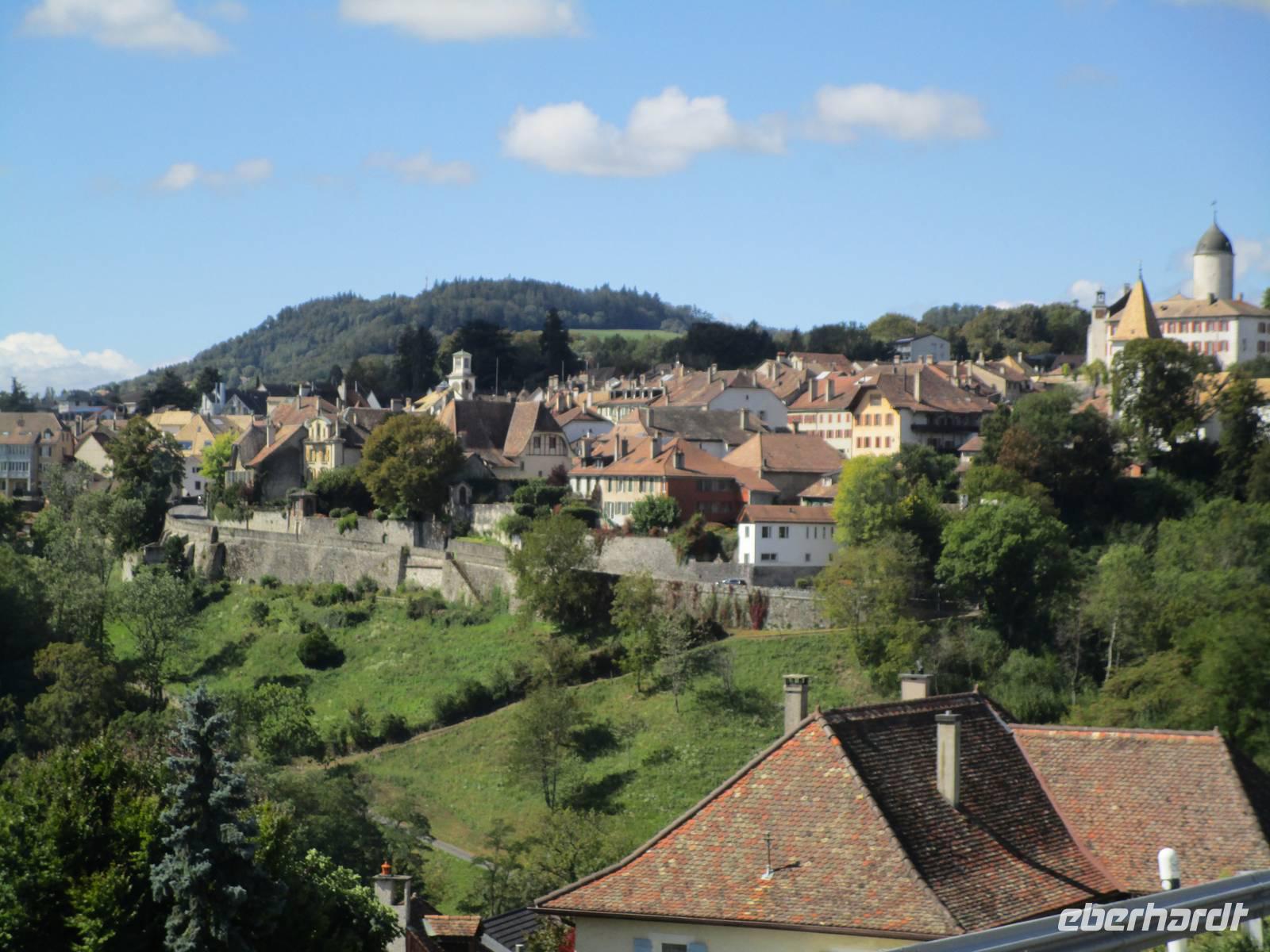 Einige Kilometer weiter liegt der kleine Ort Estavayer-le-Lac. Max Wehrde führt uns durch den kleinen Ort. Viele Bauten des Mittelalters blieben erhalten, darunter auch eines der ursprünglich 3 Schlösser. Hier sind Verwaltungen untergebracht. Der Bau aus savoyardischer Zeit auf einem Steilhang mit seinen mächtigen Türmen dominiert den Ort.