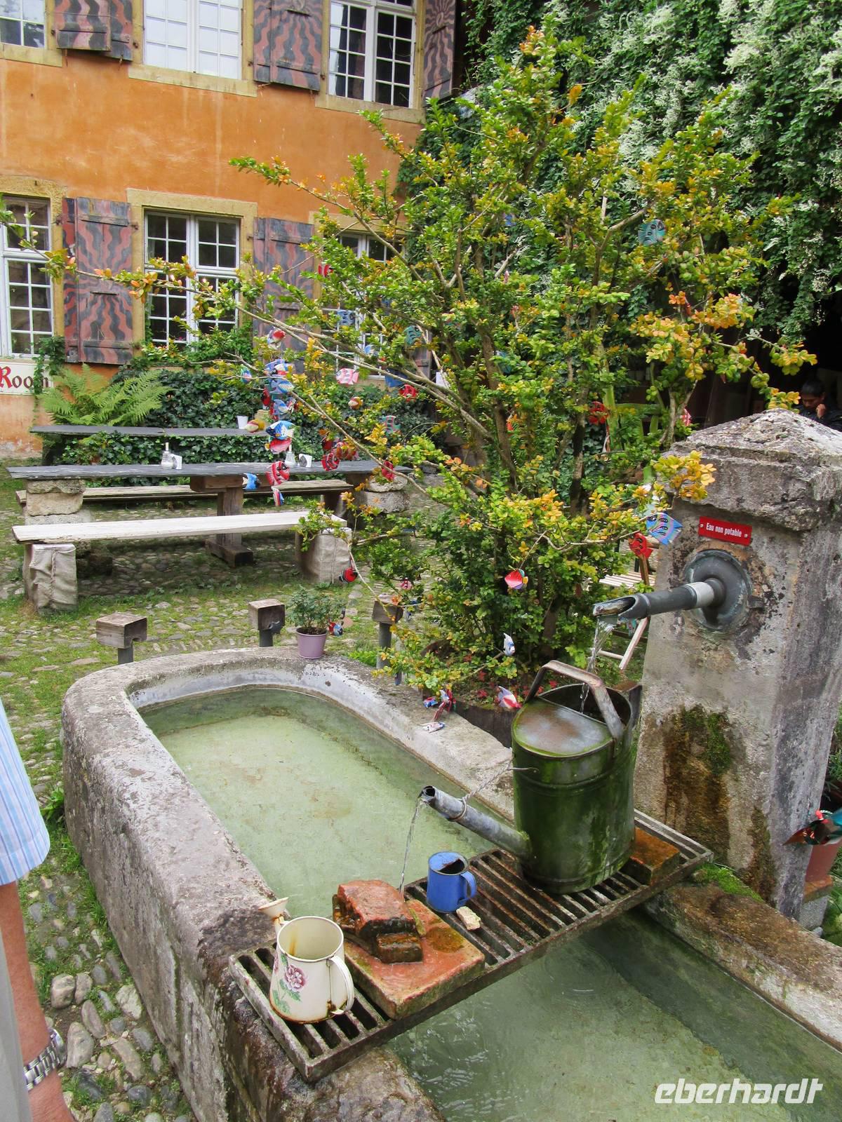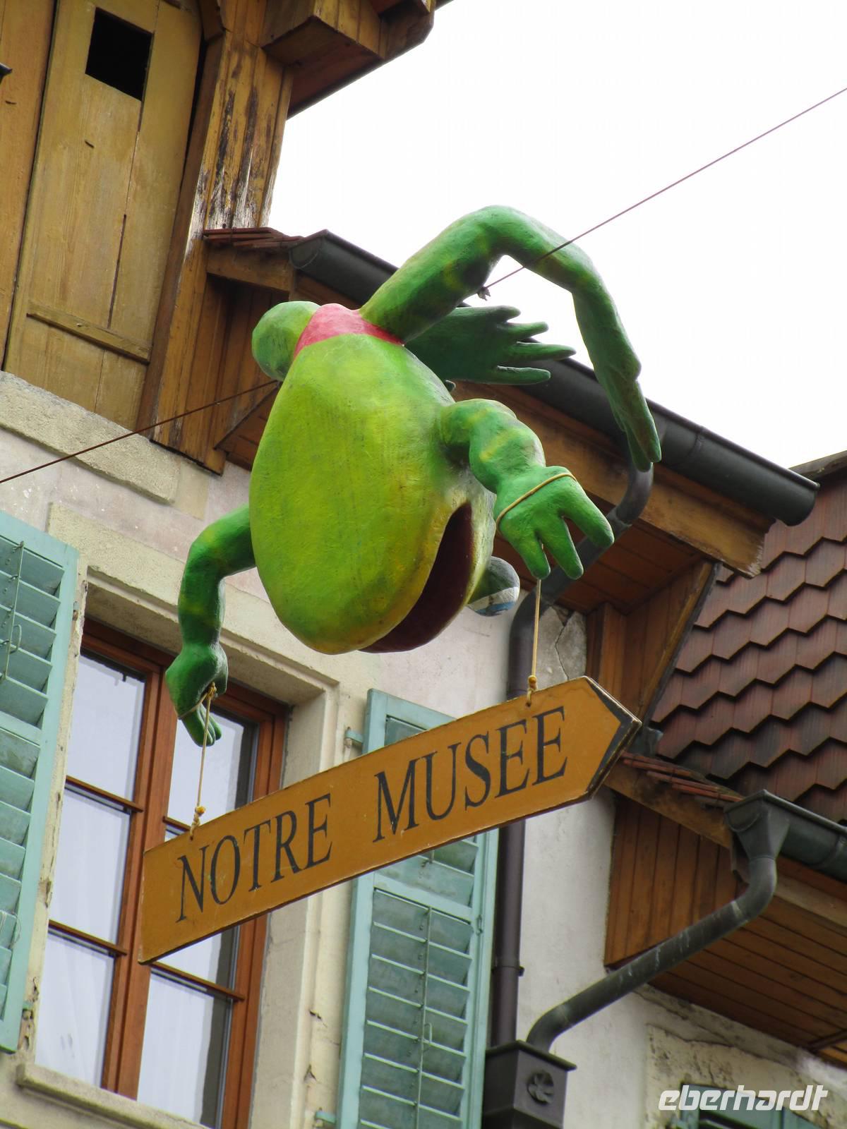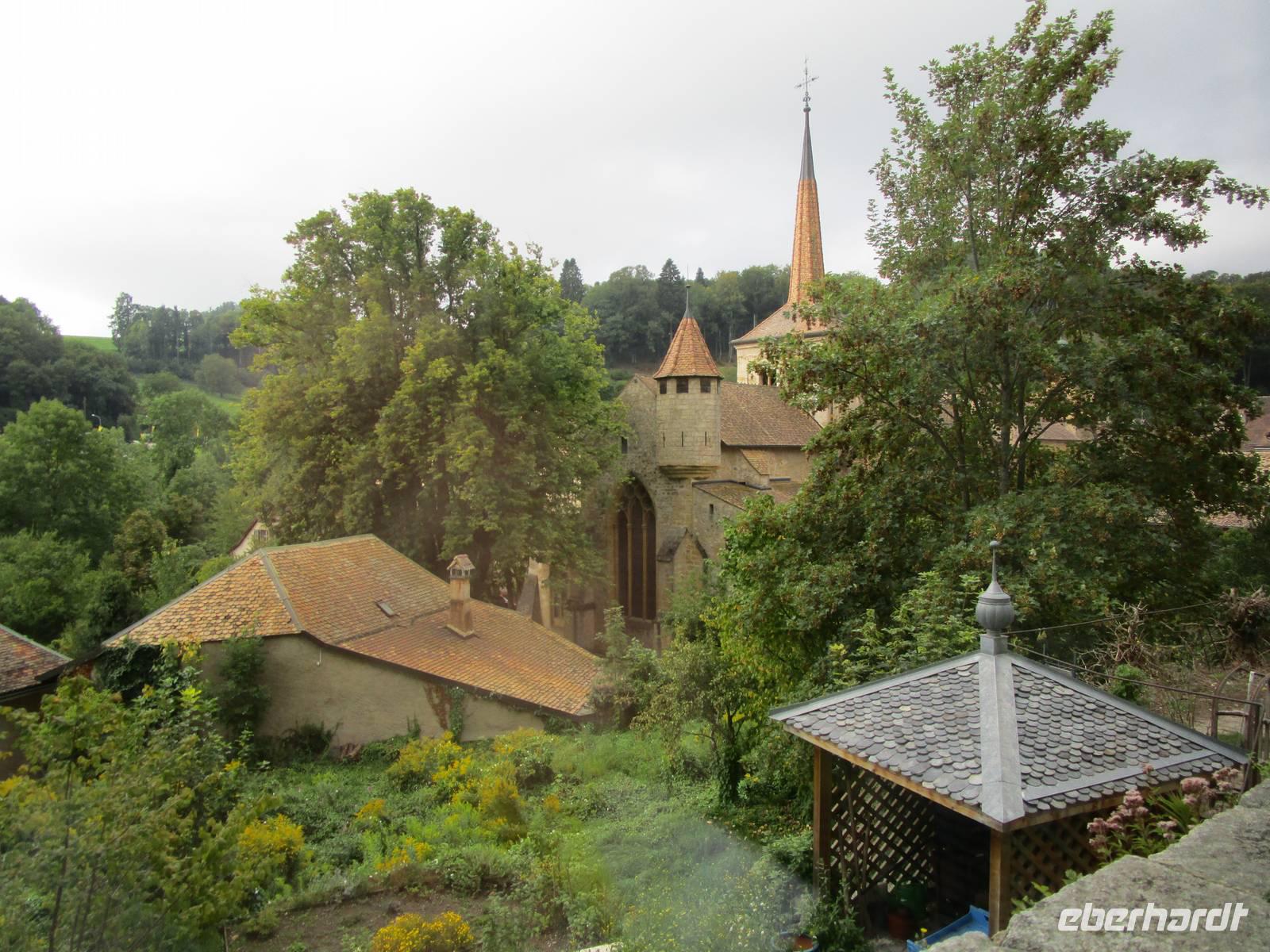 Einige Kilometer weiter liegt der kleine Ort Estavayer-le-Lac. Max Wehrde führt uns durch den kleinen Ort. Viele Bauten des Mittelalters blieben erhalten, darunter auch eines der ursprünglich 3 Schlösser. Hier sind Verwaltungen untergebracht. Der Bau aus savoyardischer Zeit auf einem Steilhang mit seinen mächtigen Türmen dominiert den Ort.