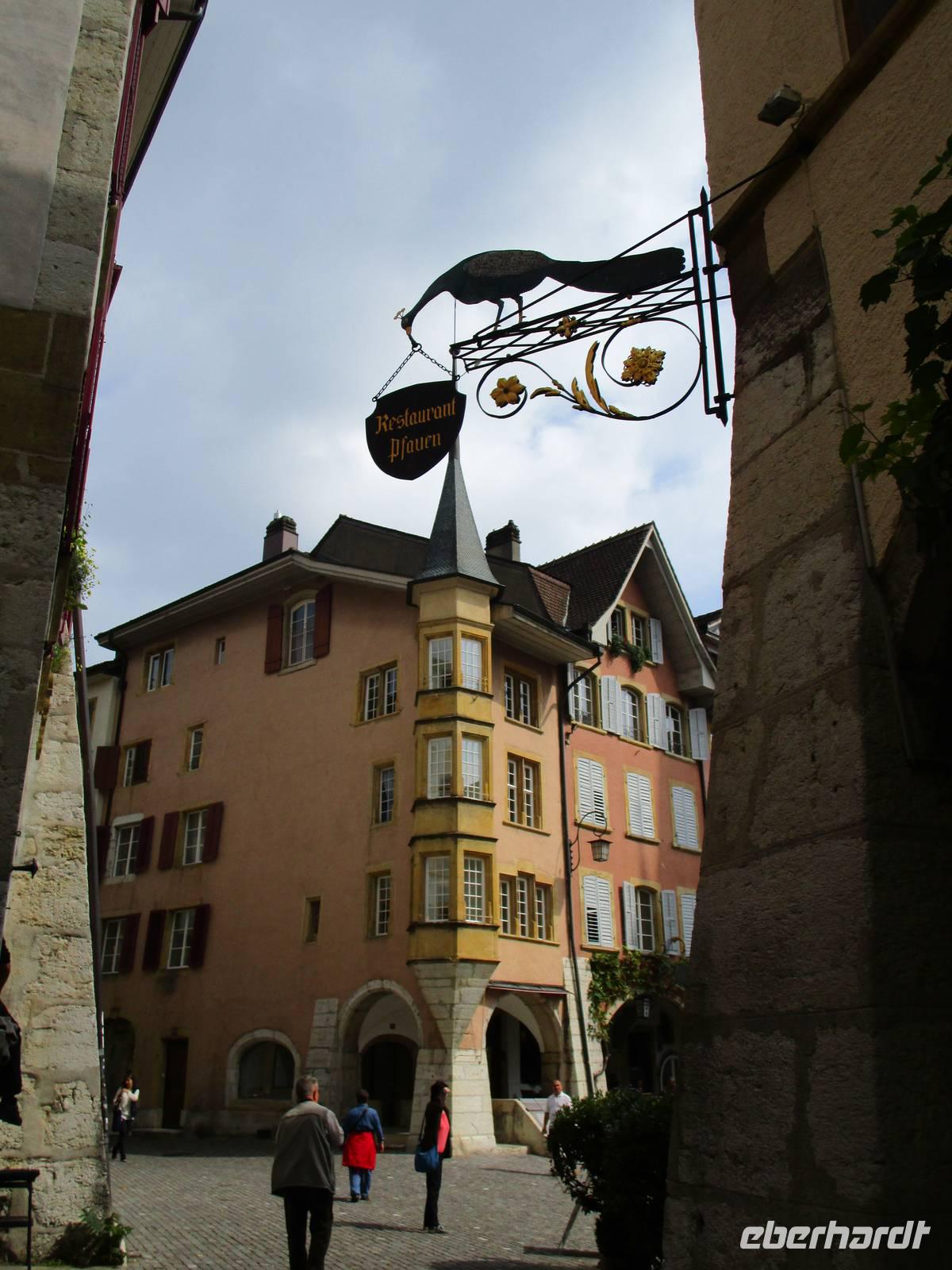 Hinab ins Seengebiet in die Stadt Biel/Bienne. Die bekannte Uhrenstadt (Rolex !, Swatch Group) liegt auf der französisch-deutschen Sprachgrenze man unterhält sich mitunter im Wechsel beider Sprachen und die amtlichen Dokumente sind zweisprachig. Wir haben noch etwas Zeit für einen Spaziergang durch Altstadt Biel. Sie ist eine der besterhaltenen Europas. Prächtige Bürgerhäuser mit Erkern, kleine Geschäfte und Restaurants fügen sich sanft in die historischen Gassen ein. Der spätgotischen Stadtkirche, Zunfthäuser und verzierte Brunnen gehören zum Stadtbild.