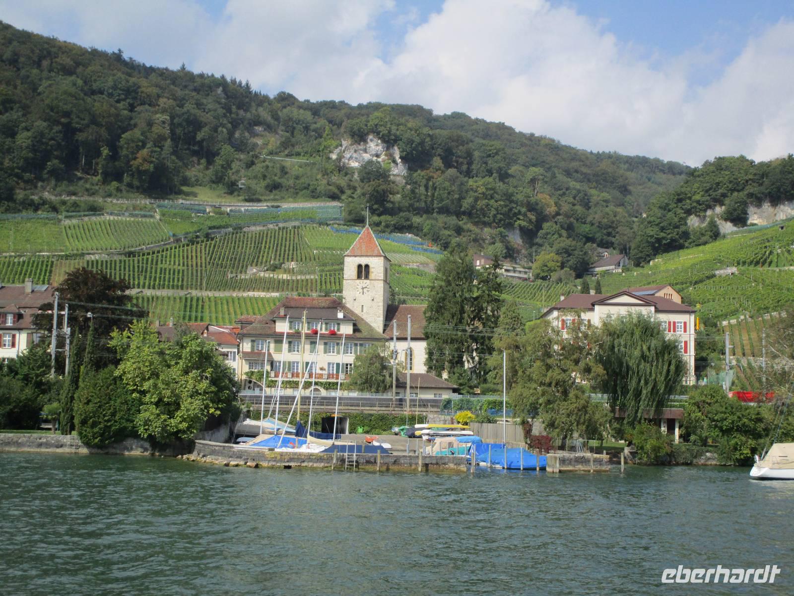 Mit einem Schiff fahren wir über die gesamte Länge des Bielersees. Das Schiff hält am Weinort Ligerz und an der Petersinsel. Hier verbachte Jean-Jacques Rousseau 1765, wie er sagte, die glücklichste Zeit seines Lebens, bis ihn der Berner Geheime Rat auswies. Wir landen in La Neuville, einem reizenden Dörfchen und besuchen eine Weiprobierstube. Die Schweiz ist, was nur wenig wissen, ein bedeutender Weinproduzent. Das wissen aber alle Schweizer und trinken ihren Wein lieber selbst, es kommen kaum Flaschen in ausländische Regale. Nach 5 Weinproben verstehen wir die Schweizer. Der Hobby-Weinbauer erklärt mit viel Witz viel Wissenswertes um den Wein. Und er hat gar nicht, wie mitunter bei Verkostungen, das übliche Verkäufergesicht, sein Wein ist schon fast wieder ausverkauft.