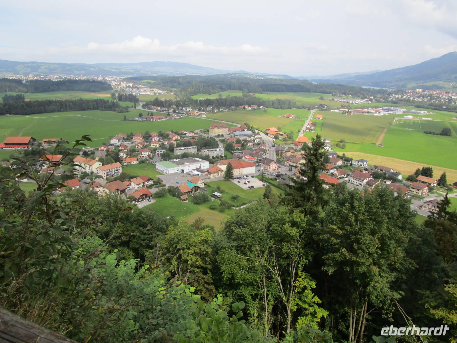 Berge, darunter der 2002 m hohe Moleson überragen das Greyenzer Land mit der Stammburg der Grafen von Greyerz oder Gruyères. Ihr Wappentier, der Kranich (französisch grue) findet sich überall an den Häusern der einzigen Straße des Ortes. Hübsche Häuser aus dem 15.-17.Jhdt. säumen die Markstraße. Kleine Geschäfte werden von den vielen Touristen aufgesucht, denn das Grafenschloss Gruyères ist nach dem Schloss Chillon am Genfer See das meistbesuchteste in der Schweiz. Bei einem kleinen Spaziergang um diese alte Burg blickt man weit in die Ebene der Saane. In Gruyères lebte auch bis zu seinen Tod in diesem Jahr HR Giger, der Erfinder der „Aliens", von dessen biomechanischen Stil Werke vor seinem Museum und die Inneneinrichtung eines Cafés zeugen.