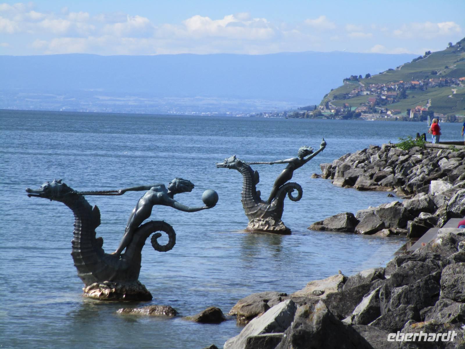 Nach einer Abfahrt über 1000 Höhenmeter erreichen wir den Lac Léman und die Stadt Lausanne. Sie zieht sich am Seeufer entlang und erreicht im Stadtgebiet immerhin mehr als 500 m Höhenunterschied. Zuerst sehen wir bei einer Busrundfahrt das herrliche Seeufer, die Reste der römischen Siedlung und den kleinen, aber gediegenen Sitz des Internationalen Olympischen Komitees. Als hier das IOC 1915- vor fast 100 Jahren - begründet wurde, lagen die Länder nicht im friedlichen sportlichen Wettstreit miteinander sondern in einem blutigen Krieg. Auch viele andere Föderationen und Organisationen des Internationalen Sport haben ihren Sitz in Lausanne sowie das Olympische Museum, an dem wir zum Schluss der Besichtigung halten. Mit dem Bus geht es an Banken, Residenzen und prächtigen Hotels vorbei zu dem Hügel, auf dem die heutige Stadt entstand. Er wird beherrscht von der mächtigen Kathedrale (unter uns: seit der Reformation Calvins gibt es keinen katholischen Bischof mehr). Es ist der bedeutendste frühgotische Bau der Schweiz. Auch der ehemalige Bischofssitz (Schloss Sainte-Maire) und das erste Gebäude der Akademie, Vorläufer der Universität, stehen in unmittelbarer Nähe. Die Handwerker und Händler besiedelten die ehemals sumpfige Mulde unterhalb. Hier errichteten sie das Rathaus, hier stellten sie, wie in vielen Schweizer Städten anzutreffen, der Gerechtigkeitsbrunnen auf. Dieses Viertel La Palud wird über eine gedeckte Treppe (174 Stufen) erreicht.