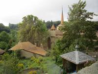 Den Vormittag verbringen wir noch einmal in der Juralandschaft. Wir besuchen den Ort Romainmortier, nur einige Dutzend Häuser um das älteste Kloster der Schweiz angeordnet.