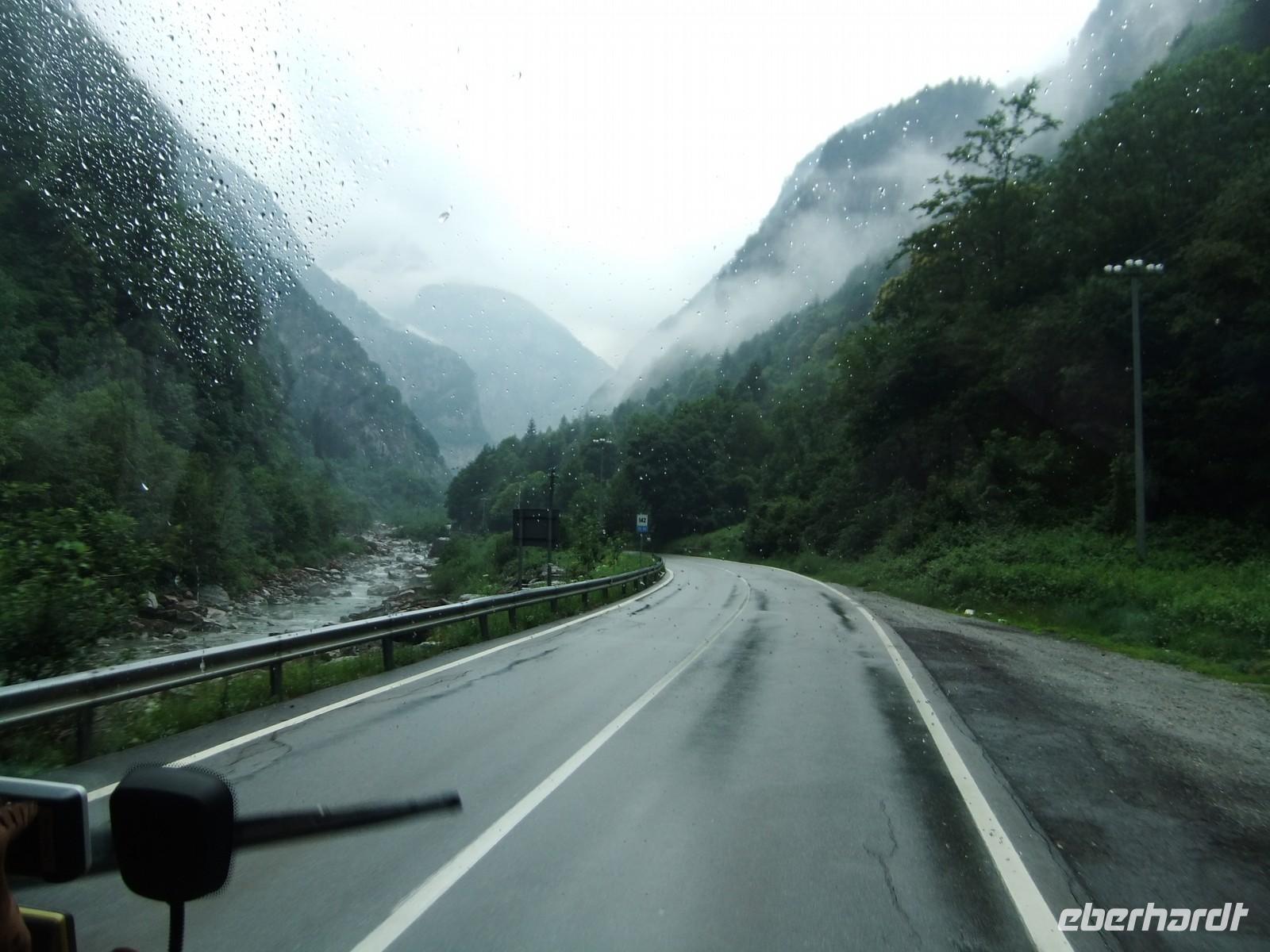 Wir überqueren das Gebirge über den 2005 m hohen Pass, der ganzjährig geöffnet ist. Die Sicht ist nicht sehr gut, naja, dann das nächste Mal - so ist es eben in den Bergen.