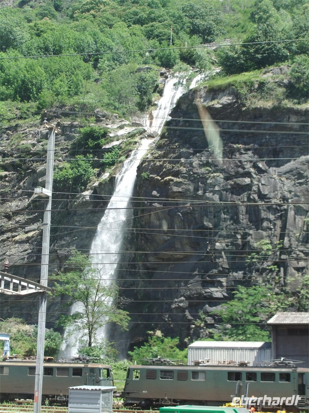 Wieder geht es mit dem Zug weiter. Die Centovallibahn verbindet Locarno mit dem italienischen Domodossola, dem Zugang zum Wallis über den Simplonpass. Centovalli - das sind 100 Täler, eigentlich sind es 150. Immerhin 1100 m muss der etwas altertümlich anmutende Zug auf der Schmalspurtrasse hochsteigen. Er schafft es ohne Zahnstange durch die geschickte Verkehrsführung und mit teilweise