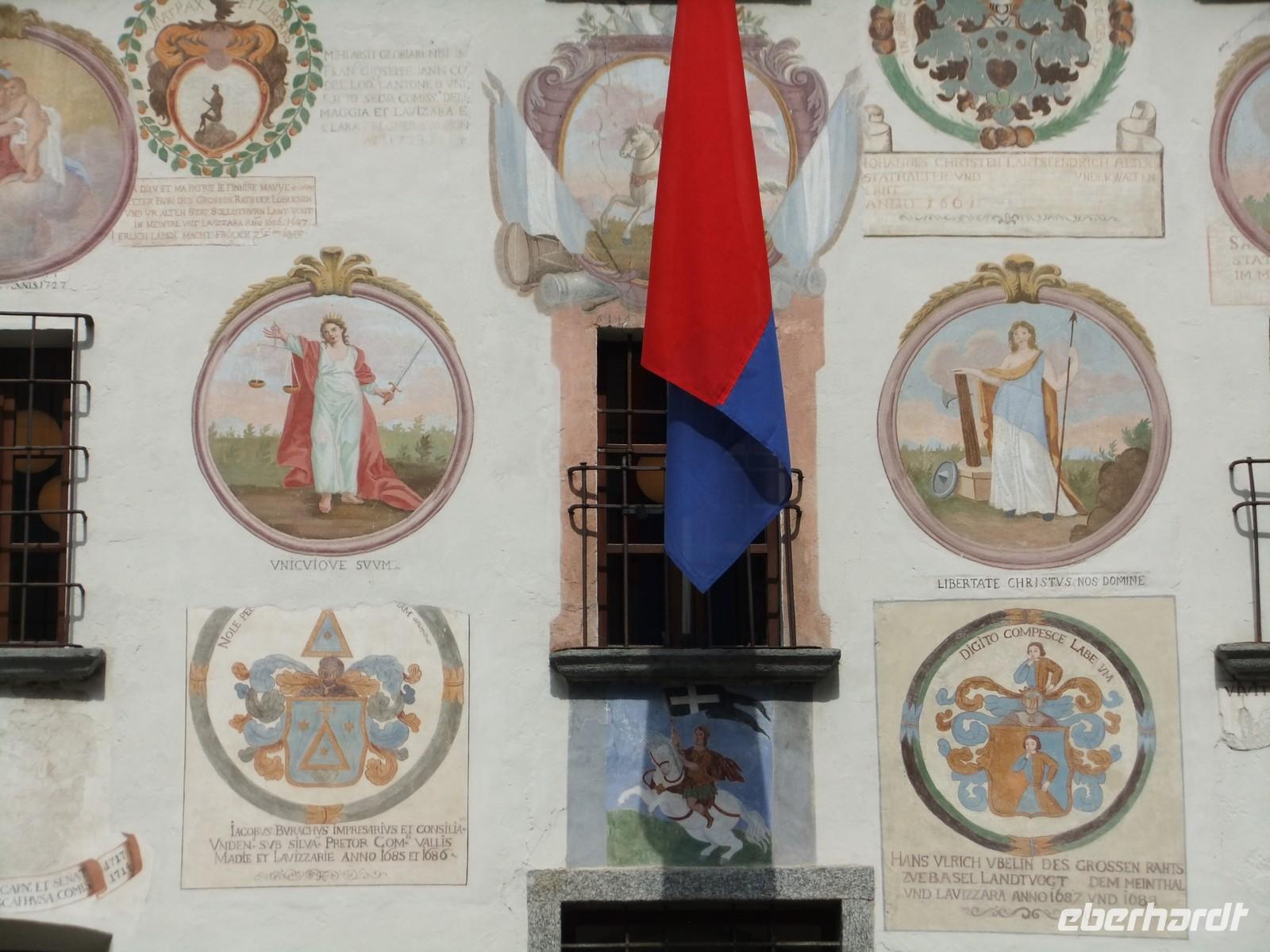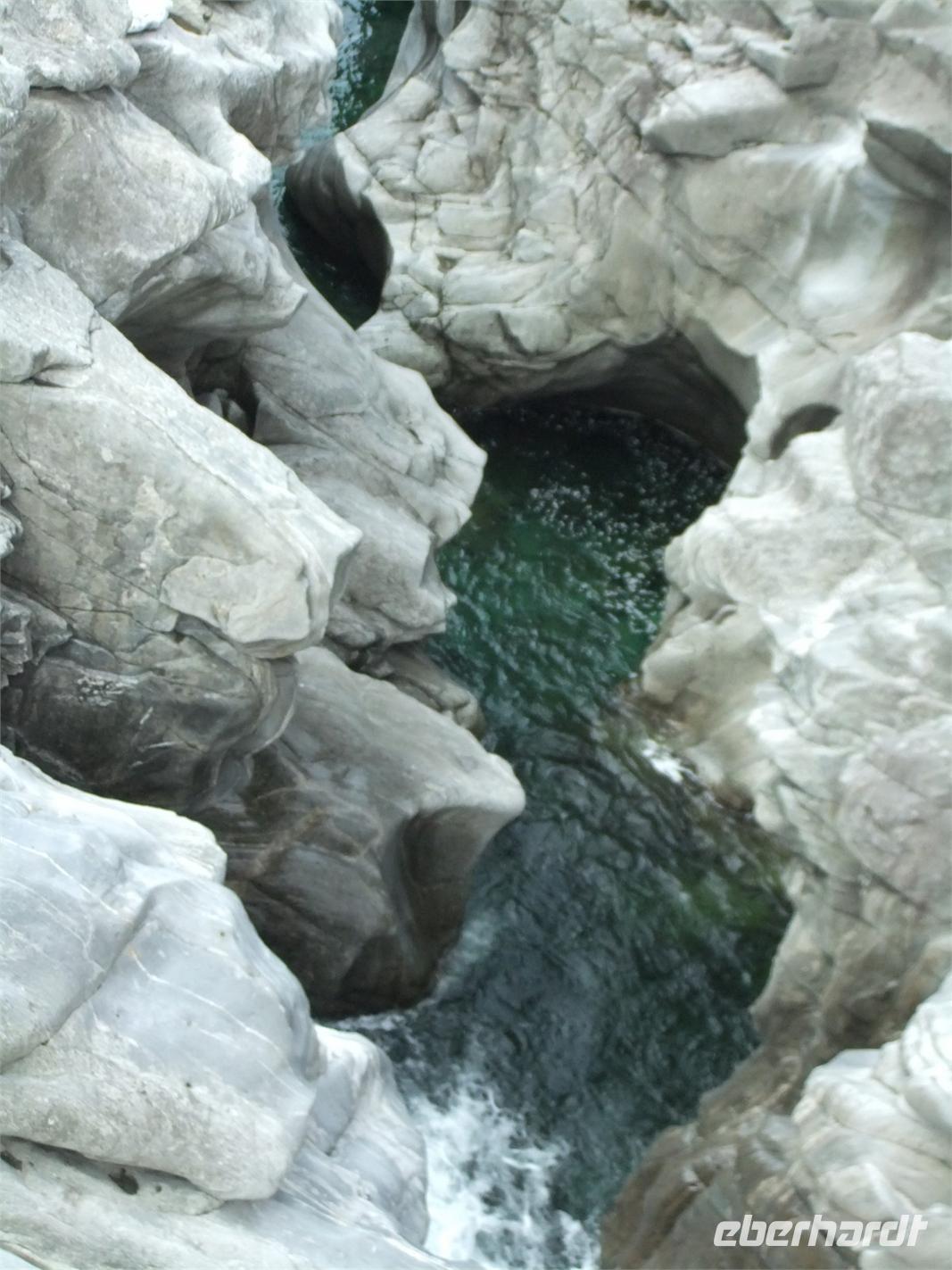 Hier scheint die Zeit stehen geblieben zu sein. Von der Ponte Brolla blicken wir in die Tiefe. Die Maggia hat sich tief in den Fels eingeschliffen, ihre Strudel haben Höhlungen herausgefräst. Mit Cevio lernen wir das erste Dorf kennen. Am Haus der Vögte haben Generationen ihre Wappen hinterlassen. Kennzeichnend sind aber die Granithäuser, Rusticos genannt, meist in Trockenbauweise errichtet, mit Granitplatten gedeckt, die 180 bis 420 kg schwer sind. So ein Steinhaus reißt auch eine wild gewordene Maggia nicht weg. Von anderen Gefahren im Tal künden die Balois, riesige Felsbrocken, Zeugen gewaltiger Bergstürze. Einige typische Restaurants, Grottos genannt, stehen an der Straße. Hier bekommt man das zu essen, was Mama an diesem Tag gerade kocht.
