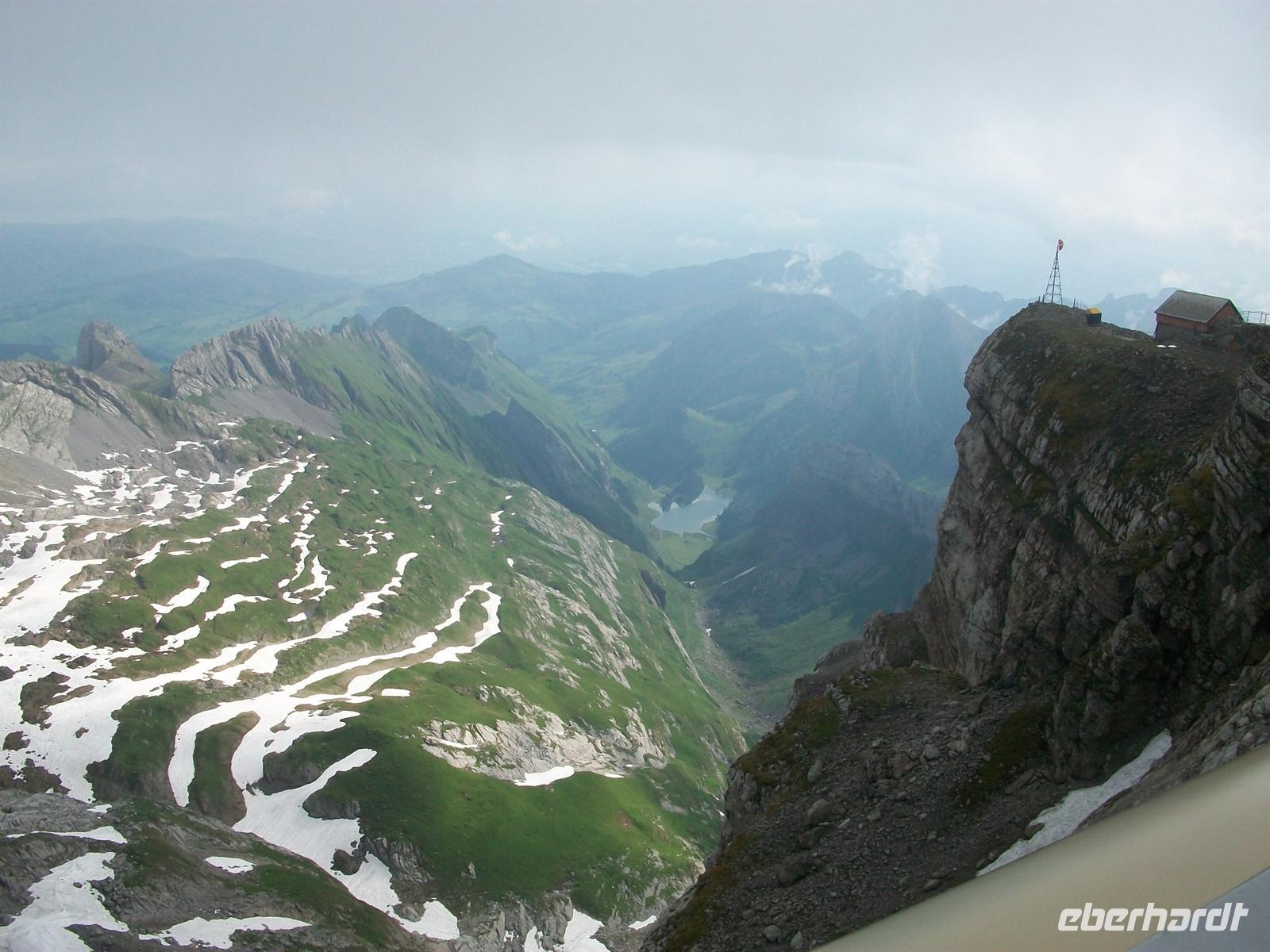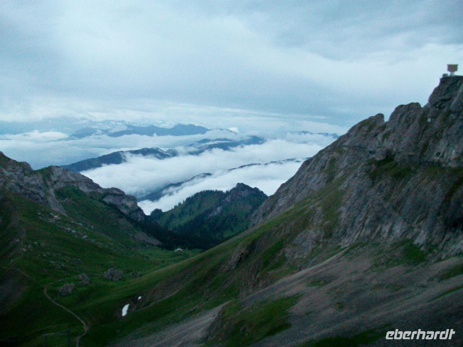 Heute gibt es das Frühstück an einem besonders exklusiven Ort: dem Bergrestaurant auf der Säntisspitze. Dazu sind wir schon halb acht mit der Seilbahn unterwegs. Bei der knapp