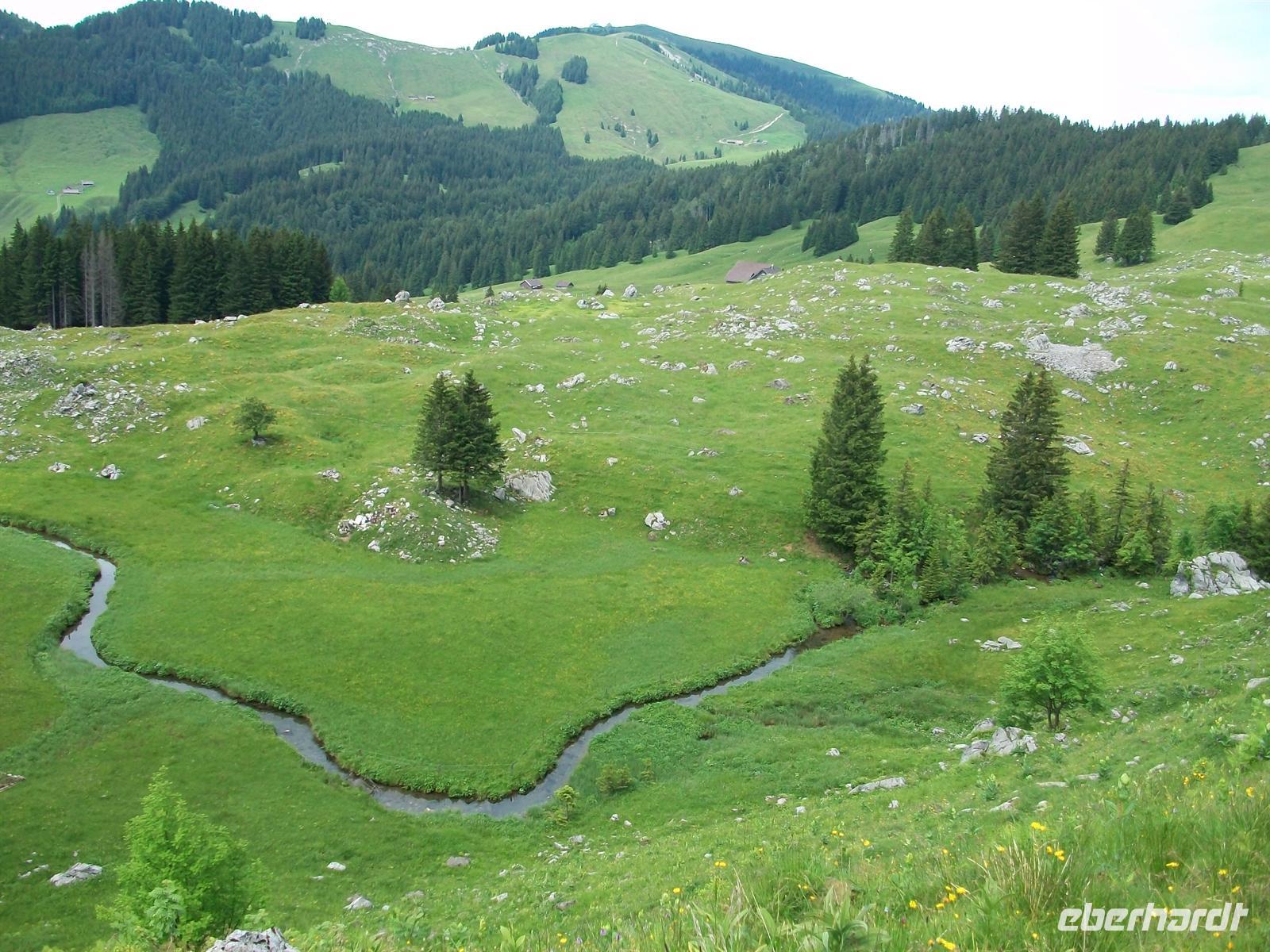 Nach dem Besuch von Appenzell geht es zurück zur Schwägalp einem weiteren Höhepunkt entgegen. Hier erwartet uns ein Wanderreiseleiter der uns in den nächsten zwei Stunden die Schönheiten dieser ganz besonderen Ecke zeigen wird. Noch nie habe ich einen Menschen kennengelernt der so mit seiner Heimat verbunden war wie dieser ältere Herr mit dem wir wirkliche Schönheiten dieser Alp kennenlernen durften, durch saftiggrüne Wiesen schlenderten, hinunter in ein romantisches Flusstal sehen konnten und die kleinen Waldflecken durchstreiften. Ein Zauber dem sich niemand