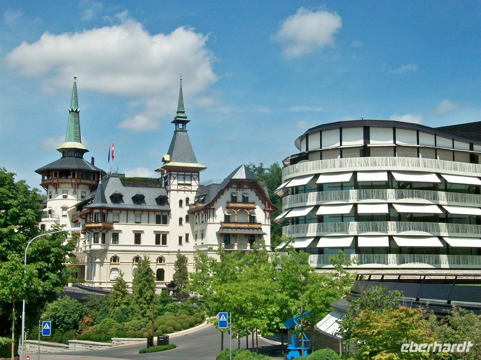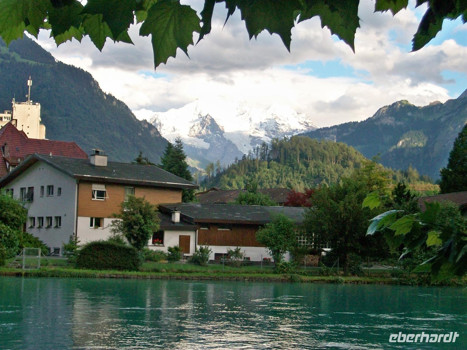 Gegen 15.00 Uhr und nach angemessener Freizeit in Luzern setzen wir unseren Weg fort. Unser Ziel heißt Interlaken im Berner Oberland gelegen. Vorbei am Alpnacher See geht es aufwärts. Bald taucht auf unserer rechten Seite die Wasserfläche vom Sarner See auf. Dann geht es an Giswil vorbei hinauf zu einem weiteren See. Es ist der Lungerer See und auf dem Weg hinauf zum Brünigpass bietet sich ein schöner Panoramablick den wir selbstverständlich zu einem Fotostopp nutzen. Nach dem Pass, der bei etwa 1 000 Metern liegt, haben wir die Zentralschweiz verlassen und die Straße senkt sich hinunter zum Brienzer See. Sehr malerisch ist der Verlauf der Straße am nördlichen Ufer des Sees dem wir bis Interlaken folgen. Bald kommt auch der Ort selbst in Sicht der für die nächsten Tage unser Domizil sein wird. Etwas schwierig ist der Weg zum Hotel, denn man steckt hier in den letzten Vorbereitungen für den großen Umzug morgen, der das Eidgenössische Jodlerfest beschließen wird. Auch wir werden daran teilhaben können. Nach einem kleinen Umweg kommen wir gegen 16.40 Uhr am Hotel an, wo schon ein munteres Treiben im Gange ist. Nach