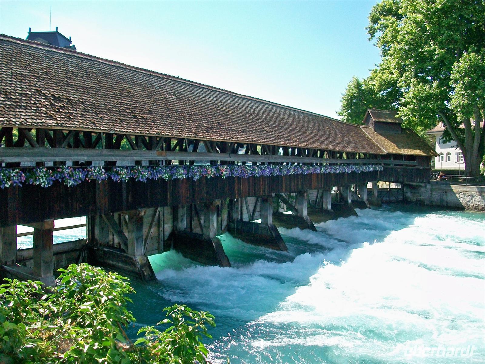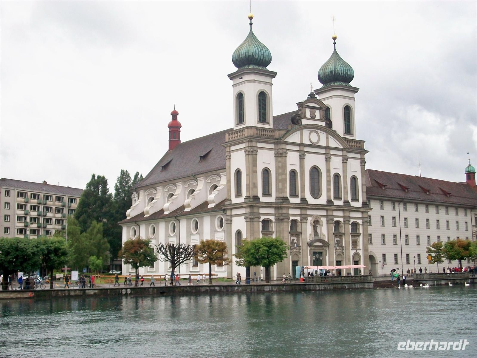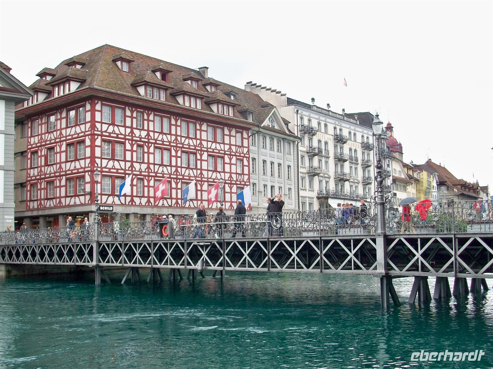 Halb zwölf treffen wir unsere Stadtführerin und dann sind wir schon unterwegs zu den Höhepunkten dieser Stadt. Wir überqueren die Kapellbrücke mit ihrem hübschen Blumenschmuck, schauen in die überaus reichlich ausgestattete Jesuitenkirche hinein und durchstreifen im Anschluss die pittoreske Altstadt mit ihren gepflegten Bürgerhäusern und schönen Fußgängerzonen. Da dieser historische Kern vollständig erhalten blieb ist es auch immer eine Zeitreise; schon Goethes Augen ruhten seinerzeit auf diesem schönen Ensemble.
