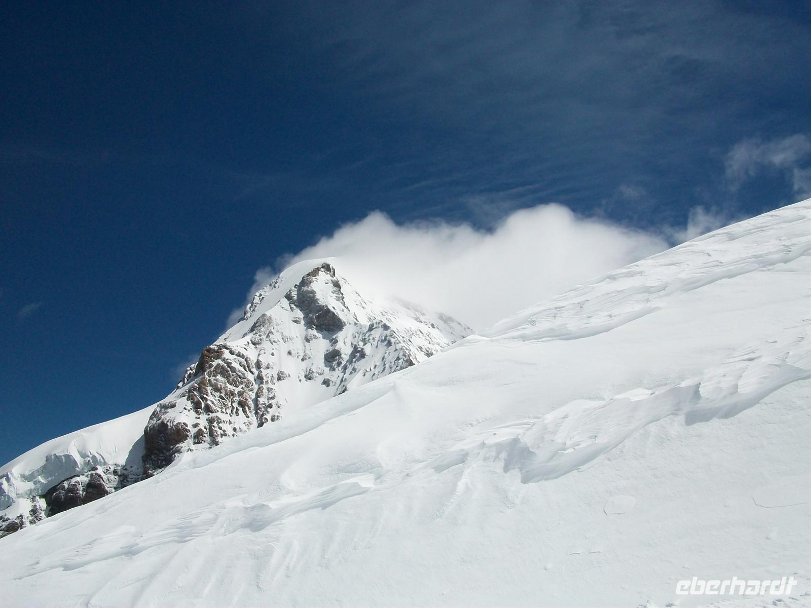 Ein kleiner Spaziergang in dieser einmaligen Bergwelt bringt viele schöne Fotomotive, von einem der Berghänge löst sich Eis welches donnernd zu Tal stürzt.