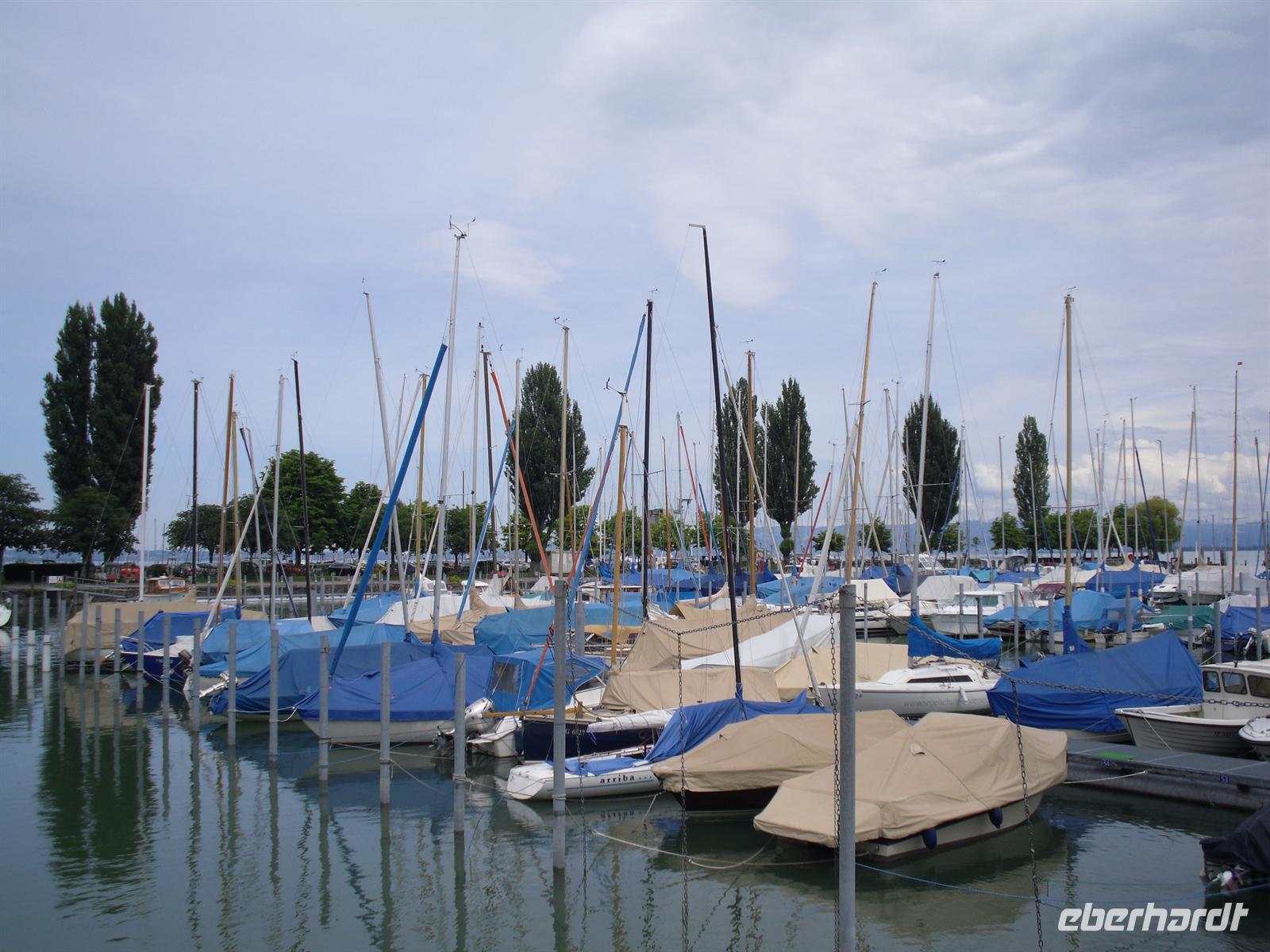 Am Vormittag geht es erst einmal in das nur etwa 35 Kilometer entfernte St. Gallen. St. Gallen liegt südwestlich vom Bodensee in einem schmalen Hochtal der Voralpen. Die Stadt ist sowohl der wirtschaftliche Mittelpunkt als auch das kulturelle Zentrum der Nordostschweiz. Im 7. Jahrhundert gründete hier der irische Wandermönch Gallus eine Einsiedelei. Aus dieser entstand dann Anfang des 8. Jahrhunderts ein Kloster und bald darauf unter dem Abt Otmar die Benediktinerabtei, die vom 9. bis zum 11. Jahrhundert eine Hochblüte erlebte und durch Schule und Bibliothek zu einem der kulturellen Höhepunkte nördlich der Alpen wurde. Aus einer um das Kloster entstandenen Handwerkersiedlung entwickelte sich letztendlich die Stadt. Wir erleben eine Stadtführung und erfahren hier natürlich viel über die Stadtgeschichte. Besonders beeindruckend ist für die meisten von uns der Besuch der berühmten Stiftsbibliothek, die eine bemerkenswerte Innenarchitektur und überaus reichhaltige Bücherbestände aufweist. Am frühen Nachmittag erreichen wir dann die Gegend nördlich von St. Gallen - nämlich den Bodensee. Unseren ersten Stopp legten wir in der Nähe von Altenrhein ein.