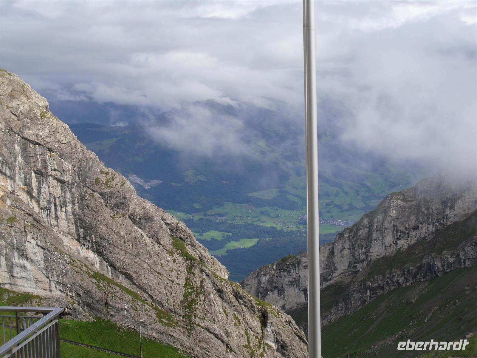 Gleich am Morgen fahren wir hinauf auf den 2.502 Meter hohen Säntis, den höchsten Gipfel des Alpstein-Massivs. Mit der 1935 in Betrieb genommenen Säntis-Schwebebahn geht es hoch hinaus.