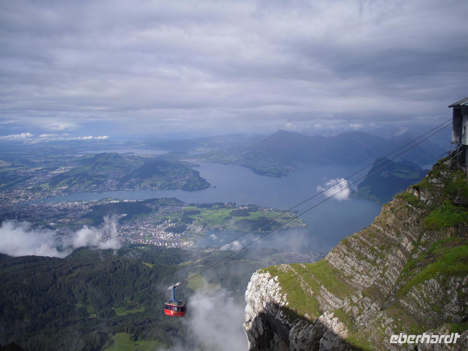 Nach einer erholsamen Nacht auf dem Pilatus bringt uns am nächsten Morgen die Luftseilbahn vom Pilatus hinunter zum Fräkmüntegg und anschließend geht es dann mit einer Umlaufbahn weiter bis Kriens.