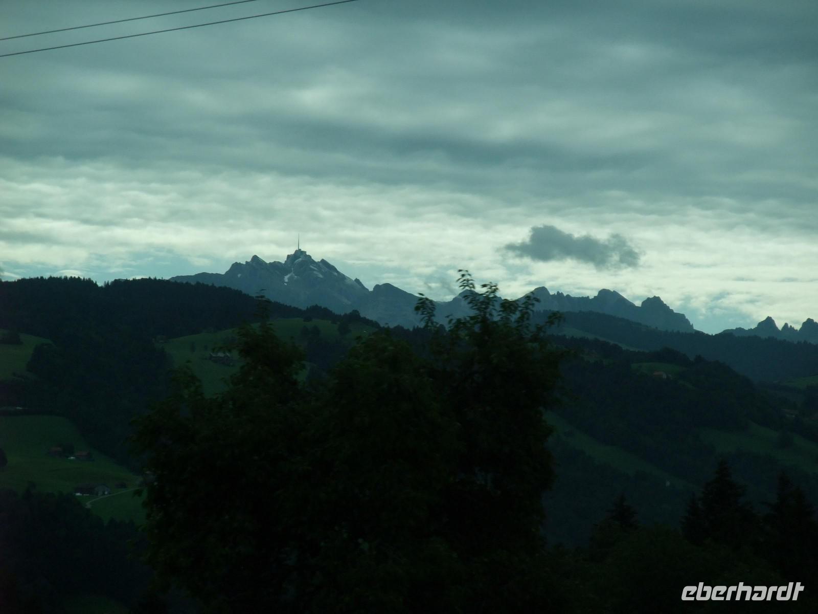Wir fahren wenige Kilometer durch das österreichische Bundesland Vorarlberg und erreichen schließlich Höchst, den österreichischen Grenzort zur Schweiz. In St. Margarethen betreten wir dann am Nachmittag erstmalig Schweizer Boden. Von hier ist es jetzt nur noch ein Katzensprung zur Schwägalp. Wir wählen die Route über St. Gallen und Herisau, also fahren wir das Appenzeller Land aus nördlicher Richtung an. Am frühen Abend erreichen wir schließlich unser Hotel für die nächsten drei Nächte - das Berghotel Schwägalp. Das Berghotel Schwägalp liegt auf einer Höhe von knapp 1.400 Metern und liegt abseits von jeglichem Großstadtlärm. Die einzigen Nachbarn hier sind glückliche Schweizer Kühe!