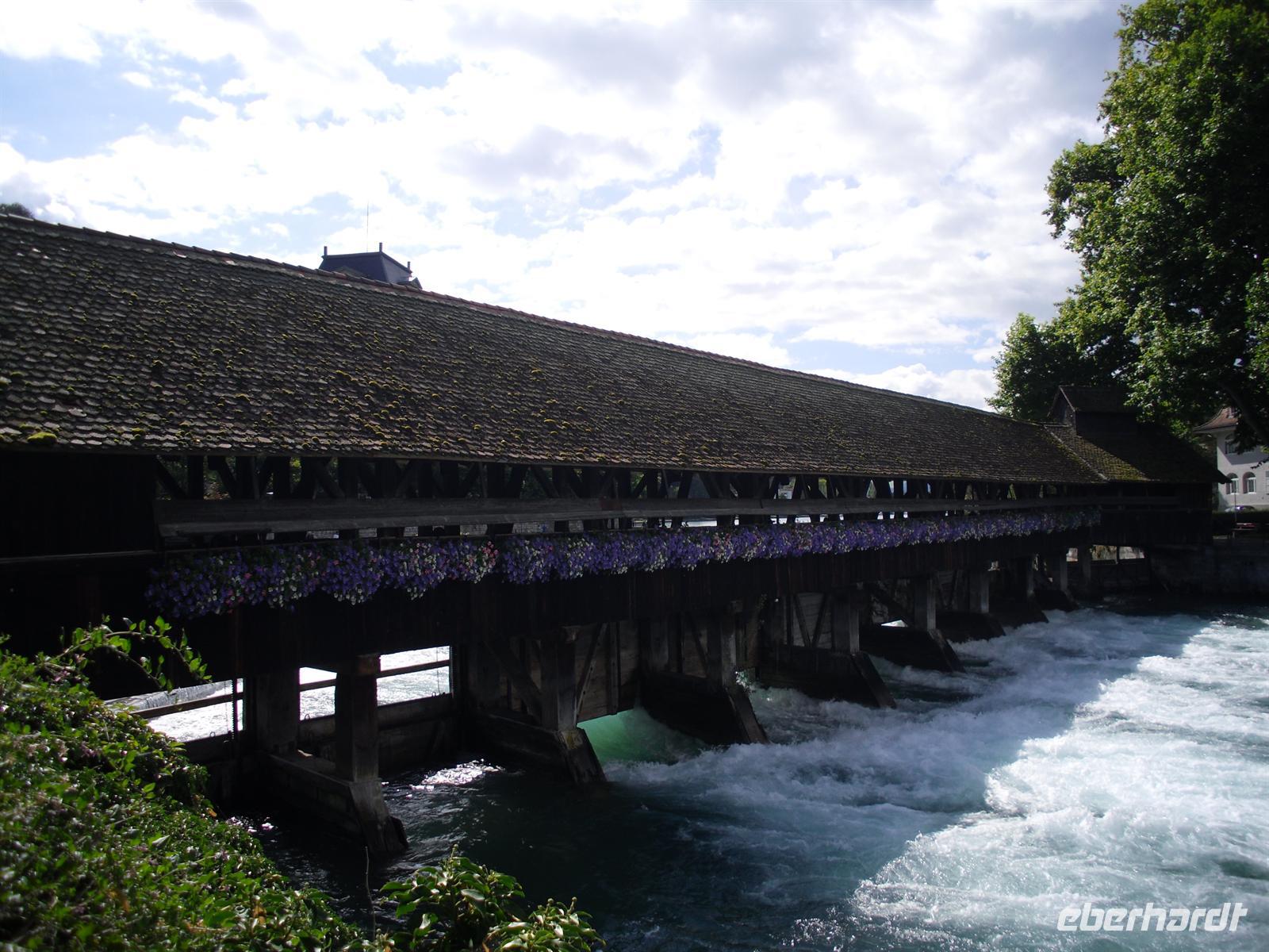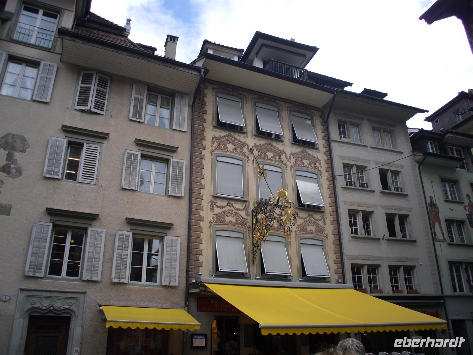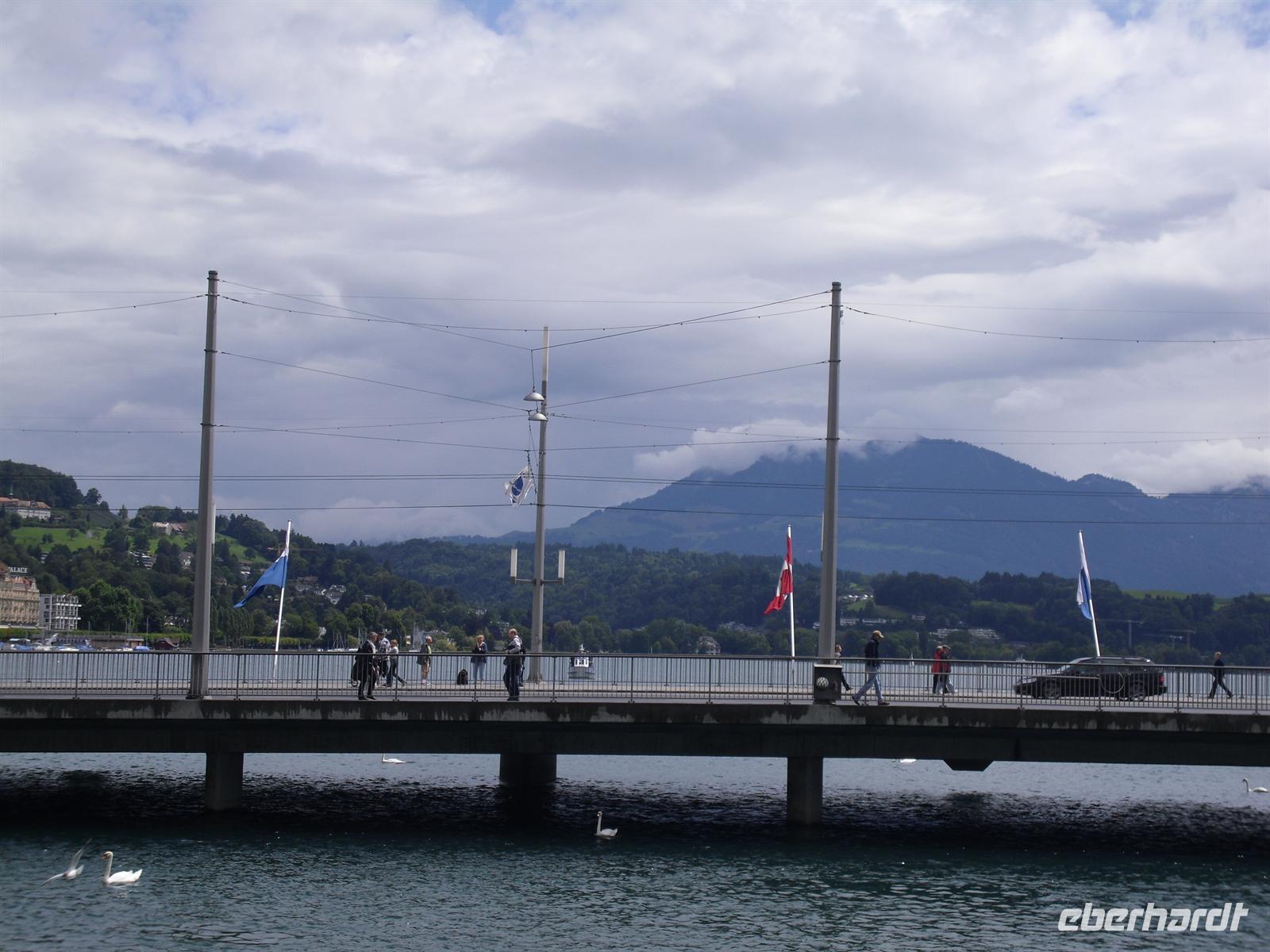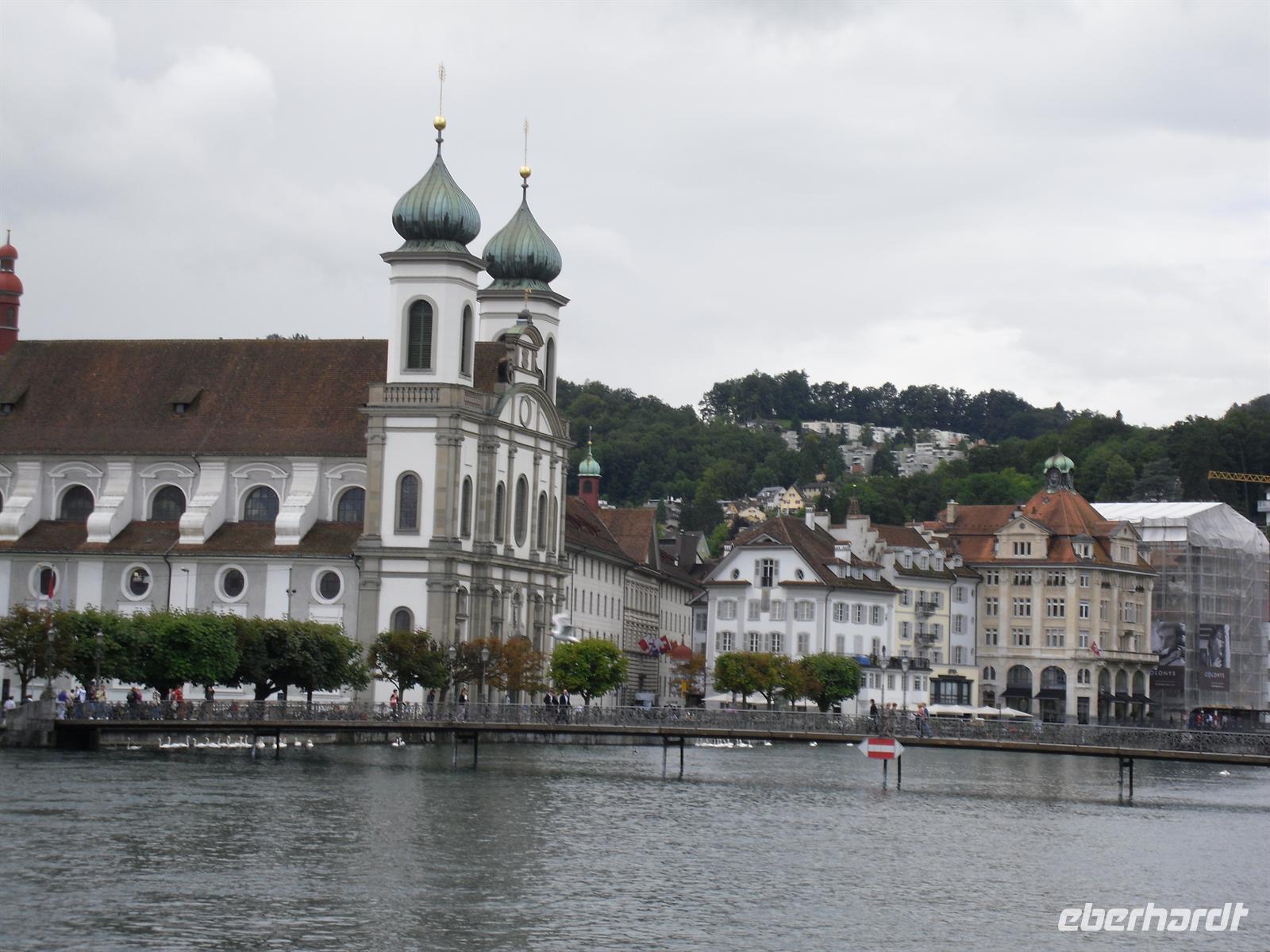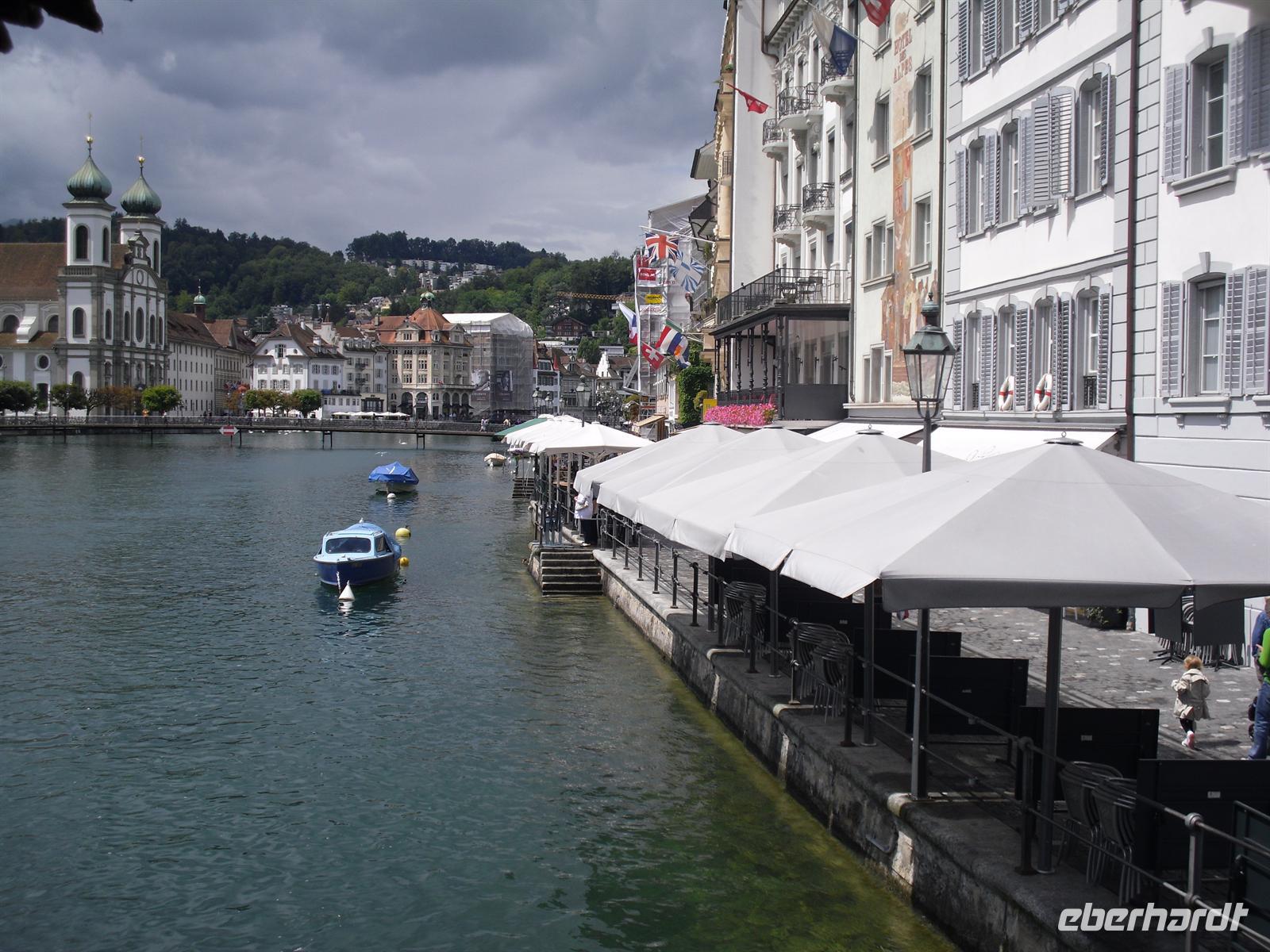Dort erwartet uns unser Bus und dieser bringt uns innerhalb von wenigen Minuten ins Stadtzentrum von Luzern. Luzern und die Region Vierwaldstättersee gelten als die "Essenz der Schweiz". Denn nirgendwo findet man so viel Schweiz auf kleinstem Raum - eine Stadt mit viel Charme und einem mittelalterlichen Kern, den charakteristischen Vierwaldstättersee mit Europas größter Binnenschifffahrt und ein wunderschönes Alpenpanorama mit unverwechselbaren Bergen. Während einer Stadtführung erfahren wir einiges über die jahrhundertealte Luzerner Geschichte und spazieren natürlich auch über die weltberühmte Kapellbrücke. Diese wurde in der ersten Hälfte des 14. Jahrhunderts als Teil der Stadtbefestigung errichtet und hat ihren Namen von der benachbarten St.-Peters-Kapelle. Auch ein Besuch der Jesuitenkirche darf eigentlich nicht fehlen, diese Kirche aus dem 17. Jahrhundert ist schließlich der erste große sakrale Barockbau der Schweiz. Leider ist heute für uns keine Innenbesichtigung möglich. Unser Spaziergang führt uns weiter durch die herrliche Altstadt. Historische, mit Fresken geschmückte Häuser umsäumen in der Altstadt rechts der Reuss einige malerische Plätze.