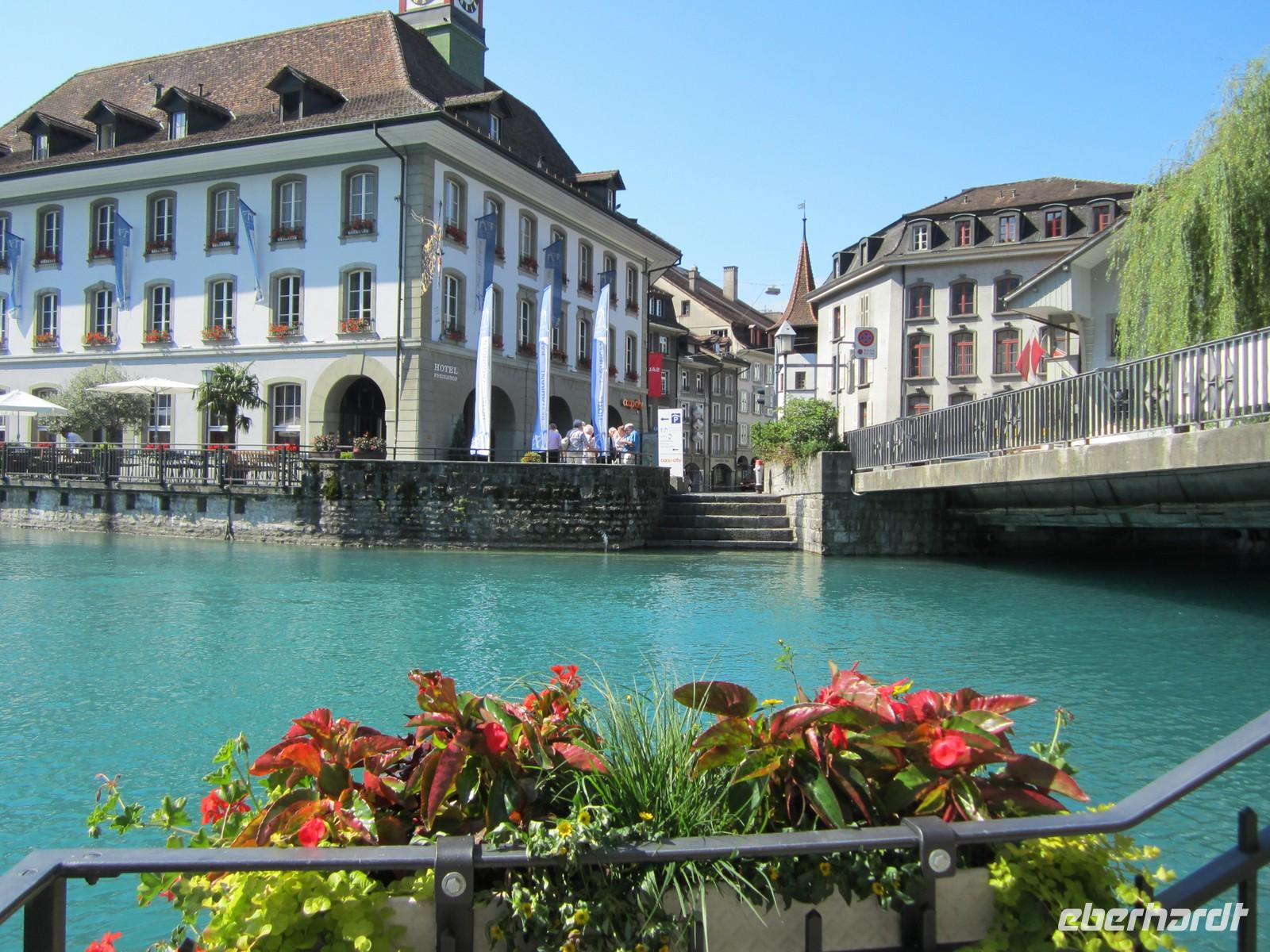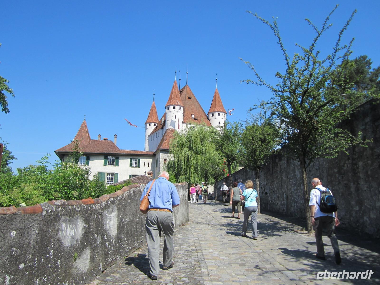 Unsere Fahrt führt uns nach dem Frühstück durch Interlaken und an der Südseite des Thuner Sees entlang. Wir kommen den Niesen mit seinen 2'362 m ü. M. ganz Nahe und erreichen gegen 10.00 Uhr Thun.
