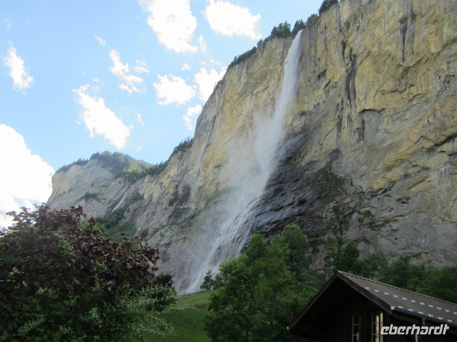In Lauterbrunnen steigen wir um und die Zeit recht, schnell zum Staubbachfall mit seinen 288 m zu laufen und dabei an Goethe zu denken, der den“ Gesang der Geister über den Wassern“, schrieb.