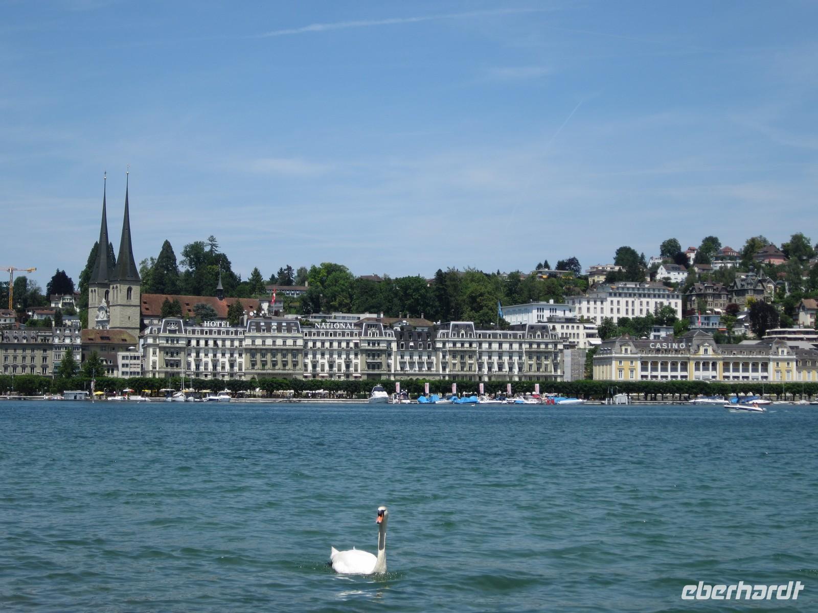 Mit dem Bus fahren wir nach Luzern zum Busparkplatz Inseli hinter dem Bahnhof. Die Zeit bis zur Stadtführung wird schon einmal am Vierwaldstättersee verbracht und das bei schönem Wetter. 11.30 Uhr treffen wir unsere Stadtführerin Susi Hofstetter und fahren mit dem Bus zum Löwendenkmal, danach geht es zu Fuß durch die Stadt. Luzern, das Tor zur Zentralschweiz ist eine der schönsten Städte des Landes. Susi führt uns über die Kapellbrücke, in die Jesuitenkirche und weiter durch die Altstadt. Susi gibt uns auch Einblicke in soziale Verhältnisse. Nach Verabschiedung unserer Stadtführerin bleibt auch in Luzern Zeit noch einen Kaffee an der Reuss zu trinken oder einen kurzen Abstecher auf die alte Stadtbefestigung zu unternehmen.