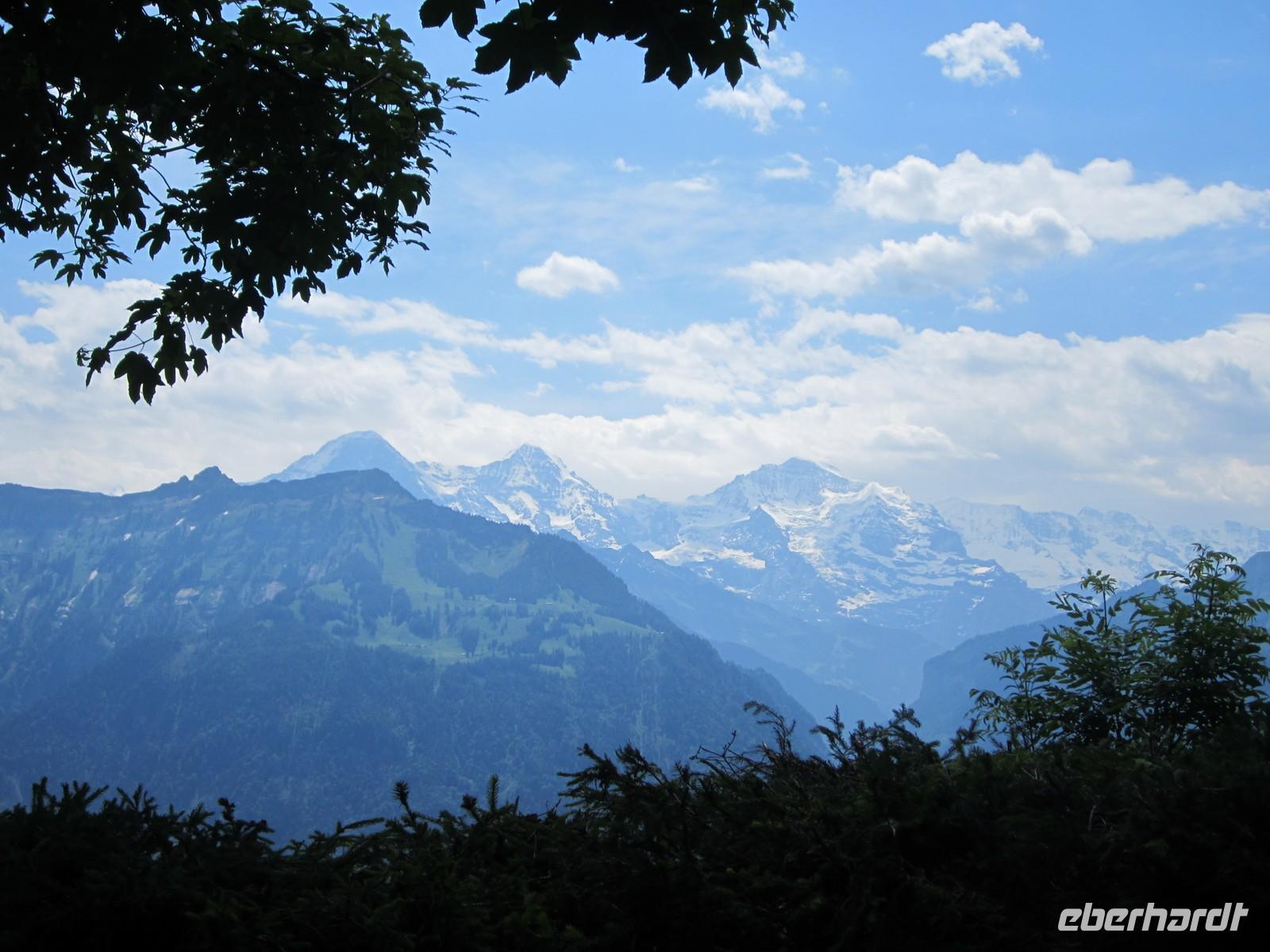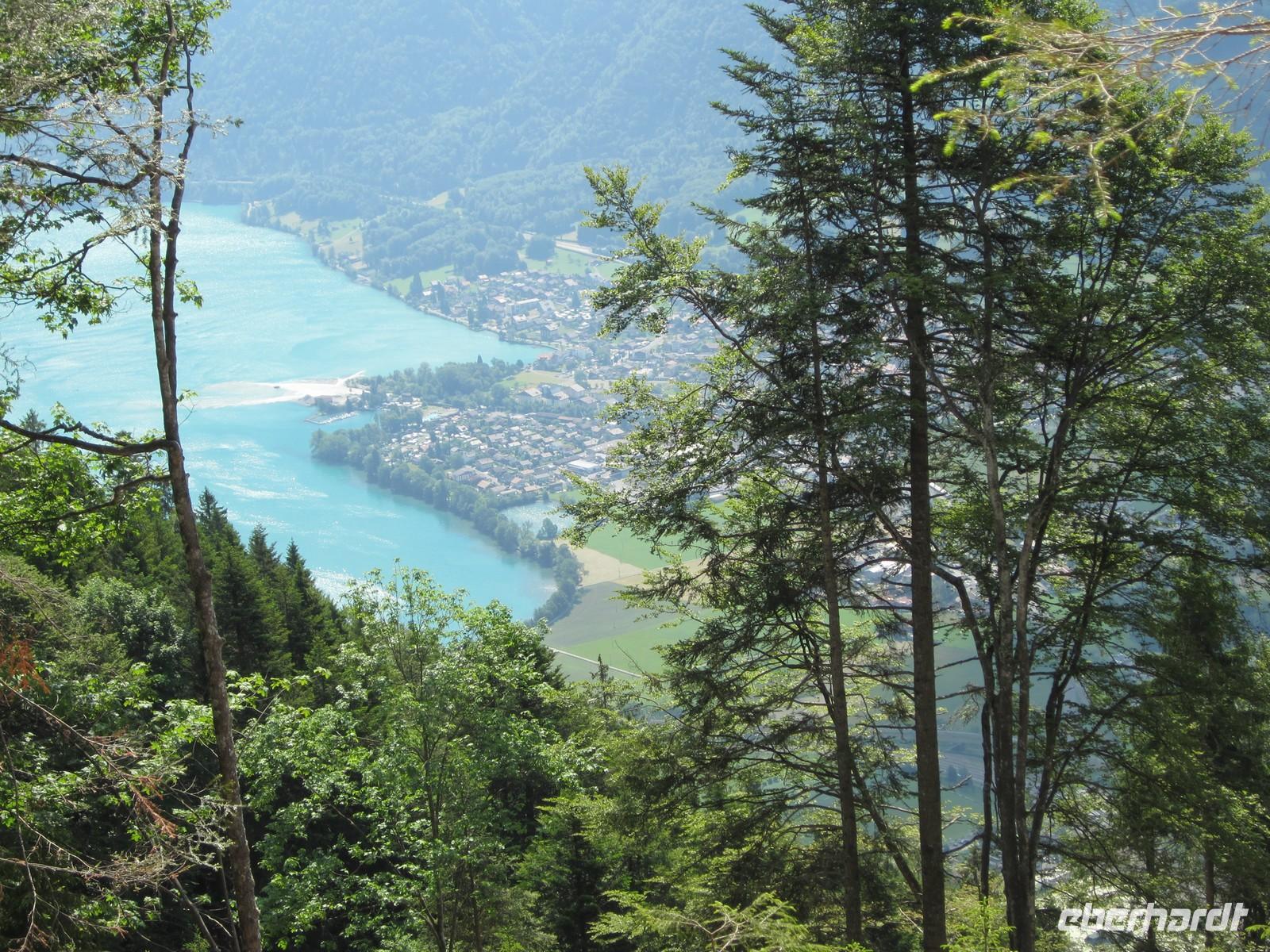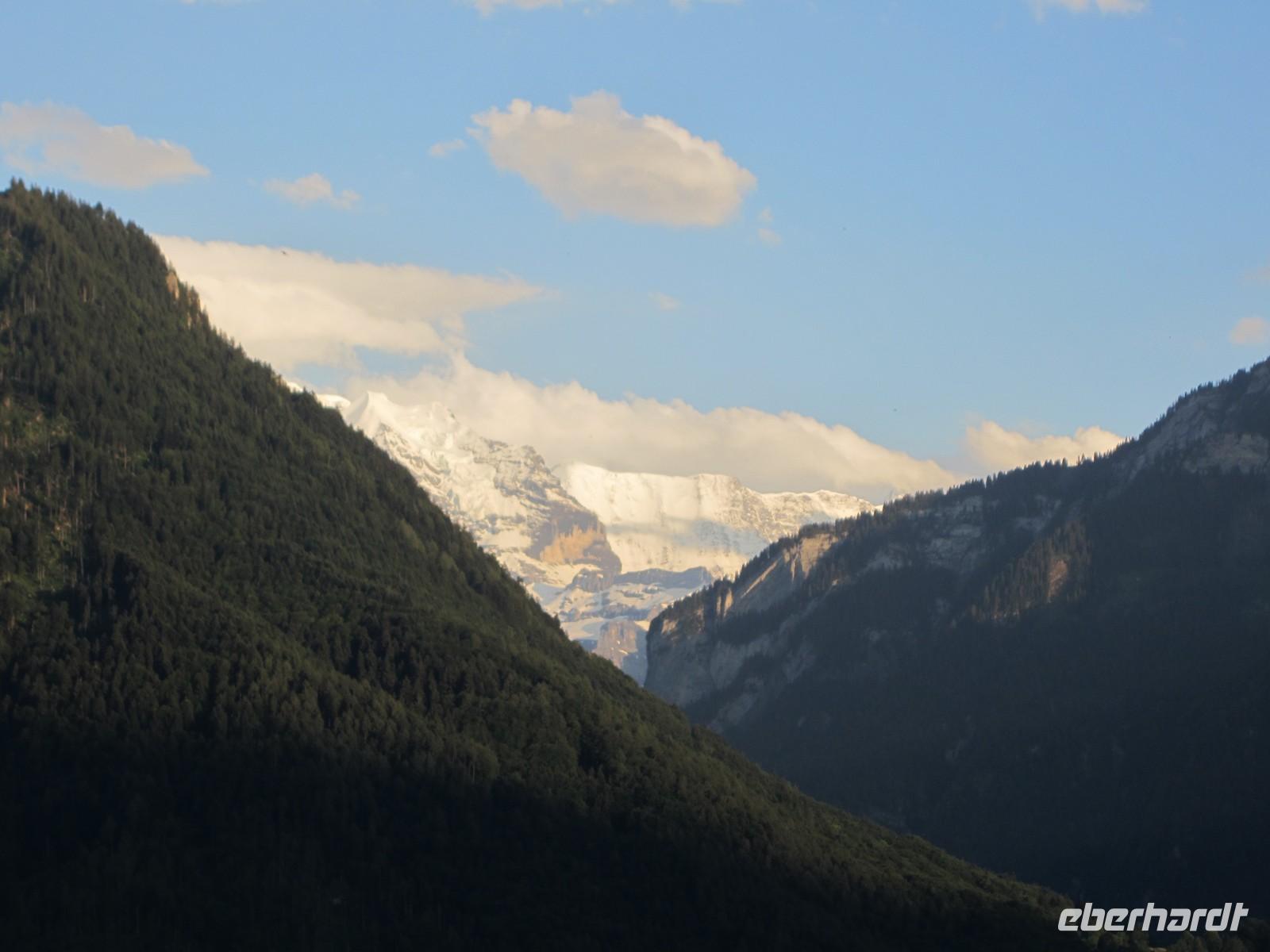 Gegen 14.00 Uhr beginnen wir unsere Rückfahrt. Für eine Schifffahrt auf dem Thuner See konnte sich keiner so richtig begeistern und deshalb entscheiden wir uns das Nordufer des Thuner Sees zu fahren. Das Ufer verfügt über ein ungewöhnlich mildes Klima und wird auch die Riviera des Berner Oberlandes genannt. Bei herrlichem Wetter sehen wir nicht nur den Niesen sondern die herrliche Kulisse der Berner Alpen. In Richtung Interlaken auch die Jungfrau, Mönch und Eiger. In Interlaken wieder angekommen bleibt noch ausreichend Zeit die Stadt zu erkunden. Dabei wird auch mein Geheimtipp getestet. Das Cafe im 18. Stock des