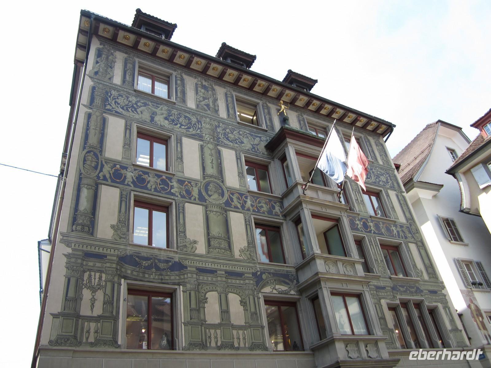 Die Metropole der Ostschweiz. Wir wollten die hübsche Altstadt und natürlich das weltberühmte Stift sehen. Wir fahren durch Urnäsch und Herisau nach St. Gallen und unsere Stadtführerin Frau Brülisauer empfängt uns 10.00 Uhr in der Museumsstraße. Es regnet und regnet.