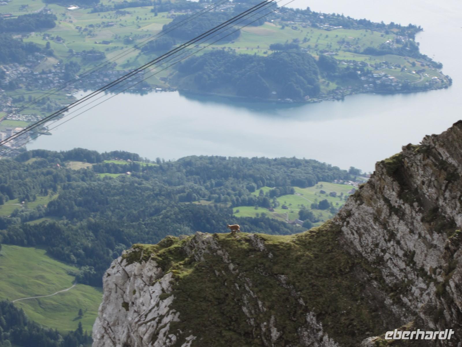 Gegen 15.00 Uhr setzen wir unsere Fahrt fort. Unser Ziel für heute ist der Pilatus (Hausberg von Luzern und bekannteste Aussichtpunkt der Zentralschweiz). Auf unserer Fahrt dahin müssen wir uns etwas gedulden. Stau vor Luzern. Aber Volker schafft es, dass wir pünktlich in Alpnachstad sind. Wir können uns ganz in Ruhe auf die Fahrt mit der steilsten Zahnradbahn der Welt freuen. Die Fahrt dauert 30 min dabei erleben wir eine Steigung bis 48%. Auf der 4,6 km langen Strecke sehen wir die unterschiedlichen Vegetationsstufen und auch die ersten Steinböcke.
