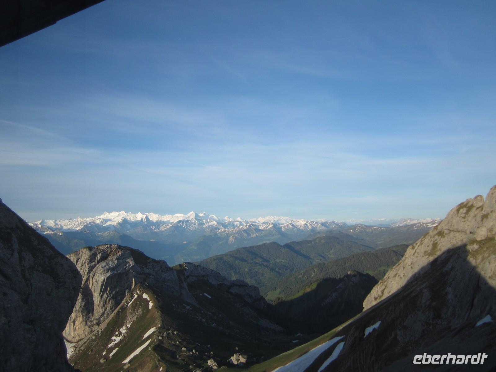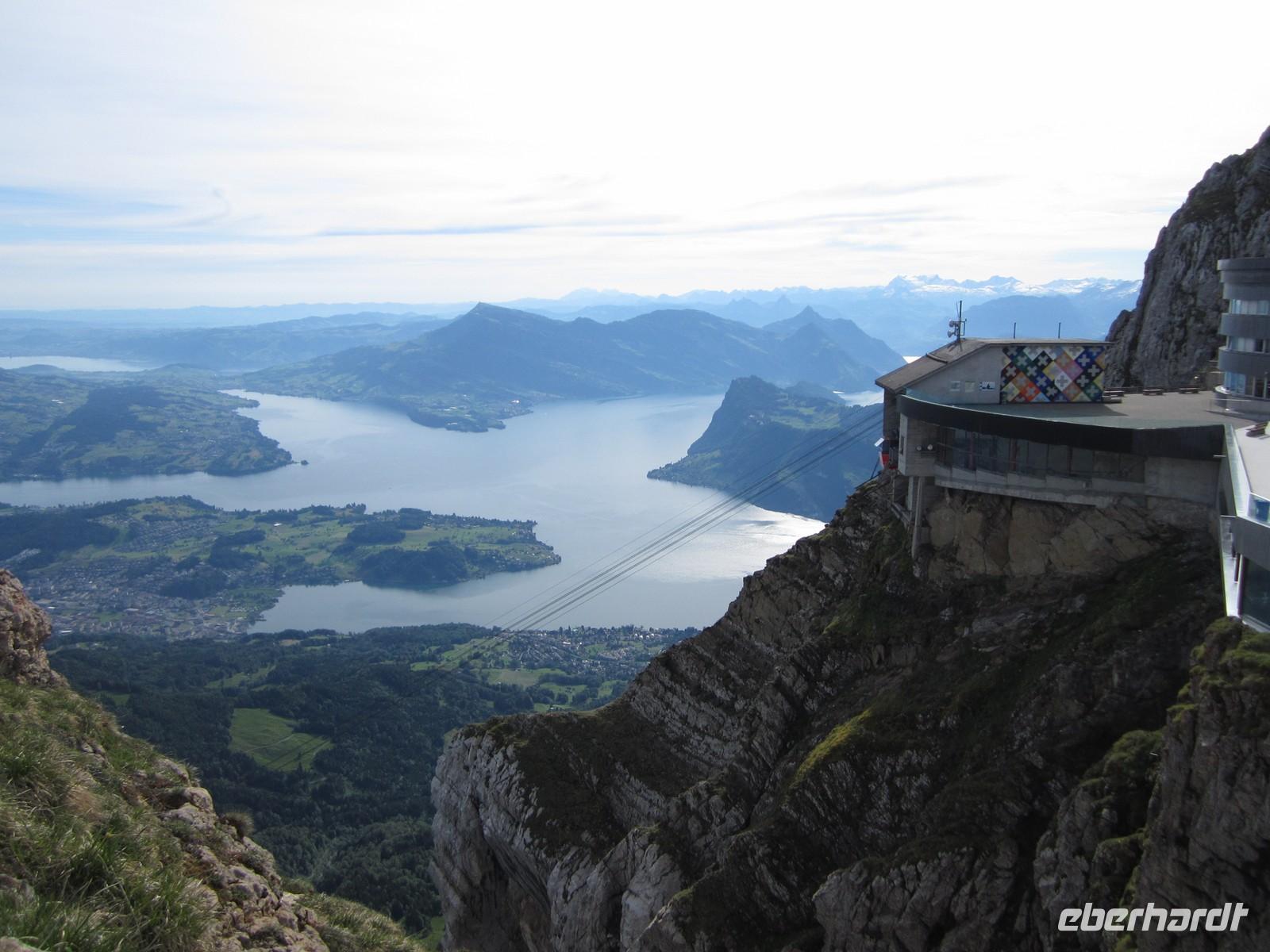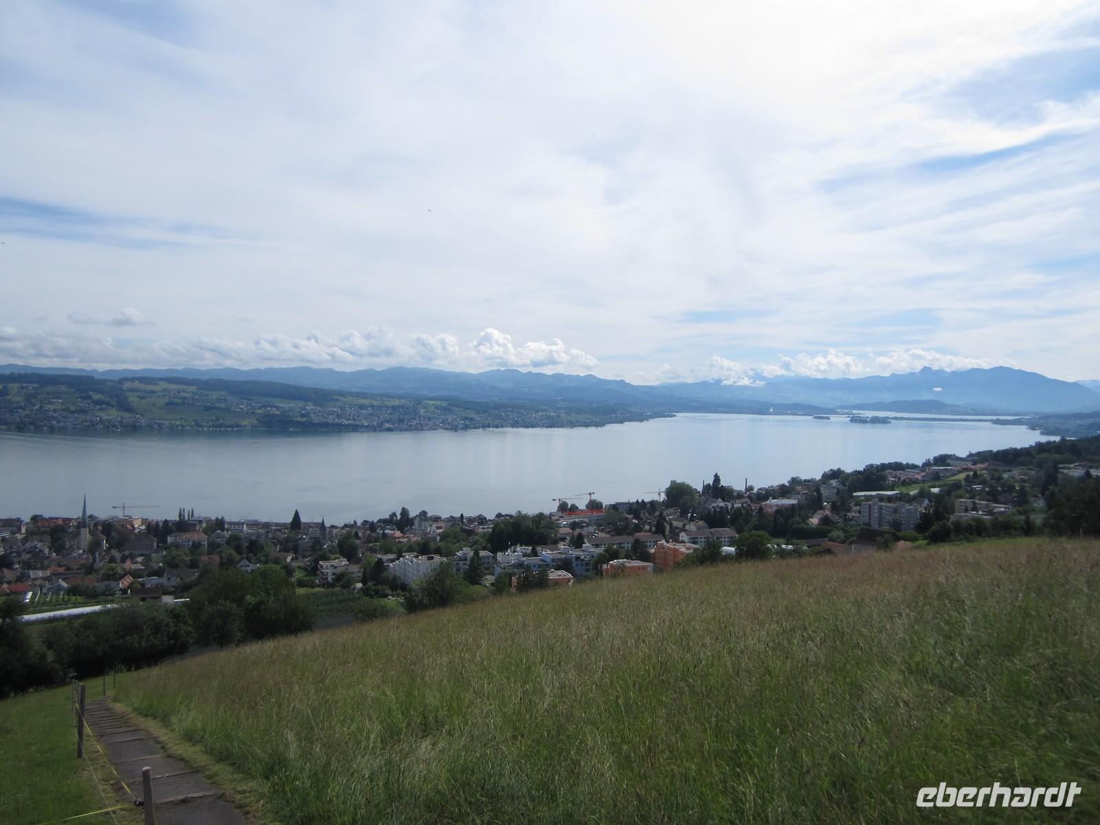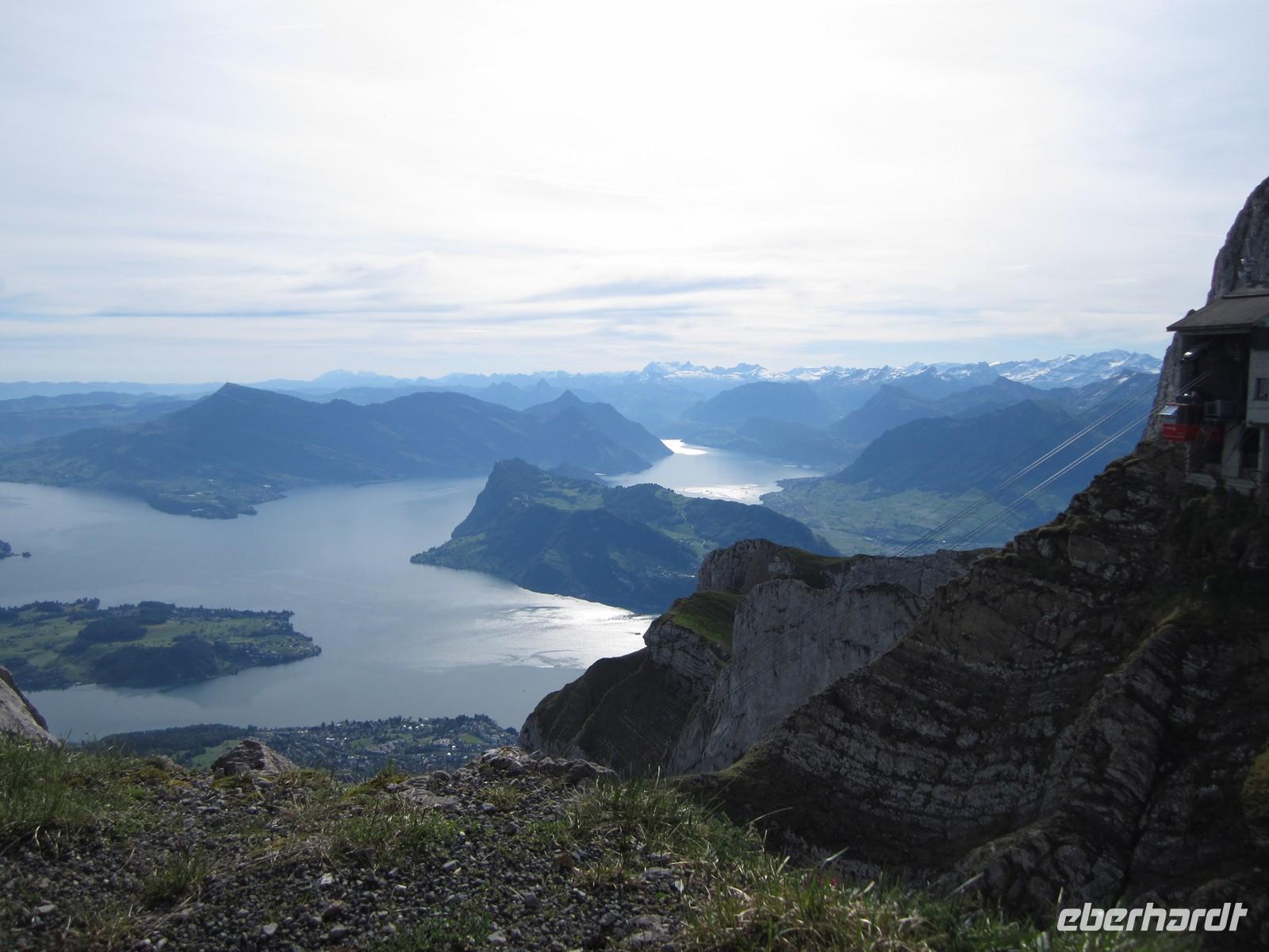 Wir werden mit einer großartigen Sicht über den Vierwaldstätter und Zuger See, aber auch mit Blick bis zum Säntis, Jungfraujoch und weiteren Bergspitzen für das schlechte Wetter in den letzten Tagen entschädigt.