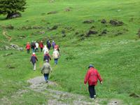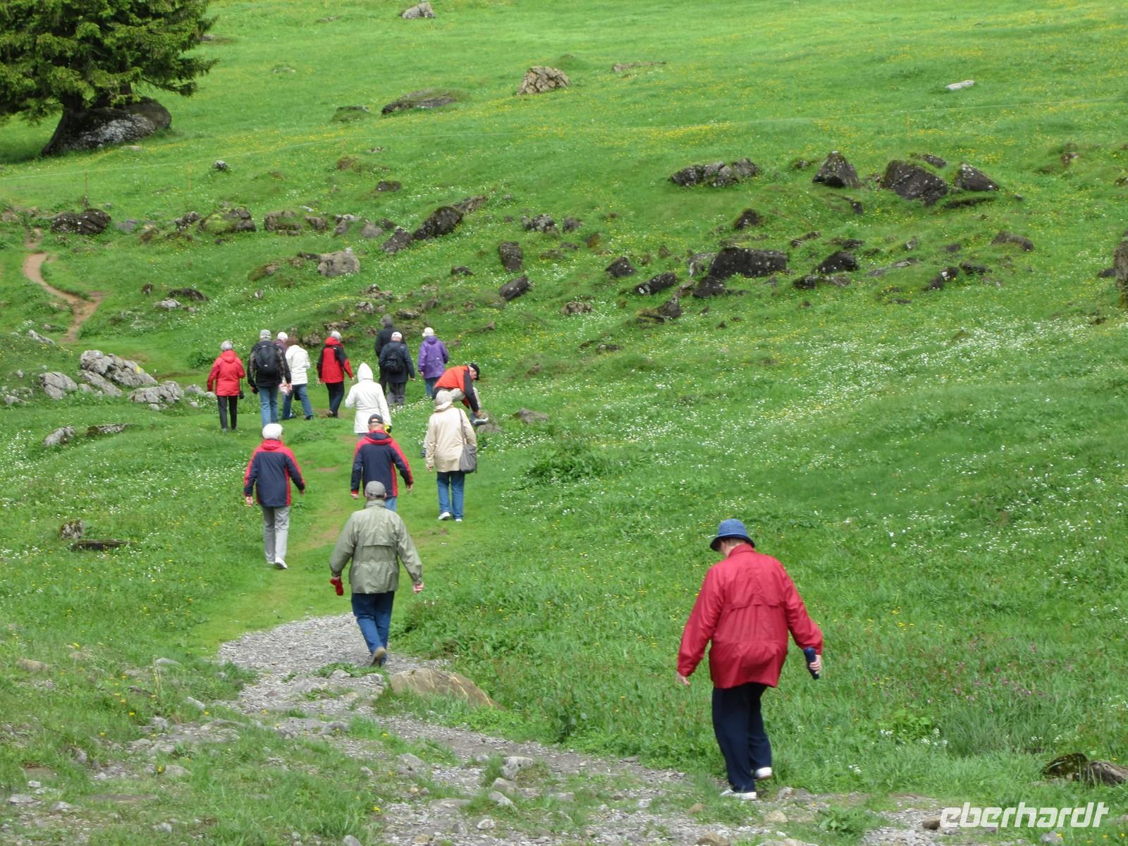 Nur die Mutigen beginnen die Wanderung und auch diese Gruppe musste vorzeitig das Hotel aufsuchen. Ein Gewitter zwingt uns zum Rückzug. Schade, die bunten Wiesen und die Erläuterung Alfreds zur Region hätten wir schon gern erlebt.