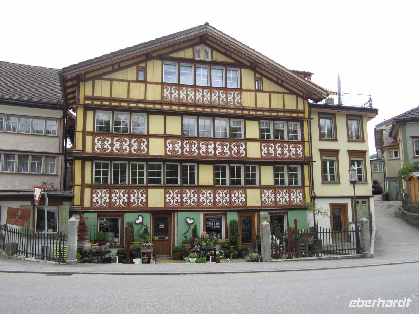 Wir bummeln durch den Ort und bewundern in der Hauptgasse die bemalten Holzhäuser in der Nähe des Landsgemeindeplatzes steht unser Bus. Wechselndes Wetter, Sonnen - Regen begleitet uns auch am heutigen Tag. Wir sind optimistisch am Nachmittag wollen wir am Fuße des Säntis eine Wanderung mit unserem Wanderleiter Alfred starten.