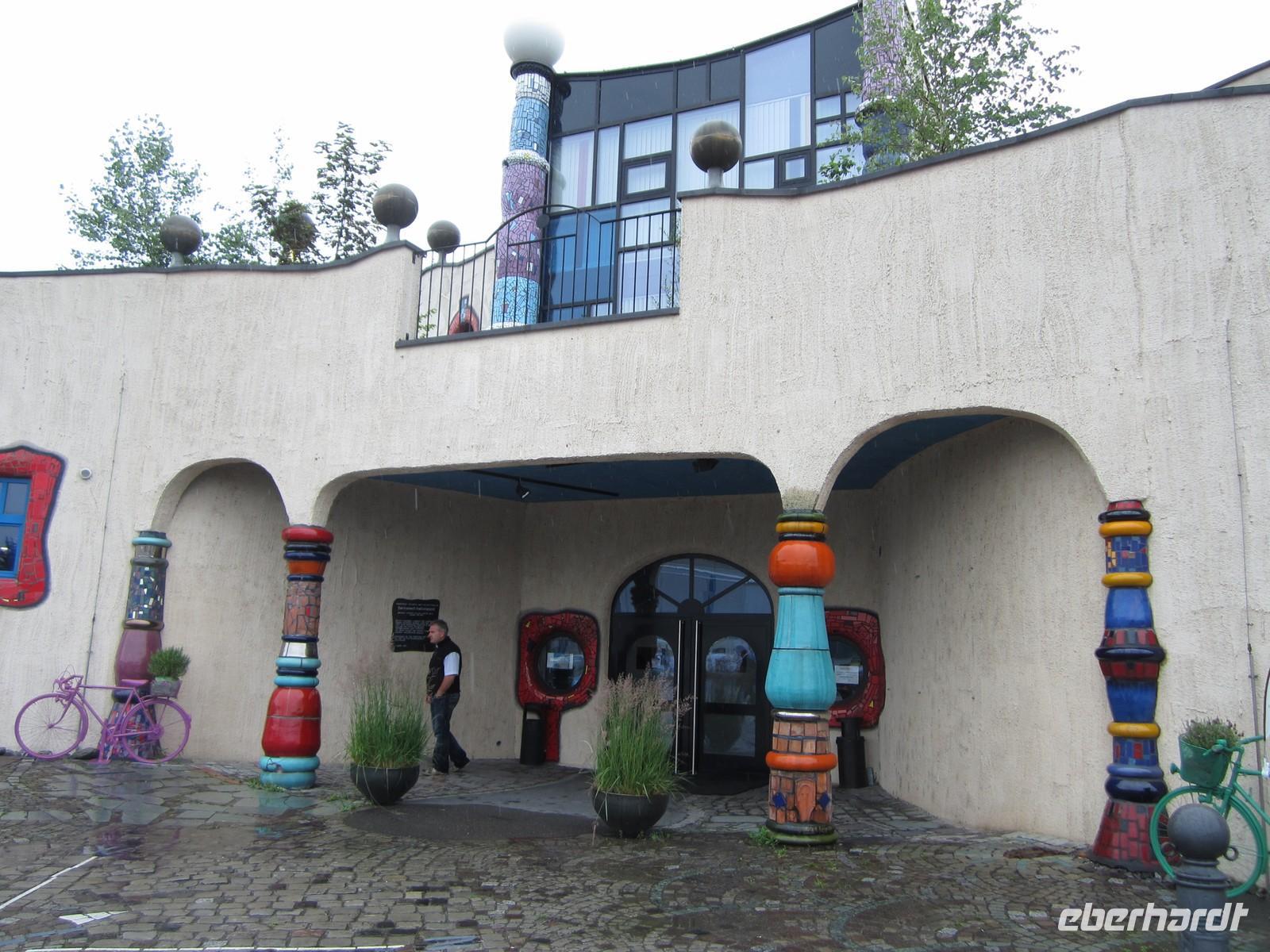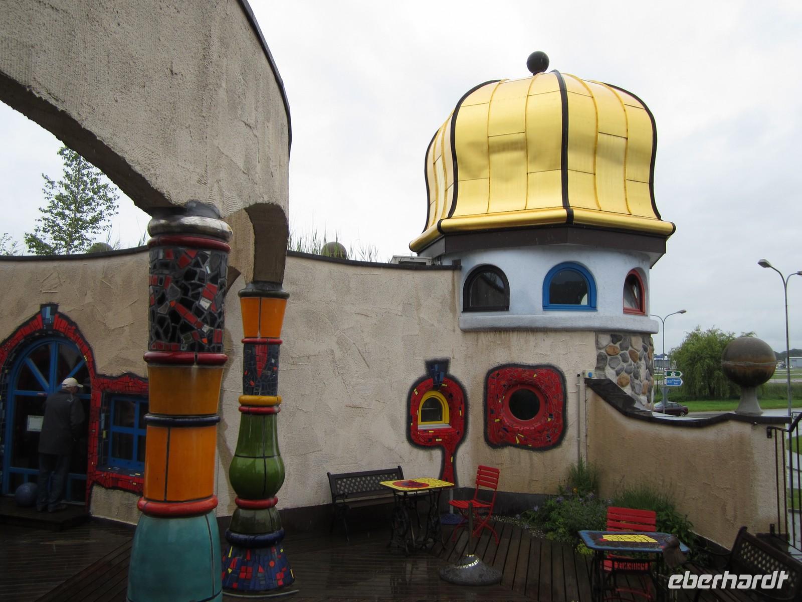 Für heute Nachmittag haben wir eine Fahrt am Bodensee geplant. Wir hoffen auf schönes Wetter. Ein Wunsch der sich nicht erfüllt. Dafür eine Überraschung. Wussten Sie, dass man die ungewöhnliche Architektur von Friedensreich Hundertwasser auch in der Schweiz findet?