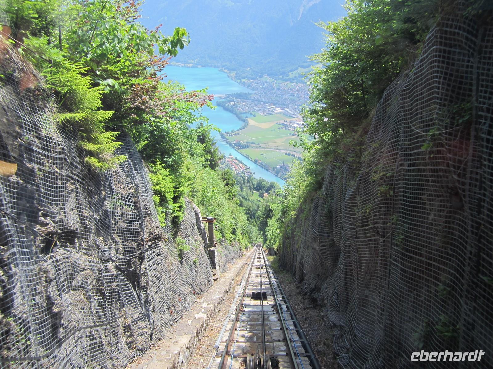 Unser letzter Tag in Interlaken und fast die gesamte Gruppe freut sich auf die Bahnfahrt zum Harder Kulm. Mit der Standseilbahn die 1908 eröffnet wurde fahren wir in die Höhe von 1322 m. Von hier oben hat man die beste Sicht über Interlaken und auf den Brienzer und Thuner See.