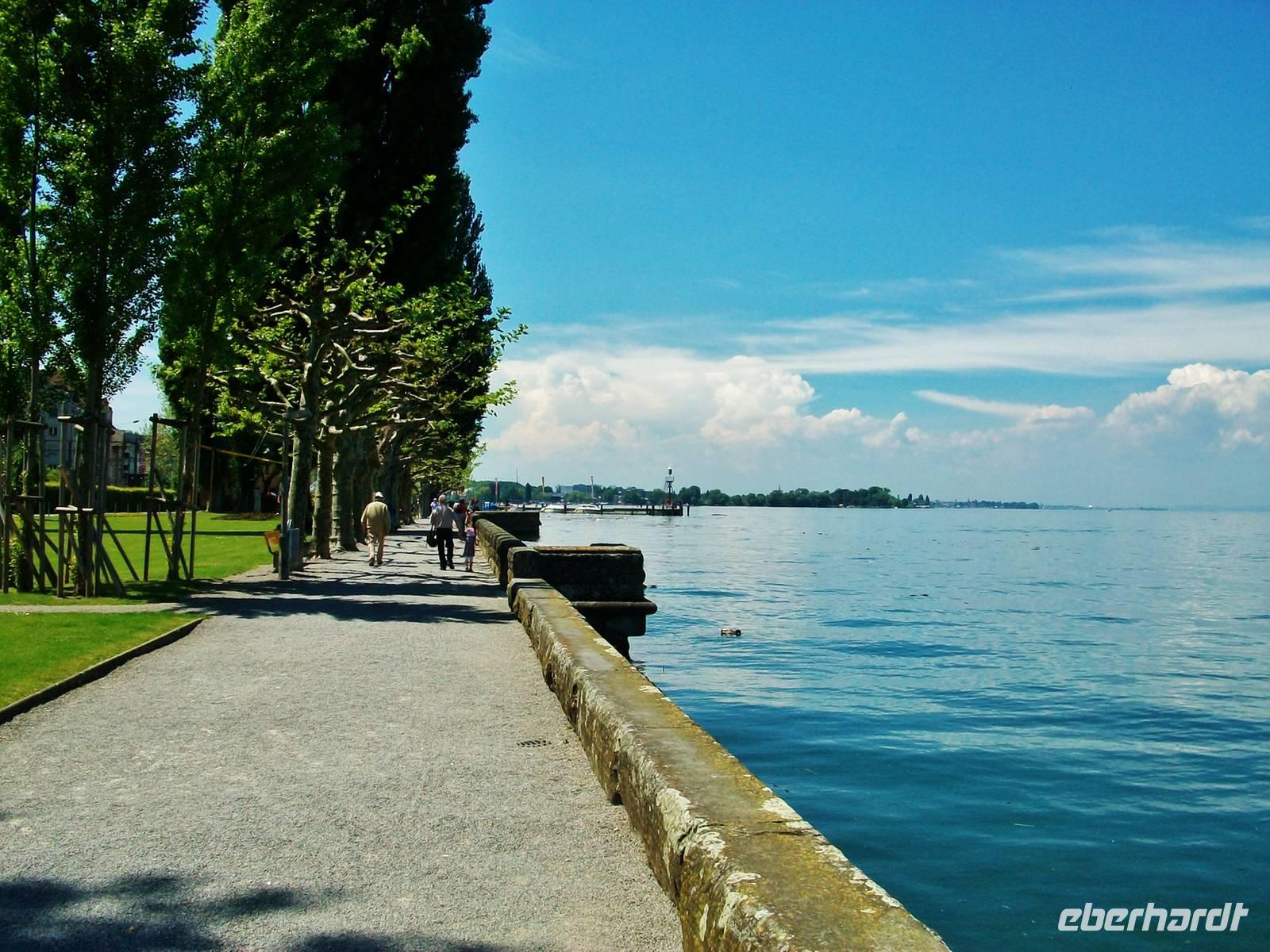 Dann geht es am Ufer weiter, wenig später kommen wir in Rohrschach an, hier, an der schönen Uferpromenade, gönnen wir uns eine Stunde Freizeit. Schön ist der Spaziergang auf dem lichtdurchfluteten Weg direkt am Wasser, hungrige Schwäne werden von Touristen gefüttert und der Blick geht zum jenseitigen Ufer auf die deutsche Seite.