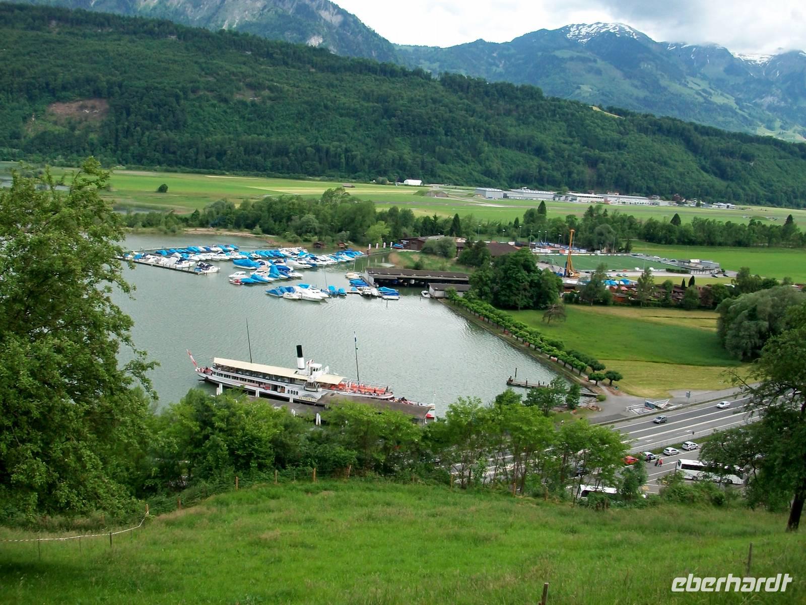 Vielfältig sind die Angebote hier in Interlaken; sehr empfehlenswert ist die Auffahrt auf den Harder Kulm, dem Hausberg der Stadt. In wenigen Minuten gelangt man dorthin; von der Bergstation sind es nur wenige Meter zum historischen Restaurant und hier hat der Betrachter den grandiosesten Blick den es nur geben kann.