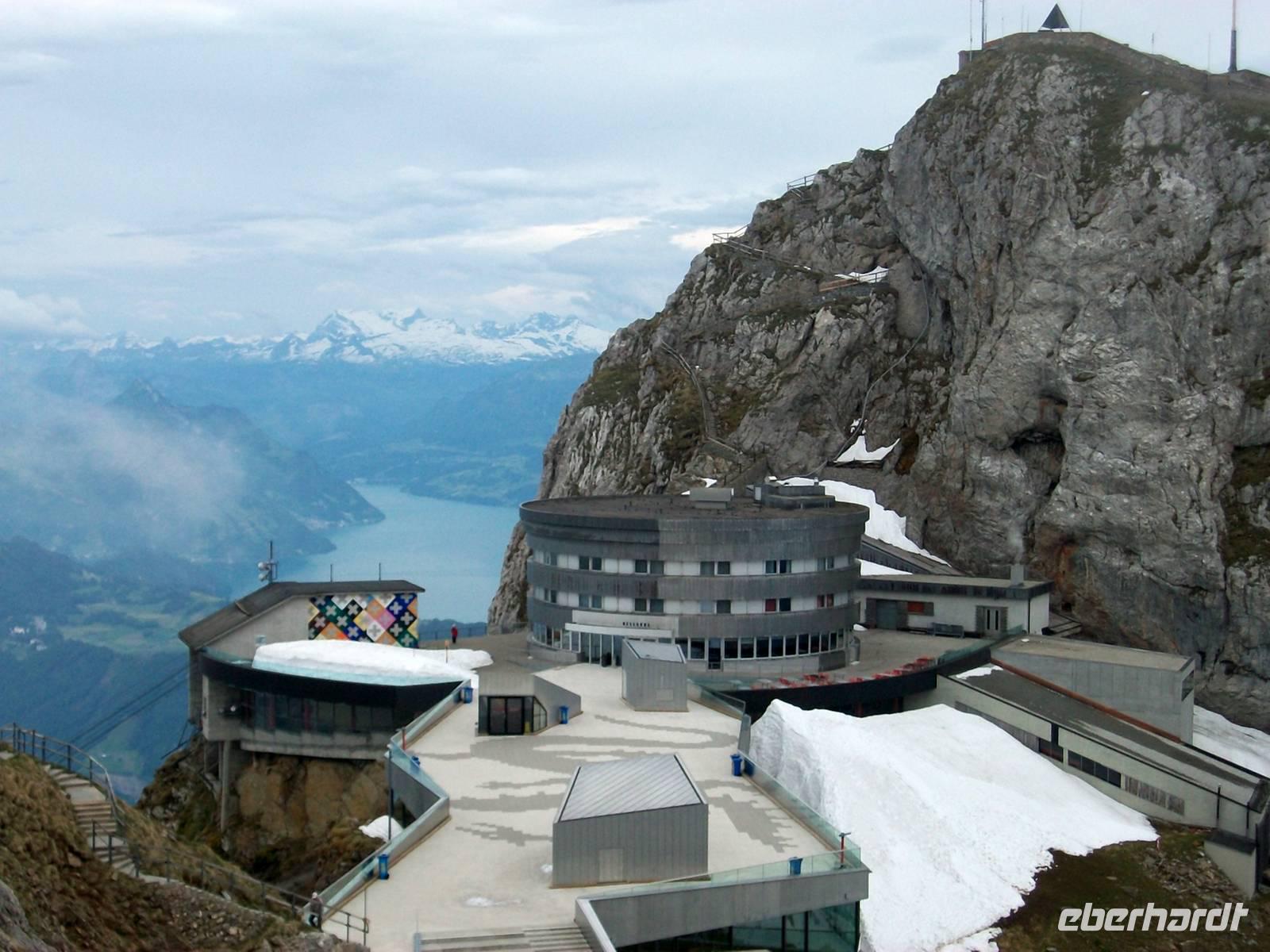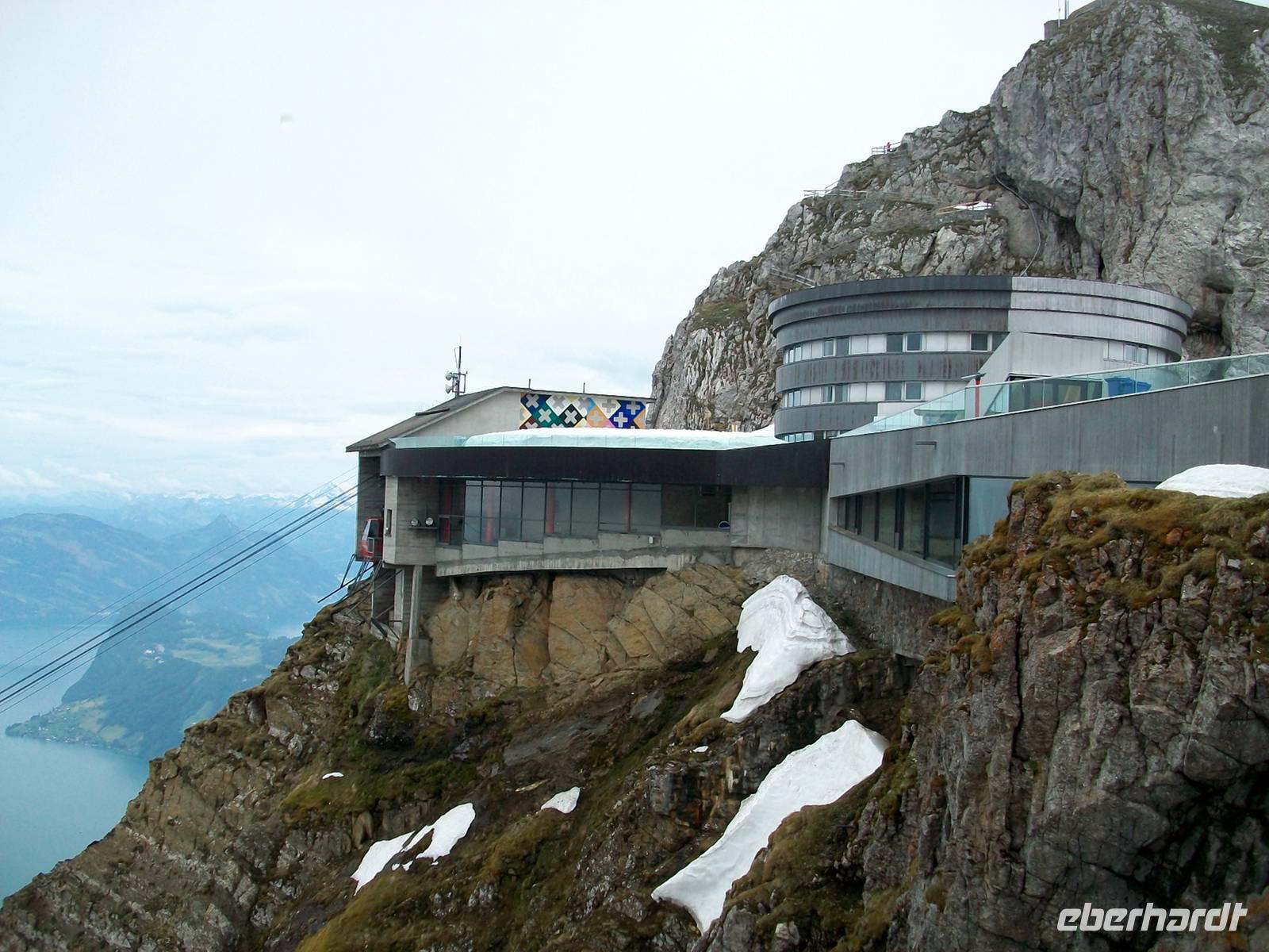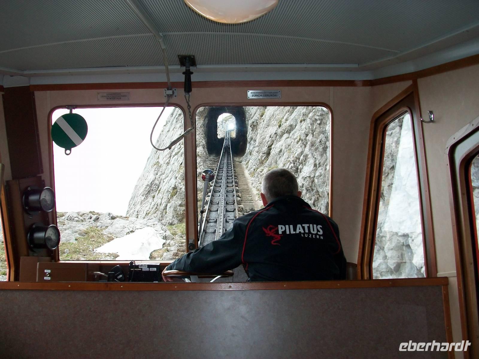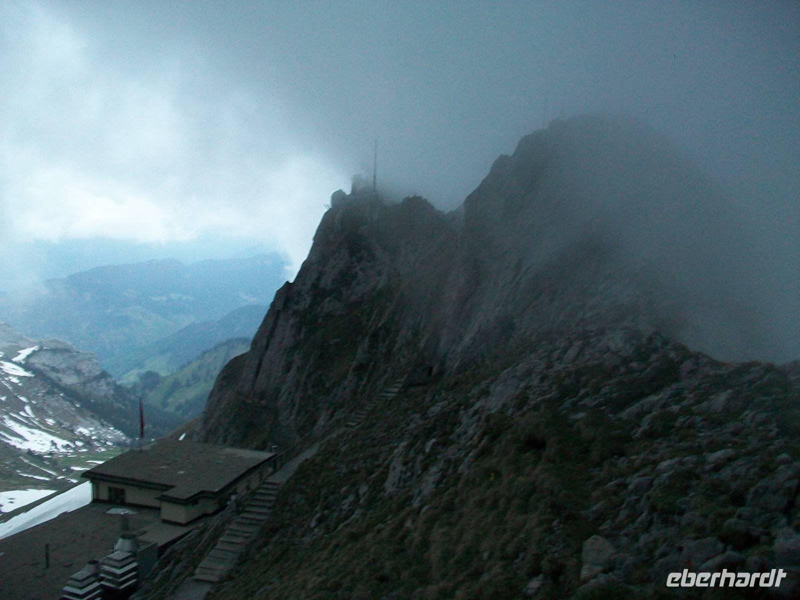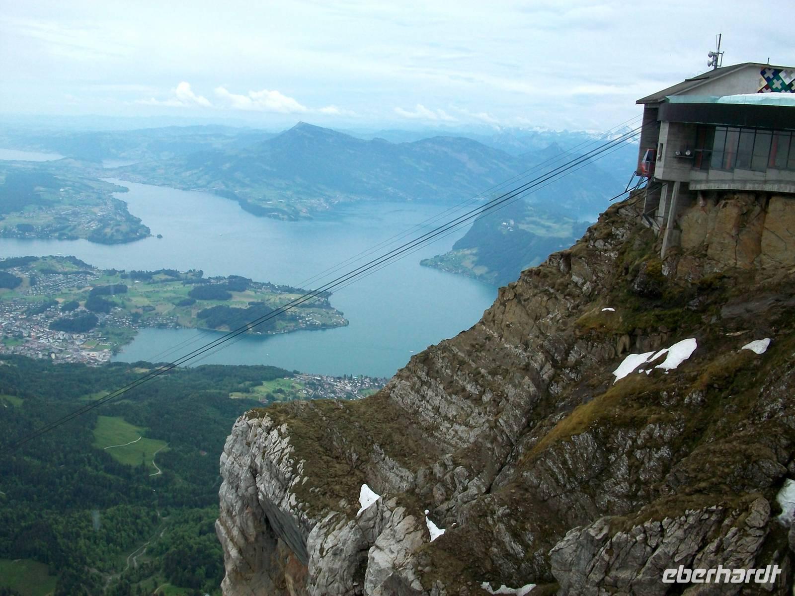 Bald sind wir in Alpnachstad angelangt, hier befindet sich die Talstation der Pilatusbahn. Nach einer Kaffeepause beginnt dann die Fahrt pünktlich halb fünf; schnell kommen wir der Spitze näher, unter uns ist der Vierwaldstätter See mit seiner großen Wasserfläche zu sehen und die Fahrt geht zuerst durch Wald, dann über schöne Almen und ganz oben dominiert der karge Fels in dieser herben Landschaft. Kurz vor der Bergstation werden wir von einem Rudel Gämsen begrüßt, und oben angekommen sind auch schnell die Zimmer im Hotel bezogen.