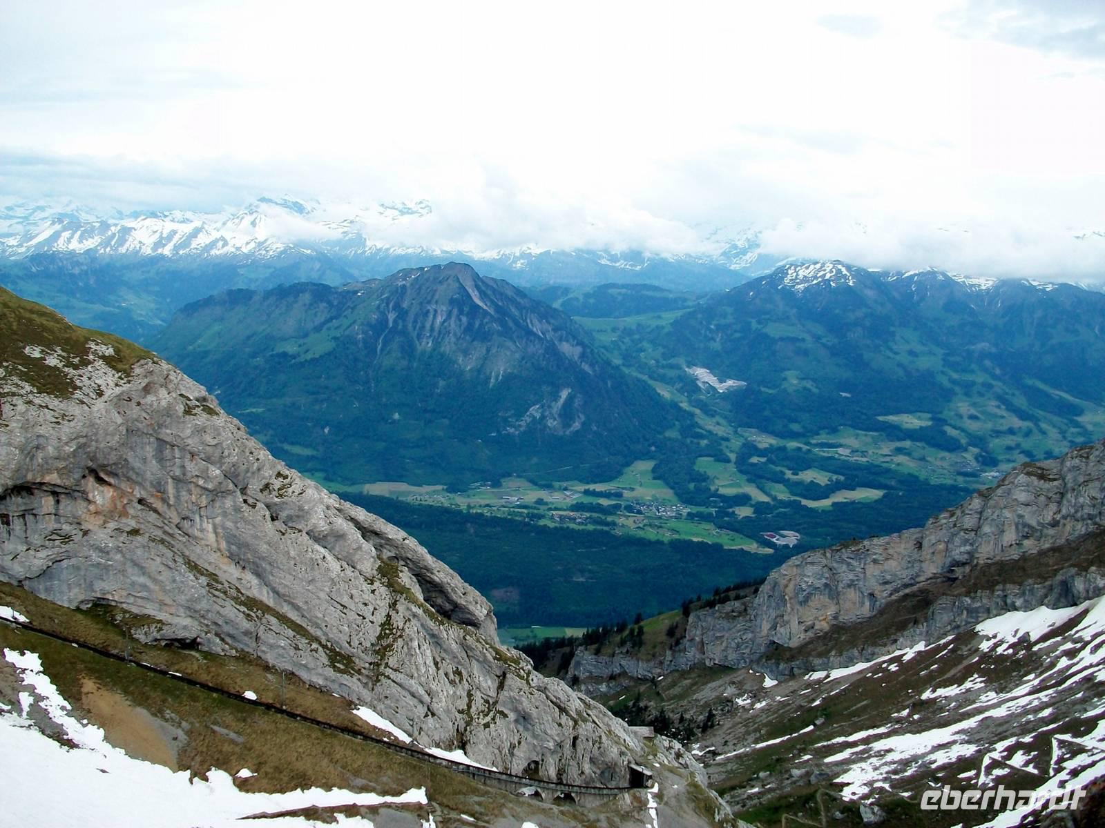 Schon bald bekommen wir die Erhebungen des Vierwaldstätter Sees zusehen, die Rigi, das Stanserhorn und den Pilatus. Dieser Berg hat sich einen Wolkenhut aufgesetzt, wird er Ihn abnehmen wenn wir oben sind?