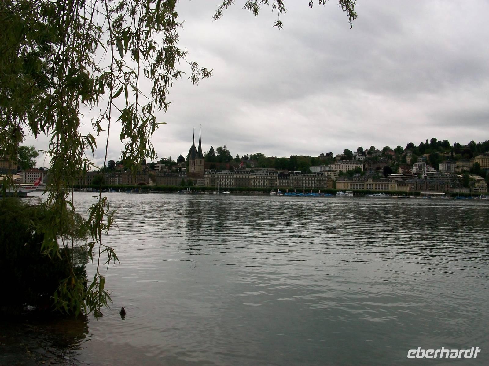 Nach kurzer Fahrt tauchen wir dann aus den Wolken auf und der Blick wird frei auf Luzern und den Vierwaldstätter See. Allerdings ist es noch ziemlich grau, überall ziehen Wolken entlang. Kurz nach elf sind wir dann am vereinbarten Treffpunkt und wenig später kommt auch unsere Stadtführerin Christina. Das Wichtigste: es regnet nicht!