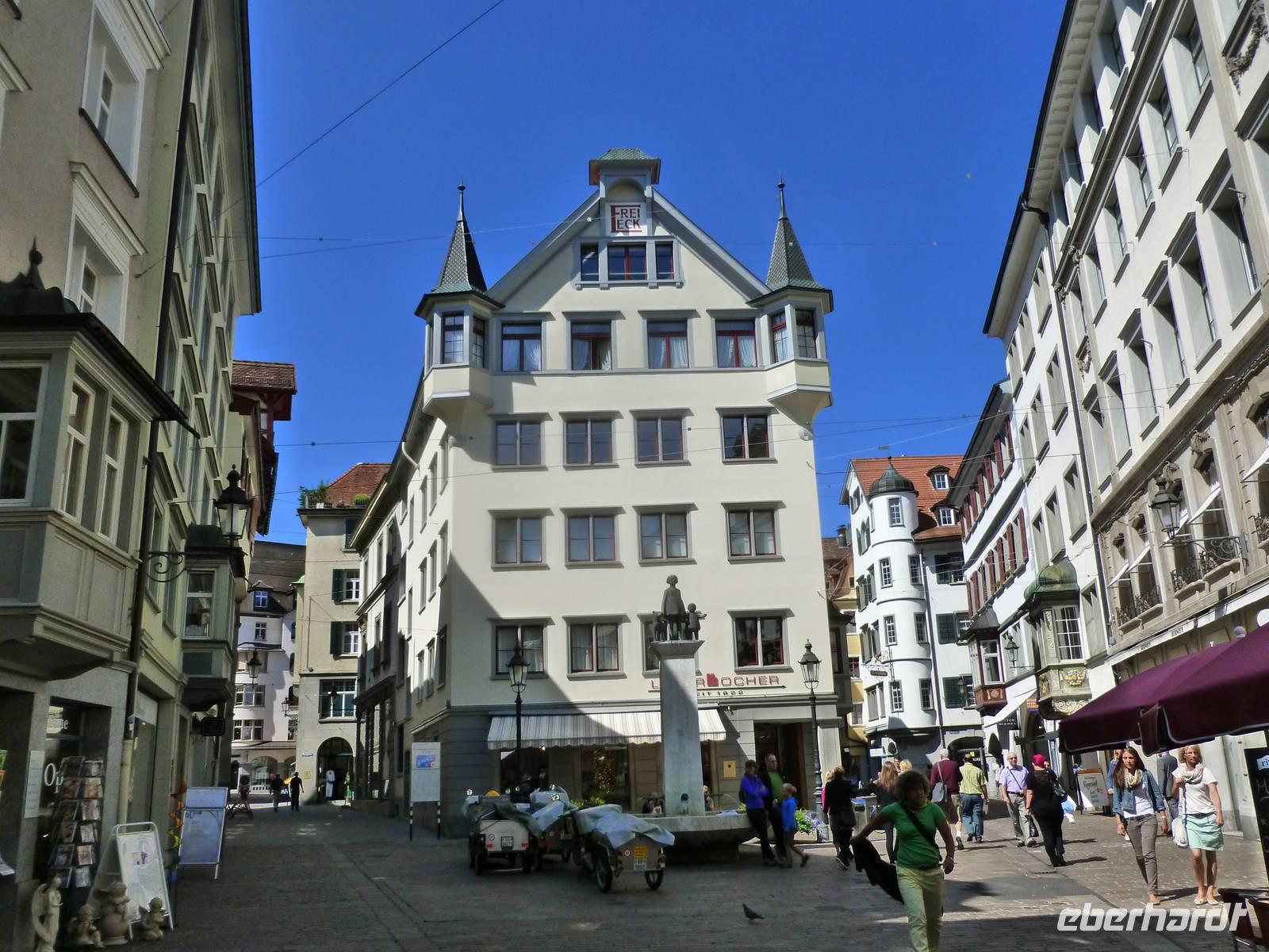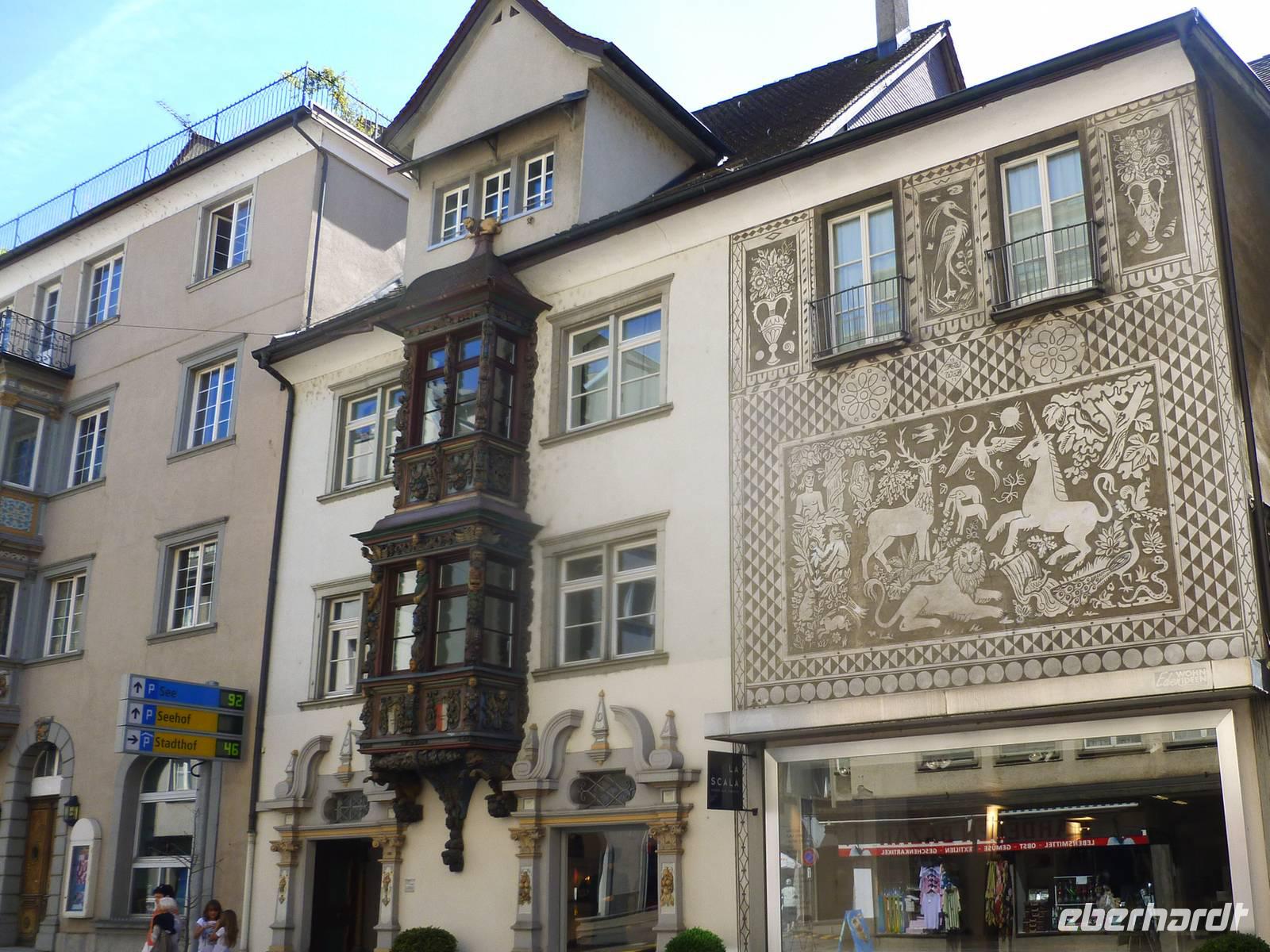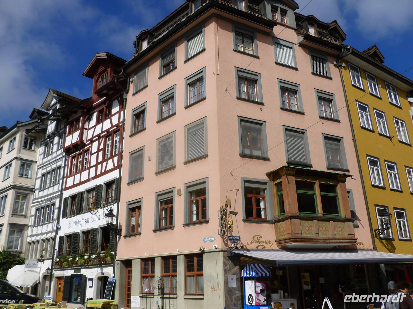 Nach einer erholsamen Nacht auf der Schwägalp unternahmen wir unseren ersten Tagesausflug. Am Vormittag ging es erst einmal in das nur etwa 35 Kilometer entfernte St. Gallen. Die Stadt liegt südwestlich vom Bodensee in einem schmalen Hochtal der Voralpen und ist sowohl der wirtschaftliche Mittelpunkt als auch das kulturelle Zentrum der Nordostschweiz. Im 7. Jahrhundert gründete hier der irische Wandermönch Gallus eine Einsiedelei. Aus dieser entstand dann Anfang des 8. Jahrhunderts ein Kloster und bald darauf unter dem Abt Otmar die Benediktinerabtei, die vom 9. bis zum 11. Jahrhundert eine Hochblüte erlebte und durch Schule und Bibliothek zu einem der kulturellen Höhepunkte nördlich der Alpen wurde. Aus einer um das Kloster entstandenen Handwerkersiedlung entwickelte sich letztendlich die Stadt. Wir erlebten eine Stadtführung und erfuhren hier natürlich viel über die Stadtgeschichte. Besonders beeindruckend war für die meisten von uns der Besuch der berühmten Stiftsbibliothek, die eine bemerkenswerte Innenarchitektur und überaus reichhaltige Bücherbestände aufweist. Am frühen Nachmittag erreichten wir dann die Gegend nördlich von St. Gallen - nämlich den Bodensee. Unseren ersten Stopp legten wir in der Nähe von Altenrhein ein. Dort befindet sich nämlich die herrliche Hundertwasser-Markthalle, die wir selbstverständlich sehen mussten. Am südlichen Bodensee-Ufer entlang und somit über Rorschach erreichen wir das kleine Städtchen Arbon. Arbon weist eine Reihe von Sehenswürdigkeiten auf. Besonders die Altstadt, mit ihren mannigfaltig verwinkelten Gassen, hält einiges an mittelalterlicher Geschichte Arbons präsent. Die Gebäude aus den umliegenden Quartieren stammen hauptsächlich aus der Zeit der Industrialisierung. Das Arboner Schloss mit Schlossturm gehört mit zu den bedeutendsten Sehenswürdigkeiten von Arbon und ist gleichzeitig ihr Wahrzeichen. Es handelt sich hierbei ursprünglich um eine Burg mit Bergfried. Der deutlich ältere Bergfried ist am grauen Gemäuer zu erkennen und stammt aus dem Jahr 993. Hier in Arbon schlenderten wir die Promenade entlang und genossen einfach das Flair des Bodensees. Nach einem erlebnisreichen Tag waren wir am frühen Abend auf der Schwägalp zurück. Einige von uns nutzten die Gelegenheit und unternahmen noch einen kleinen Spaziergang auf einem der zahlreichen markierten Wege.