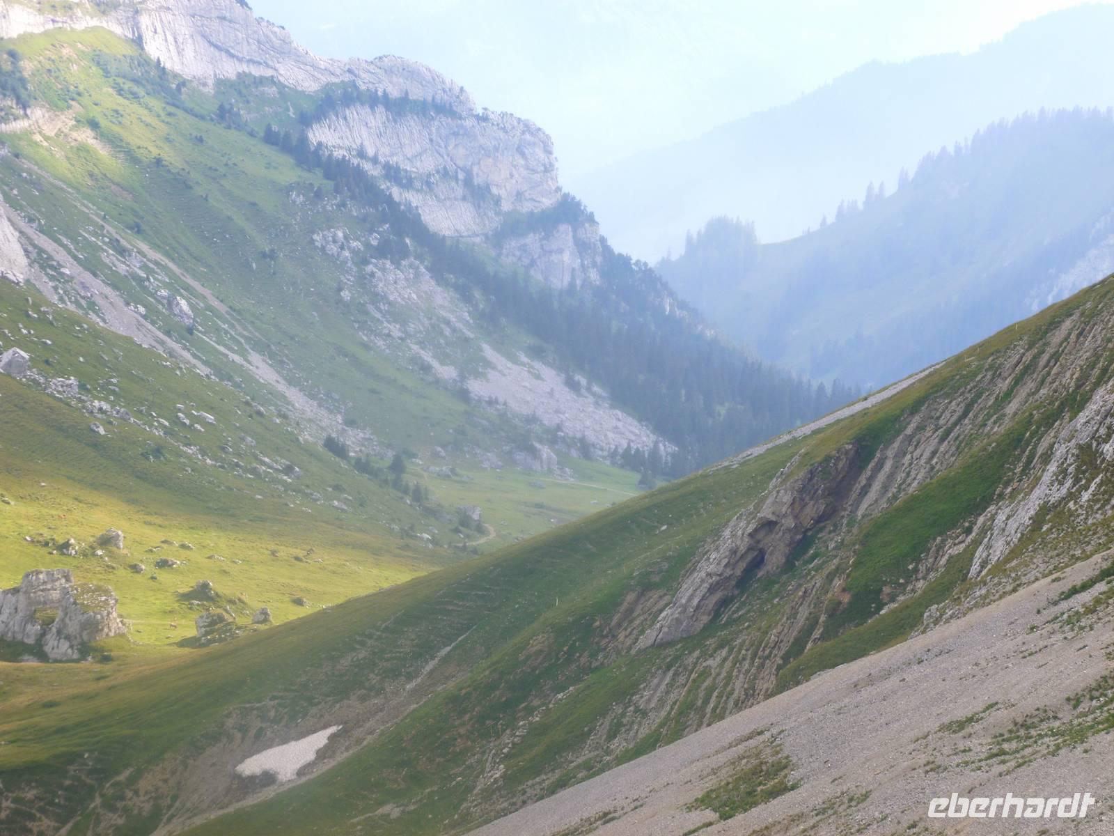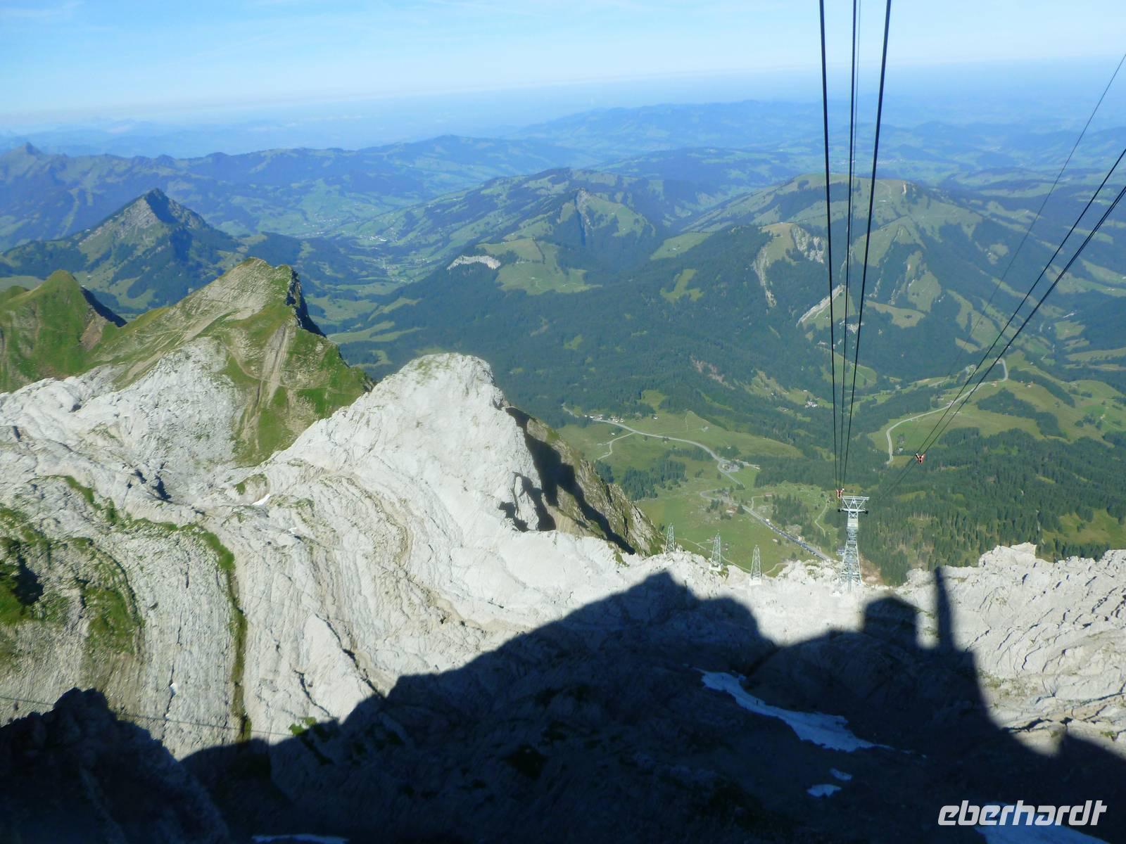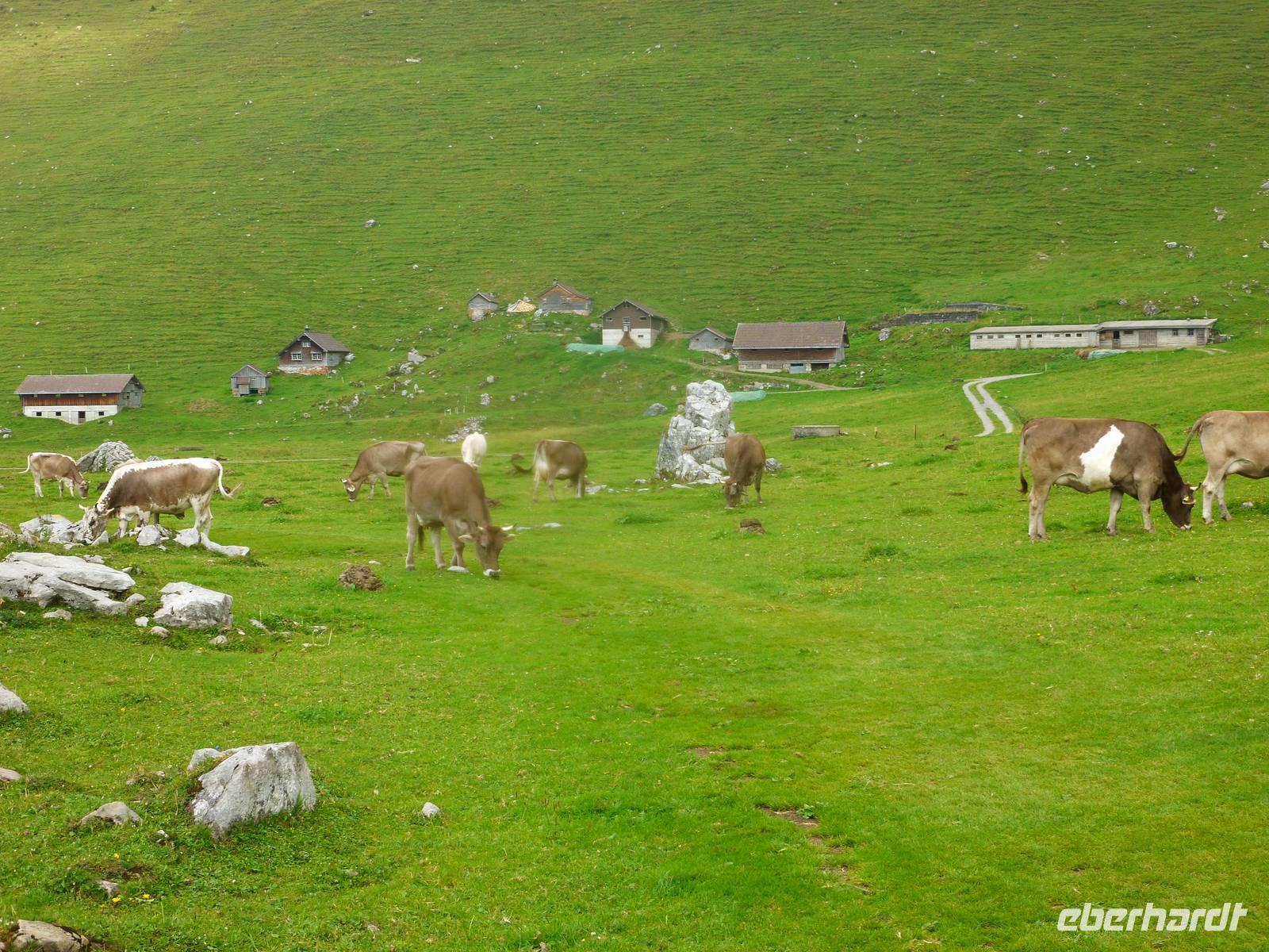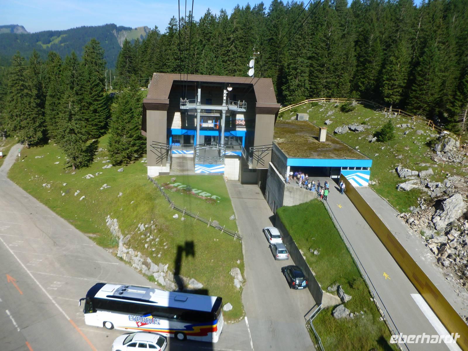 Aufgrund der knapp 700 Kilometer langen Fahrtstrecke von Dresden bis zur Schwägalp im Appenzeller Land ging es bereits um 6 Uhr in Dresden los. In der Nähe von Münchberg war unsere Reisegruppe mit insgesamt 37 Personen schließlich komplett. Die Fahrt führte uns nun weiter über Nürnberg, Feuchtwangen, Ulm, Memmingen und Lindau zum Bodensee. Das Wetter war optimal und so ging es für uns ein kleines Stück dem Bodensee entlang, bereits bei Lindau verließen wir somit die Autobahn. Doch leider gab es kurz nach der deutsch-österreichischen Grenze einen Mega-Stau und somit entschlossen wir uns kurzerhand, zurück auf die Autobahn und somit durch den 6,7 Kilometer langen Pfändertunnel zu fahren. Kurze Zeit später erreichten wir Höchst, den österreichischen Grenzort zur Schweiz und nur der Alte Rhein trennte uns nunmehr von St. Margarethen, dem schweizerischen Grenzort. Nach einer längeren Pause in St. Margarethen, hier können wir übrigens unsere Euros in Schweizer Franken umtauschen, brachen wir zu unserer letzten Etappe des heutigen Tages auf. Von hier war es jetzt nur noch ein Katzensprung zur Schwägalp. Wir wählten die Route über St. Gallen und Herisau, also fuhren wir das Appenzeller Land aus nördlicher Richtung an. Am frühen Abend erreichten wir schließlich unser Hotel für die nächsten drei Nächte - das Berghotel Schwägalp! Das Berghotel Schwägalp liegt auf einer Höhe von knapp 1.400 Metern und abseits von jeglichem Großstadtlärm. Die einzigen Nachbarn hier sind glückliche Schweizer Kühe!