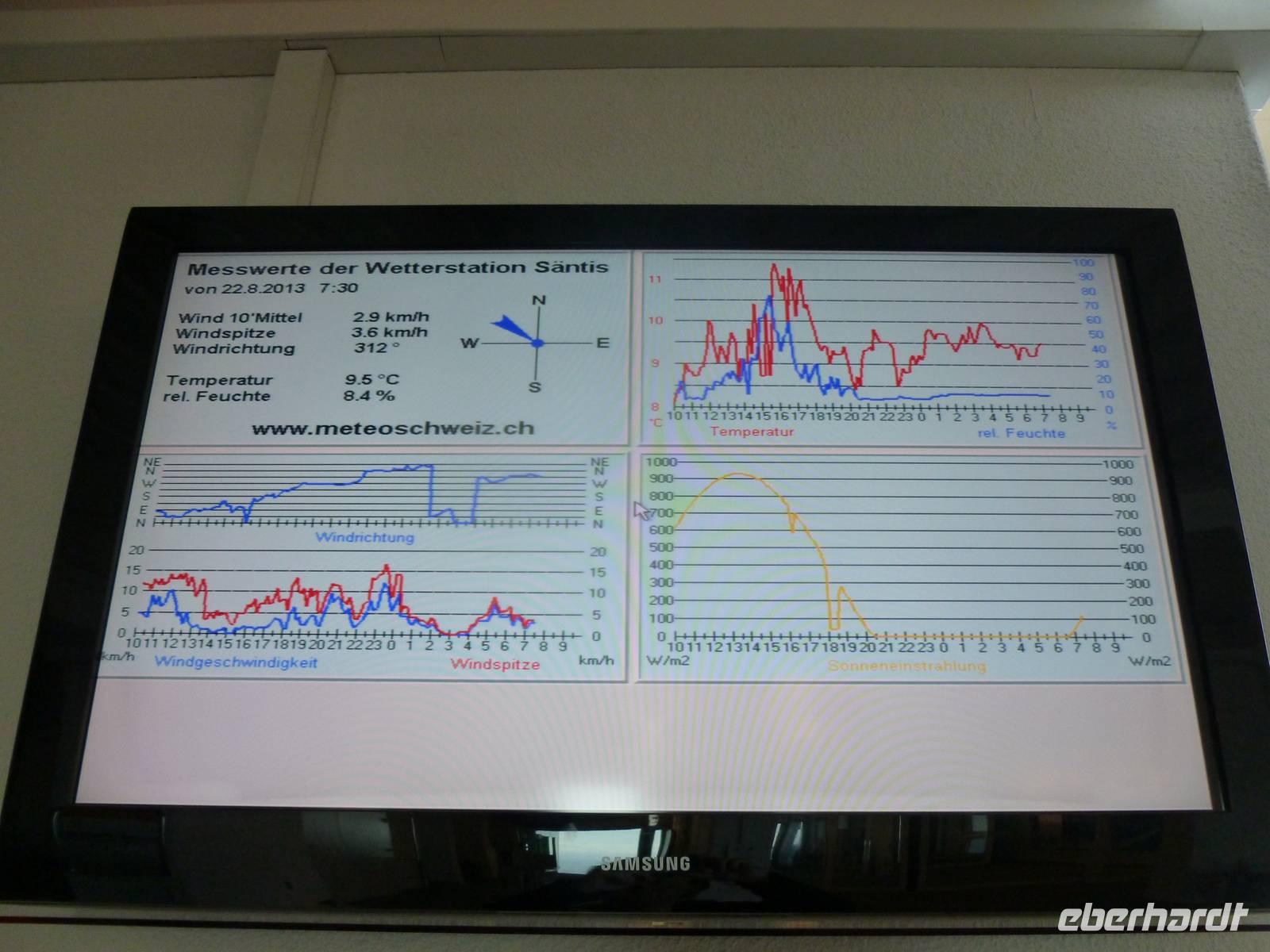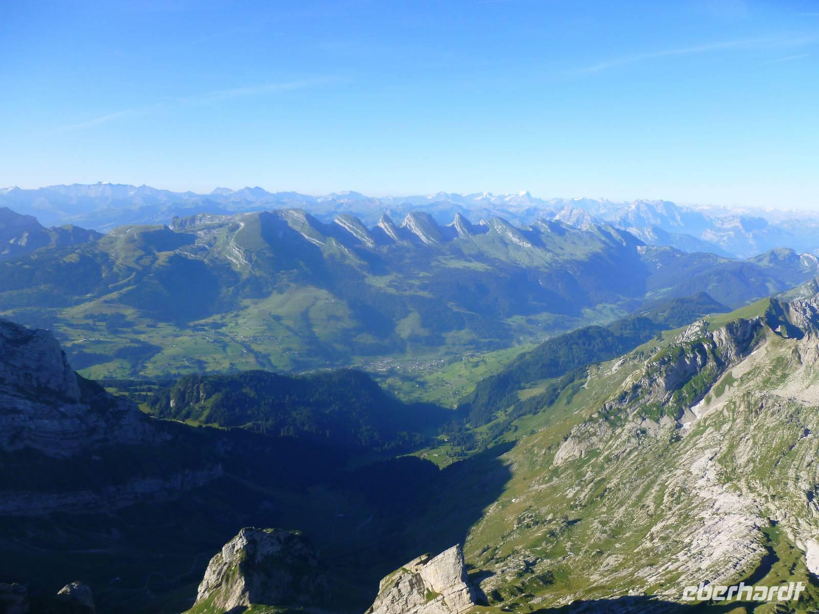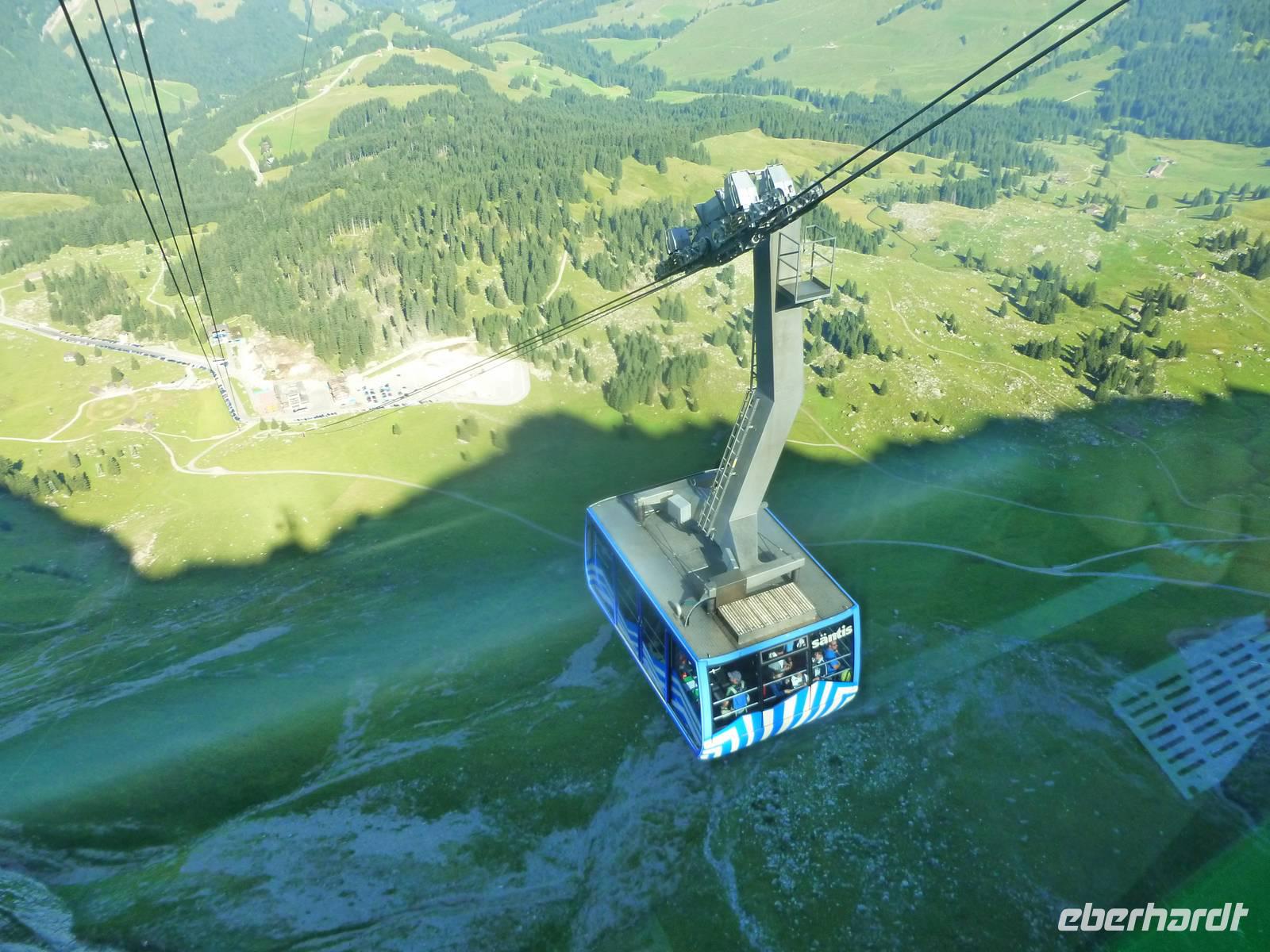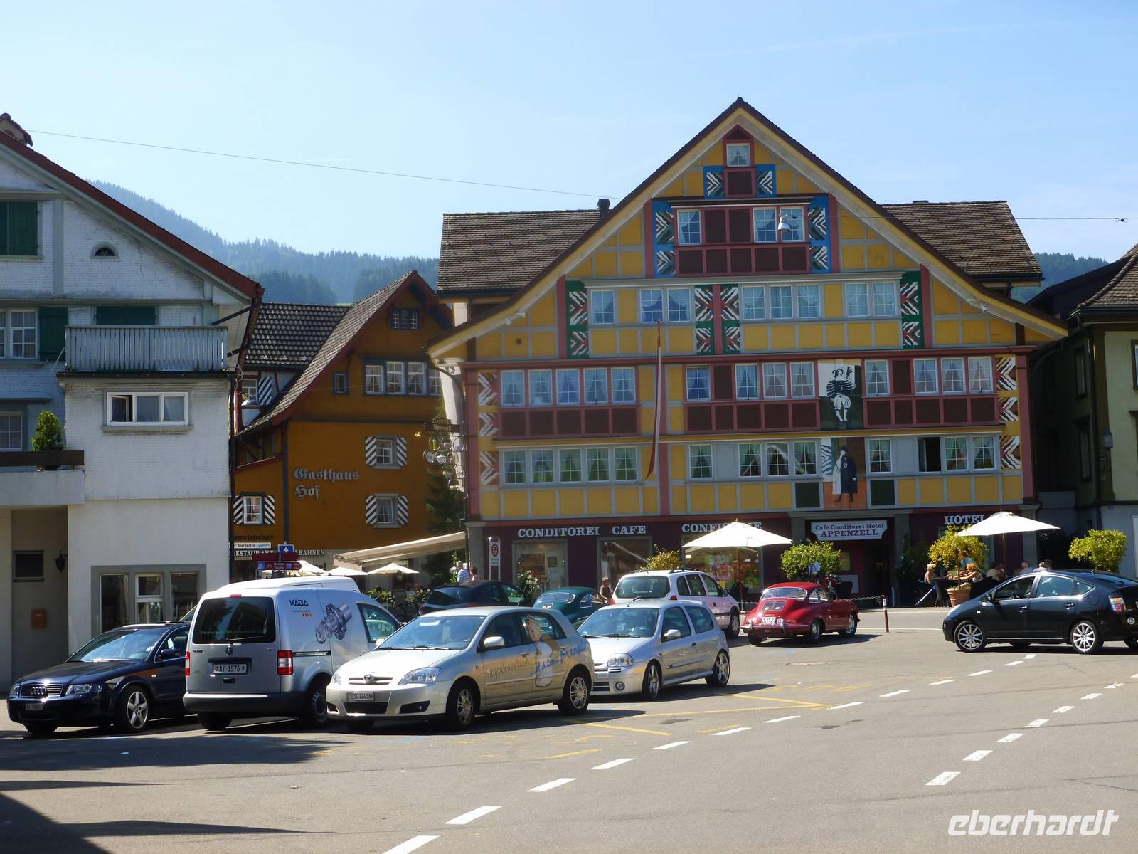 Gleich am Morgen fuhren wir hinauf auf den 2.502 Meter hohen Säntis, den höchsten Gipfel des Alpstein-Massivs. Mit der 1935 in Betrieb genommenen Säntis-Schwebebahn ging es hoch hinaus. Das Wetter ist vielversprechend und auf dem Säntis genossen wir tolle Blicke auf die umliegenden Berge. Bei schönem Wetter bietet sich nämlich vom Gipfel des Säntis eine überwältigende Rundsicht auf die Vorarlberger, Bündner, Glarner und Urner Alpen sowie über den Bodensee hinaus bis weit ins schwäbische Land. Wir stärkten uns erst einmal mit einem reichhaltigen Bergfrühstück. Anschließend konnten wir auf dem Säntisgipfel mal hinter die Kulissen schauen, denn während einer Führung ging es sogar in den 123 Meter hohen Sendemasten hinein, der von der Swisscom betrieben wird. Viele interessante Daten und Fakten erklärte man uns und auch ein kleiner Film über den Säntis wurde uns gezeigt. Nachdem wir am späten Vormittag wieder auf der Schwägalp angekommen waren, ging es gleich weiter nach Appenzell, dem Hauptort des Halbkantons Appenzell-Innerrhoden. In dem gut erhaltenen Ortskern, besonders an der malerischen Hauptgasse, zeigt sich immer wieder gepflegte Tradition. Zwischen schmucken bemalten Holzhäusern mit geschwungenen Giebeln stehen Steinbauten aus dem 16. Jahrhundert. Nach einem ausgiebigen Stadtspaziergang besuchten wir die Appenzeller Alpenbitter AG. Der Appenzeller ist das Hauptprodukt der Appenzeller Alpenbitter AG. Er genießt nicht nur in Appenzell, sondern in der ganzen Schweiz einen fast 100%igen Bekanntheitsgrad, der auf zwei Gründe zurückzuführen ist, die gleichzeitig auch die Philosophie dieses Familienbetriebs widerspiegeln - höchstmögliche Qualität und die ausschließliche Verwendung von natürlichen Rohstoffen. Natürlich durften wir den Appenzeller Kräuterlikör, das Aushängeschild des Unternehmens, auch kosten und gut gelaunt unternahmen die meisten Gäste unserer Gruppe dann am Nachmittag eine Wanderung auf der Schwägalp. Unser einheimischer Wanderführer Albert begleitete uns auf dieser etwa 1,5-stündigen Tour und erzählte uns viele wissenswerte Dinge über das Leben, die Tier- und Pflanzenwelt auf der Alm. Naja, auf halber Strecke gab es dann auch nochmals eine kleine Aufmunterung - den echten Appenzeller Kräuterschnaps! So genossen wir unterwegs eine kleine Stärkung und der Rückkehr zum Berghotel stand nichts mehr im Wege. Zum Abendessen gab es heute übrigens eine echte Schweizer Spezialität - Raclette. Das Wort Raclette leitet sich vom Französischen ab (racler = schaben). Um Raclette zuzubereiten, wird ein großer halbierter Käse an der Schnittfläche erhitzt und die geschmolzene Oberfläche jeweils abgeschabt; zu jeder Portion isst man eine Pellkartoffel und pikanten Zutaten. Einfach lecker...!
