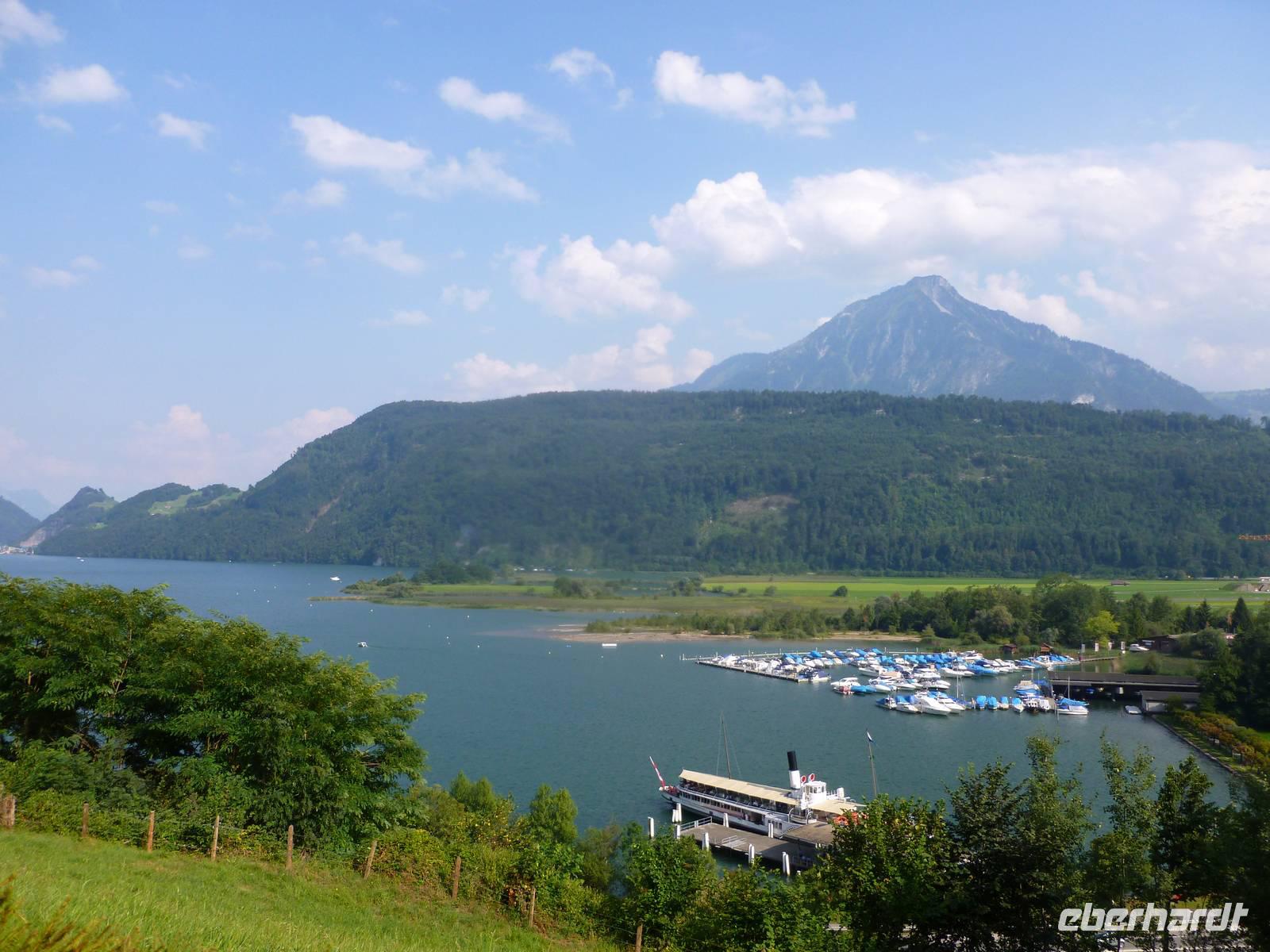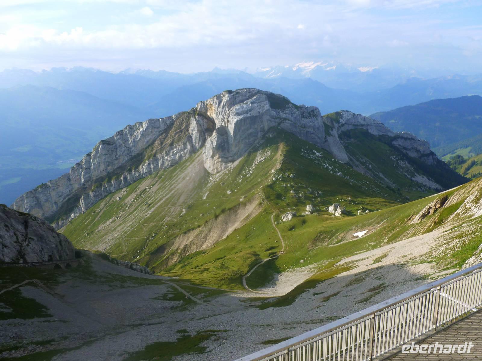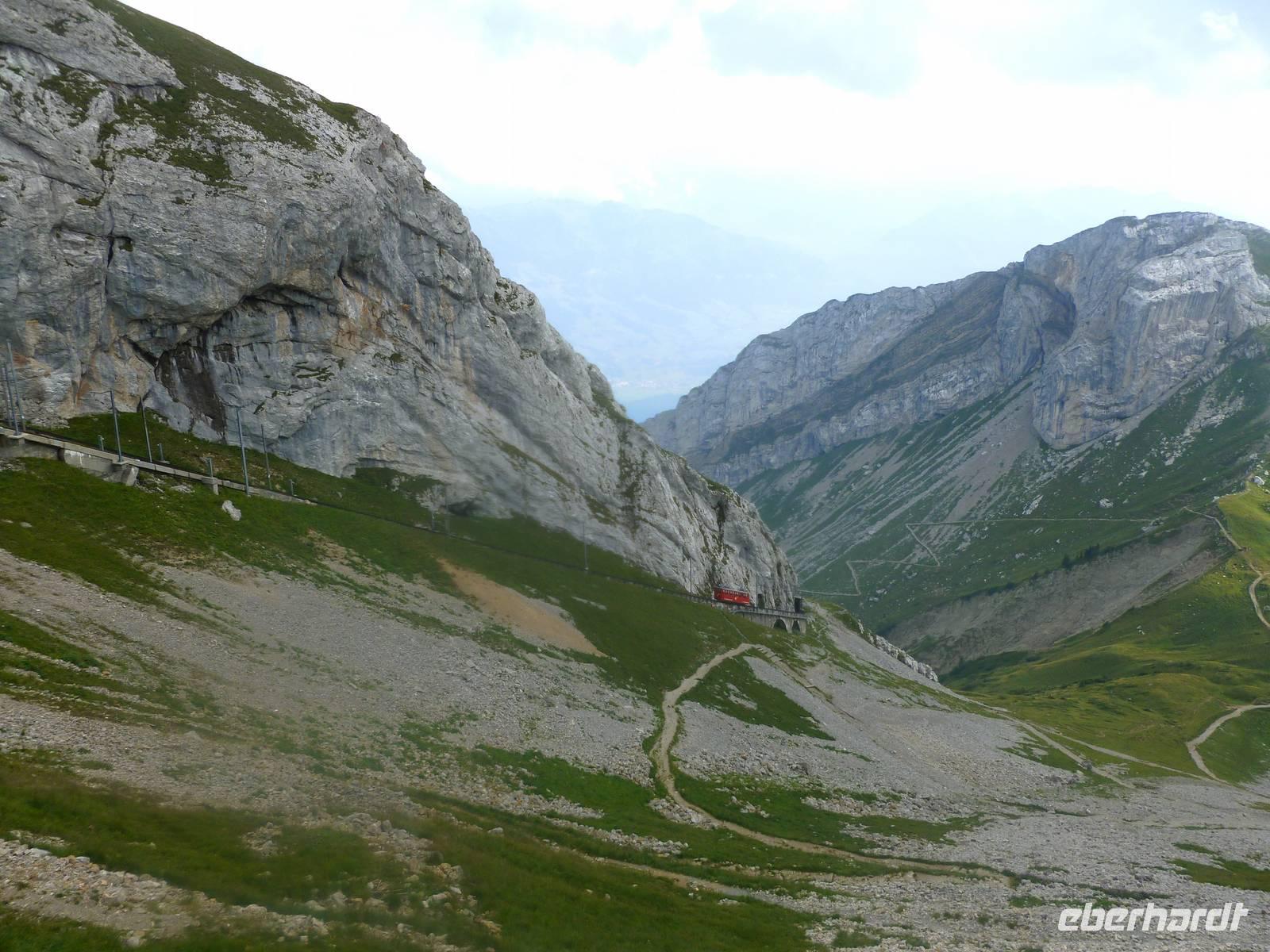 Nun hieß es auch schon wieder Abschied zu nehmen vom Appenzeller Land und der Schwägalp. Unsere Reise führte uns nunmehr nach Zürich, der größten Stadt der Schweiz. Gleichzeitig ist die Stadt das bedeutendste Wirtschafts- und Kulturzentrum des Landes - bei aller Geschäftigkeit aber dennoch eine der schönsten Städte mit gepflegter Tradition und zahlreichen Sehenswürdigkeiten. Leider hatten wir heute eine nicht gerade kompetente Stadtführerin erwischt und somit lag für uns ein kleiner Schatten über der Stadt! Trotz allem machten wir das Beste daraus und sahen die positiven Seiten - vor allem die tolle Lage am unteren nordwestlichen Zürichsee begeisterte uns. Zürich ist im Vergleich zu deutschen Großstädten nicht wirklich groß, aber die Stadt hat einen großen Stellenwert für die Schweizer, denn hier wird immerhin ein Fünftel des Schweizer Volkseinkommens erwirtschaftet. Nach unserem Aufenthalt in Zürich erreichten wir am Nachmittag die Zentralschweiz, genauer gesagt Alpnachstad. Von hier aus fuhren wir mit der steilsten Zahnradbahn der Welt (maximal 48 Prozent) in nur etwa 30 Minuten hinauf zum 2.132 Meter hohen Pilatus-Kulm. Am späten Nachmittag erreichten wir den Gipfel und bezogen erst einmal unsere Zimmer im Hotel "Bellevue". Anschließend genossen wir die herrliche Bergwelt hier oben - die Sicht war grandios und zahlreiche Wanderwege luden zum Erklimmen der zahlreichen Gipfel des Pilatus ein! Danach erwartete uns dann ein Abendessen im Kulm-Hotel auf über 2.130 Metern Höhe. Wir ließen uns nun in luftiger Höhe rundum verwöhnen! Ach so, der Pilatus hat seinen Namen wahrscheinlich von "Pileatus", der Bedeckte (mit Wolken), und wurde bis zum 17. Jahrhundert "Fräkmünt" genannt. Sein Name wird auch der Legende zugeschrieben, nach der der Leichnam des Pontius Pilatus in dem ehemaligen See auf der oberen Bründlenalp versenkt sei.