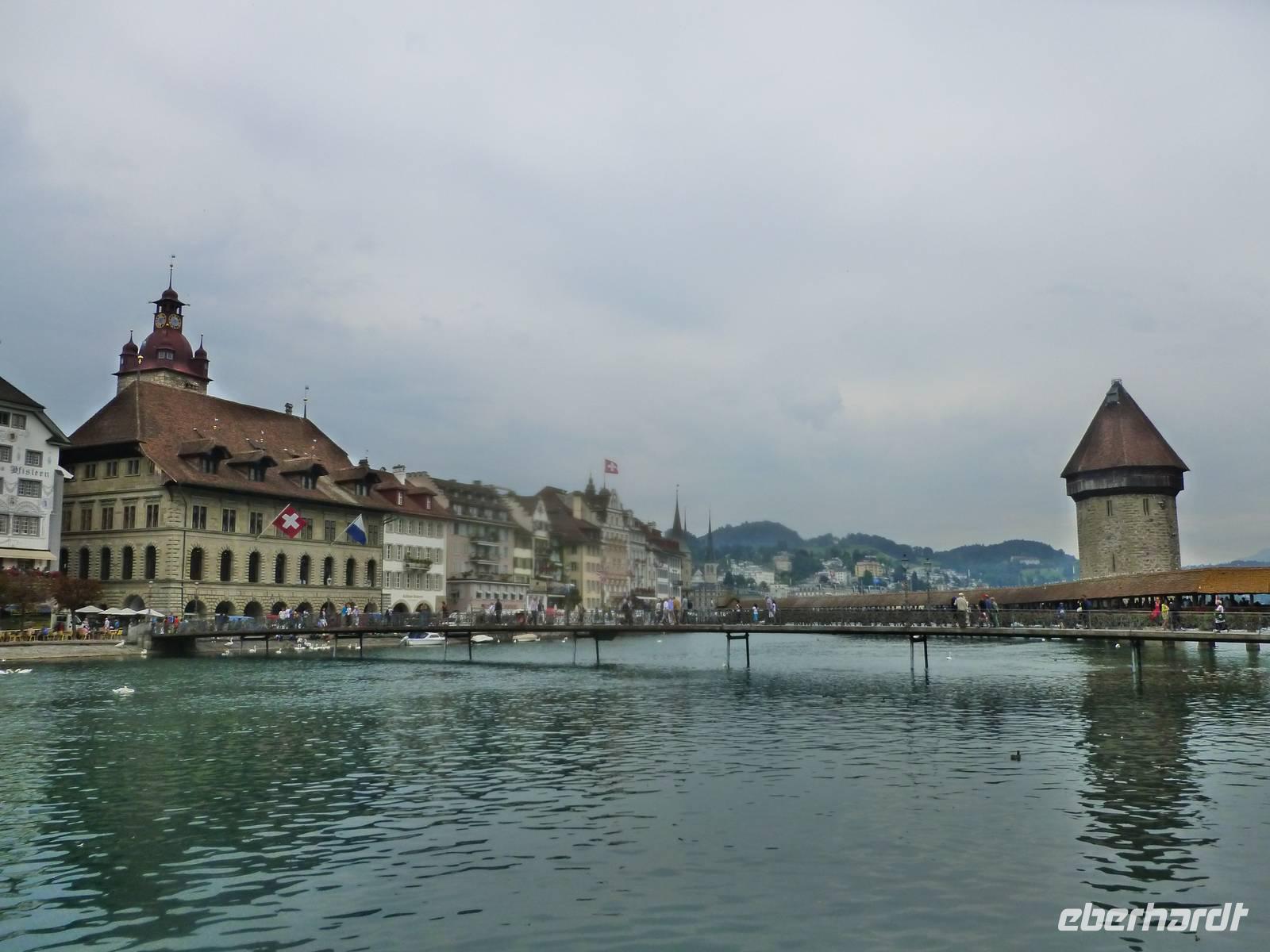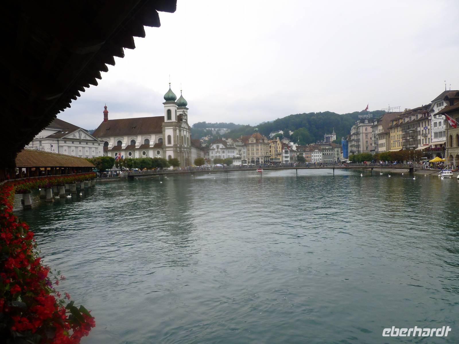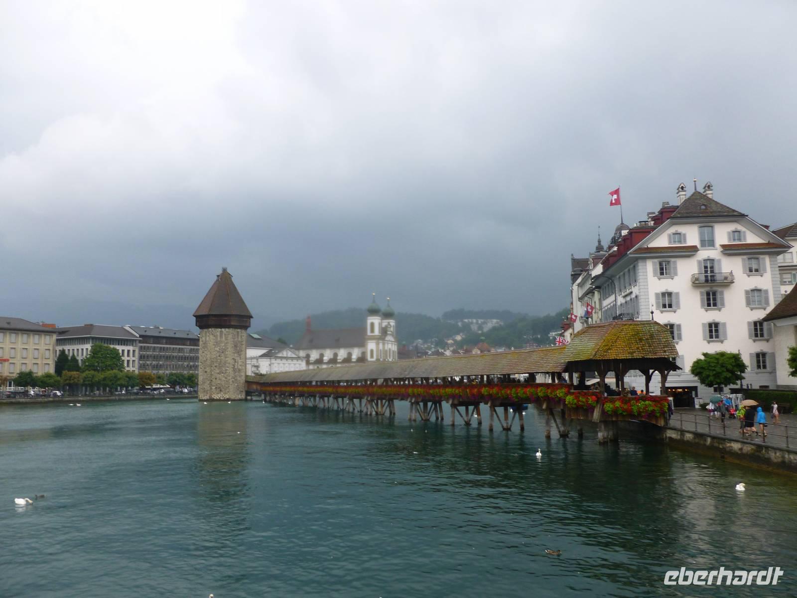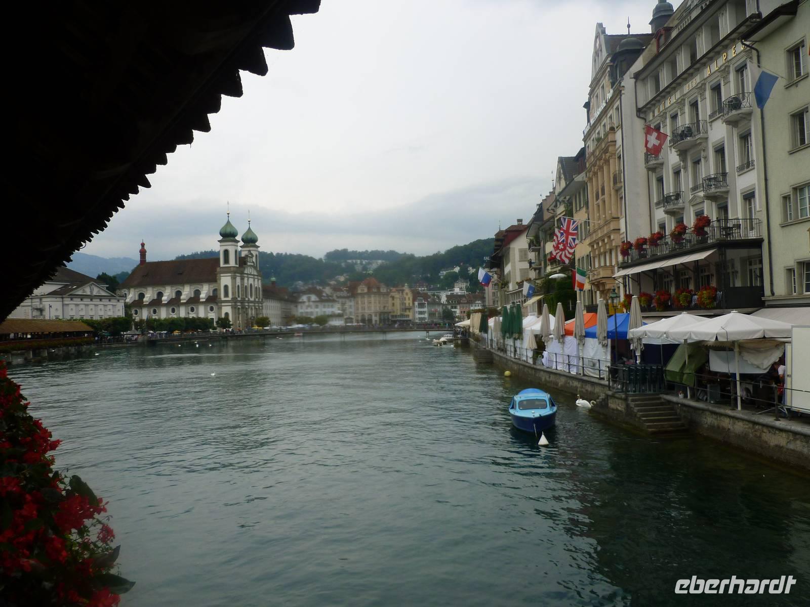 Nach einer erholsamen Nacht auf dem Pilatus brachte uns am nächsten Morgen die Luftseilbahn vom Pilatus hinunter zum Fräkmüntegg und anschließend ging es dann mit einer Umlaufbahn weiter bis Kriens. Dort erwartete uns bereits unser Bus und nach wenigen Minuten erreichten wir das Stadtzentrum von Luzern. Die Stadt und die Region Vierwaldstättersee gelten als die "Essenz der Schweiz". Denn nirgendwo findet man so viel Schweiz auf kleinstem Raum - eine Stadt mit viel Charme und einem mittelalterlichen Kern, den charakteristischen Vierwaldstättersee mit Europas größter Binnenschifffahrt und ein wunderschönes Alpenpanorama mit unverwechselbaren Bergen. Während einer tollen Stadtführung erfuhren wir einiges über die jahrhundertealte Luzerner Geschichte und spazierten natürlich auch über die weltberühmte Kapellbrücke. Diese wurde in der ersten Hälfte des 14. Jahrhunderts als Teil der Stadtbefestigung errichtet und hat ihren Namen von der benachbarten St.-Peters-Kapelle. Auch ein Besuch der Jesuitenkirche darf nicht fehlen, diese Kirche aus dem 17. Jahrhundert ist schließlich der erste große sakrale Barockbau der Schweiz. Leider fing es nunmehr heftig zu regnen an. Nichts desto trotz - unser Spaziergang führte uns weiter durch die herrliche Altstadt. Historische, mit Fresken geschmückte Häuser umsäumen in der Altstadt rechts der Reuss einige malerische Plätze. Sehr attraktiv ist der Weinmarkt, wo die Luzerner 1332 den eidgenössischen Bund mit Uri, Schwyz und Unterwalden beschworen haben. Am Nachmittag führte uns unsere Reise dann weiter entlang des Sarner Sees, des Lungerersees und über den 1.007 Meter hohen Brünigpass hinüber in den Kanton Bern. Durch das Holschnitzer-Dorf Brienz fuhren wir auf der Nordseite des Brienzer Sees entlang bis nach Interlaken. Dort erreichten wir am frühen Abend unser Hotel "Carlton-Europe", hier sollten wir nun die nächsten drei Nächte verbringen. Interlaken liegt im Berner Oberland zwischen dem Thuner See und dem Brienzer See, auf einer "Bödeli" genannten Schwemmebene. Daher leitet sich auch der Name ab (lateinisch inter = zwischen und lacus = See). Nach einem schmackhaften Abendessen im Hotel nutzen einige unserer Gäste noch die Gelegenheit zu einem abendlichen Bummel durch Interlaken.