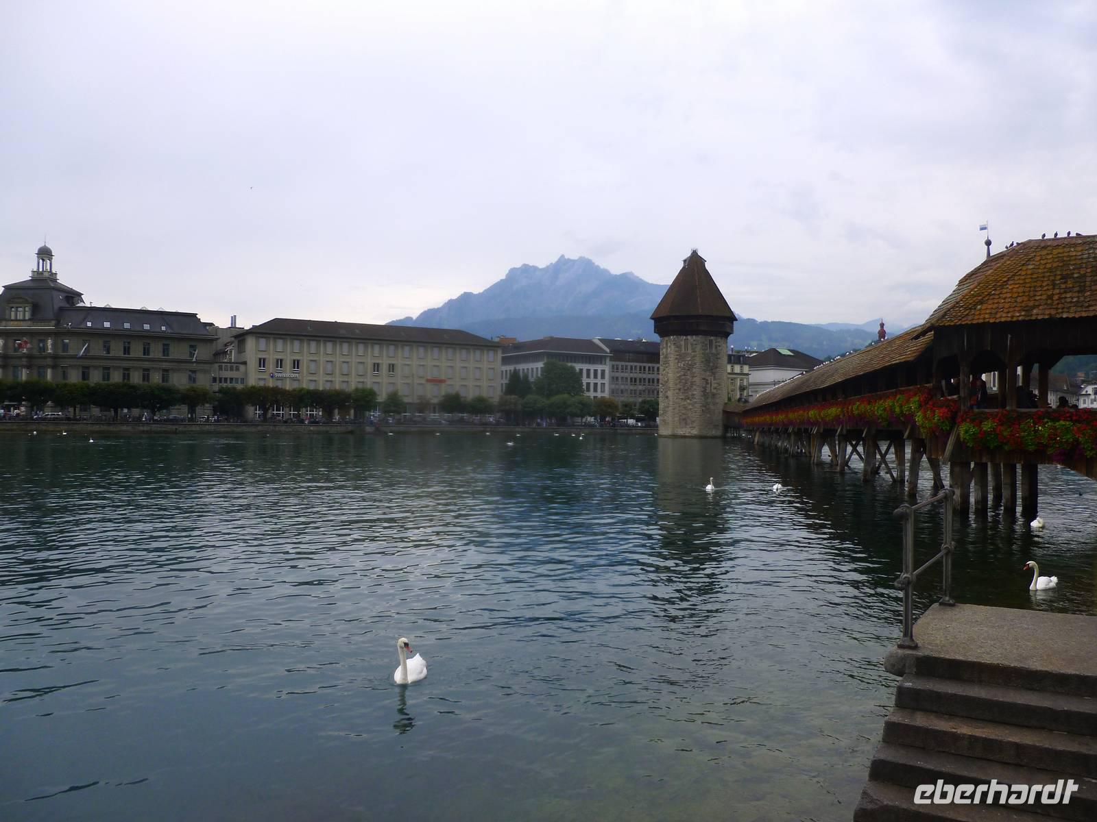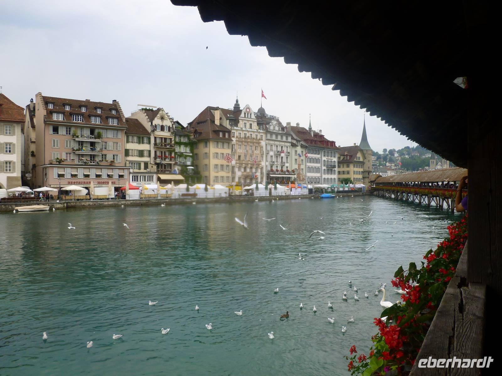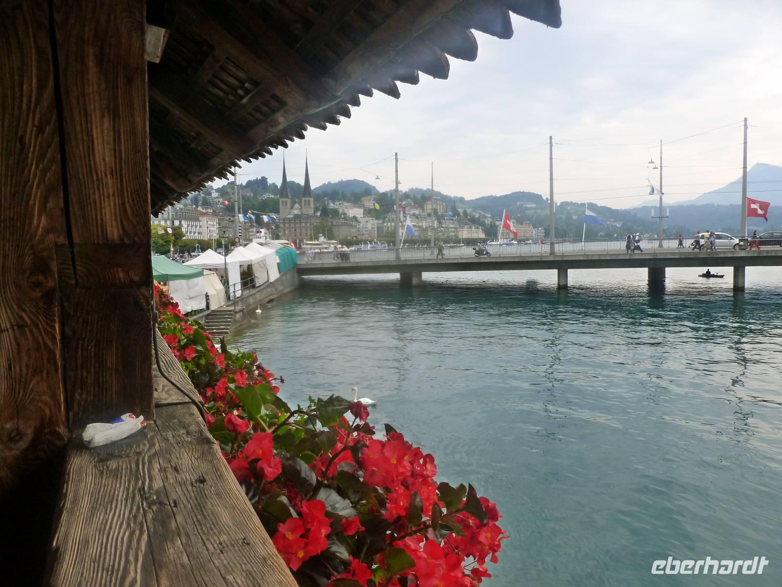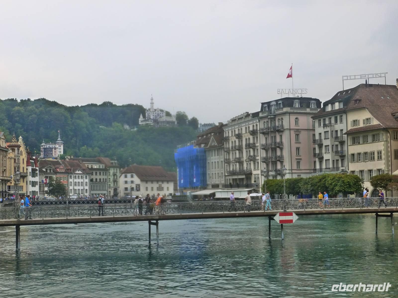 Nach einer erholsamen Nacht auf dem Pilatus brachte uns am nächsten Morgen die Luftseilbahn vom Pilatus hinunter zum Fräkmüntegg und anschließend ging es dann mit einer Umlaufbahn weiter bis Kriens. Dort erwartete uns bereits unser Bus und nach wenigen Minuten erreichten wir das Stadtzentrum von Luzern. Die Stadt und die Region Vierwaldstättersee gelten als die "Essenz der Schweiz". Denn nirgendwo findet man so viel Schweiz auf kleinstem Raum - eine Stadt mit viel Charme und einem mittelalterlichen Kern, den charakteristischen Vierwaldstättersee mit Europas größter Binnenschifffahrt und ein wunderschönes Alpenpanorama mit unverwechselbaren Bergen. Während einer tollen Stadtführung erfuhren wir einiges über die jahrhundertealte Luzerner Geschichte und spazierten natürlich auch über die weltberühmte Kapellbrücke. Diese wurde in der ersten Hälfte des 14. Jahrhunderts als Teil der Stadtbefestigung errichtet und hat ihren Namen von der benachbarten St.-Peters-Kapelle. Auch ein Besuch der Jesuitenkirche darf nicht fehlen, diese Kirche aus dem 17. Jahrhundert ist schließlich der erste große sakrale Barockbau der Schweiz. Leider fing es nunmehr heftig zu regnen an. Nichts desto trotz - unser Spaziergang führte uns weiter durch die herrliche Altstadt. Historische, mit Fresken geschmückte Häuser umsäumen in der Altstadt rechts der Reuss einige malerische Plätze. Sehr attraktiv ist der Weinmarkt, wo die Luzerner 1332 den eidgenössischen Bund mit Uri, Schwyz und Unterwalden beschworen haben. Am Nachmittag führte uns unsere Reise dann weiter entlang des Sarner Sees, des Lungerersees und über den 1.007 Meter hohen Brünigpass hinüber in den Kanton Bern. Durch das Holschnitzer-Dorf Brienz fuhren wir auf der Nordseite des Brienzer Sees entlang bis nach Interlaken. Dort erreichten wir am frühen Abend unser Hotel "Carlton-Europe", hier sollten wir nun die nächsten drei Nächte verbringen. Interlaken liegt im Berner Oberland zwischen dem Thuner See und dem Brienzer See, auf einer "Bödeli" genannten Schwemmebene. Daher leitet sich auch der Name ab (lateinisch inter = zwischen und lacus = See). Nach einem schmackhaften Abendessen im Hotel nutzen einige unserer Gäste noch die Gelegenheit zu einem abendlichen Bummel durch Interlaken.