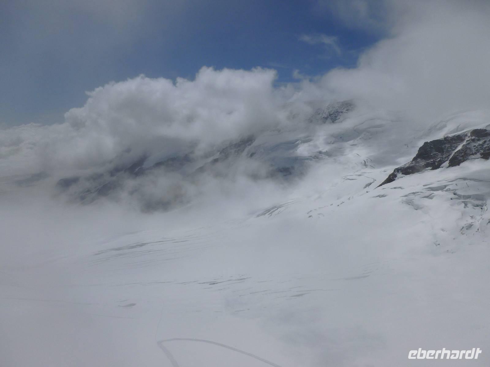 Heute stand nun ein ganz besonderer Höhepunkt dieser Reise durch die Bergwelt der Schweiz an. Unser Bus blieb in Interlaken stehen und wir stiegen heute einfach mal komplett auf die Bahn um. Mit der Berner-Oberland-Bahn starteten wir am Morgen am Bahnhof in Interlaken-Ost und in reichlich 30 Minuten waren wir auf bereits über 1.000 Metern im beliebten Ferienort Grindelwald angekommen. Dort stiegen wir ein erstes Mal um und es ging nun weiter mit der Wengernalpbahn bis zur Kleinen Scheidegg. Das ist die über 2.000 Meter hohe Passhöhe zwischen Eiger und Lauberhorn. Auf der im Nebel liegenden Kleinen Scheidegg hieß es für uns nochmals umsteigen und die 1912 eröffnete Jungfraubahn brachte uns schließlich auf einer Strecke von 9,3 Kilometern zum Jungfraujoch. Hier erreichten wir nun den mit 3.454 Metern höchstgelegenen Bahnhof Europas, daher auch der Beiname "Top of Europe". Das Jungfraujoch ist übrigens mit 3.471 Metern der tiefste Punkt im Verbindungsgrat zwischen dem Mönch und der Jungfrau. Etwa 600 Meter östlich des Jochs erhebt sich die sogenannte "Sphinx", ein markantes Spitzchen mit einer Höhe von 3.571 Metern. Sie trägt eine Aussichtsplattform und ein wissenschaftliches Observatorium. Wir hatten riesiges Glück, denn eigentlich erwischten wir entgegen der Prognosen relativ gutes Wetter und das Alpenpanorama war zeitweise fantastisch! Die meisten von uns besuchten natürlich auch den herrlichen Eispalast, denn dieser ist einzigartig! Am frühen Nachmittag traten wir mit grandiosen Bergerlebnissen die Heimfahrt an. Diese führte uns wiederum über die Kleine Scheidegg und von hier aus auf der anderen Seite über Wengen nach Lauterbrunnen. Hier hatten wir übrigens vom Bahnhof aus einen tollen Blick auf den Staubbach-Wasserfall! In Lauterbrunnen hieß es nun auch ein letztes Mal umsteigen und die letzte Etappe führte uns jetzt zum Ausgangspunkt unserer heutigen Rundfahrt, dem Bahnhof Interlaken-Ost. Von dort aus waren es nunmehr nur noch wenige Gehminuten bis zu unserem Hotel. Ein erlebnisreicher Tag ging somit zu Ende!