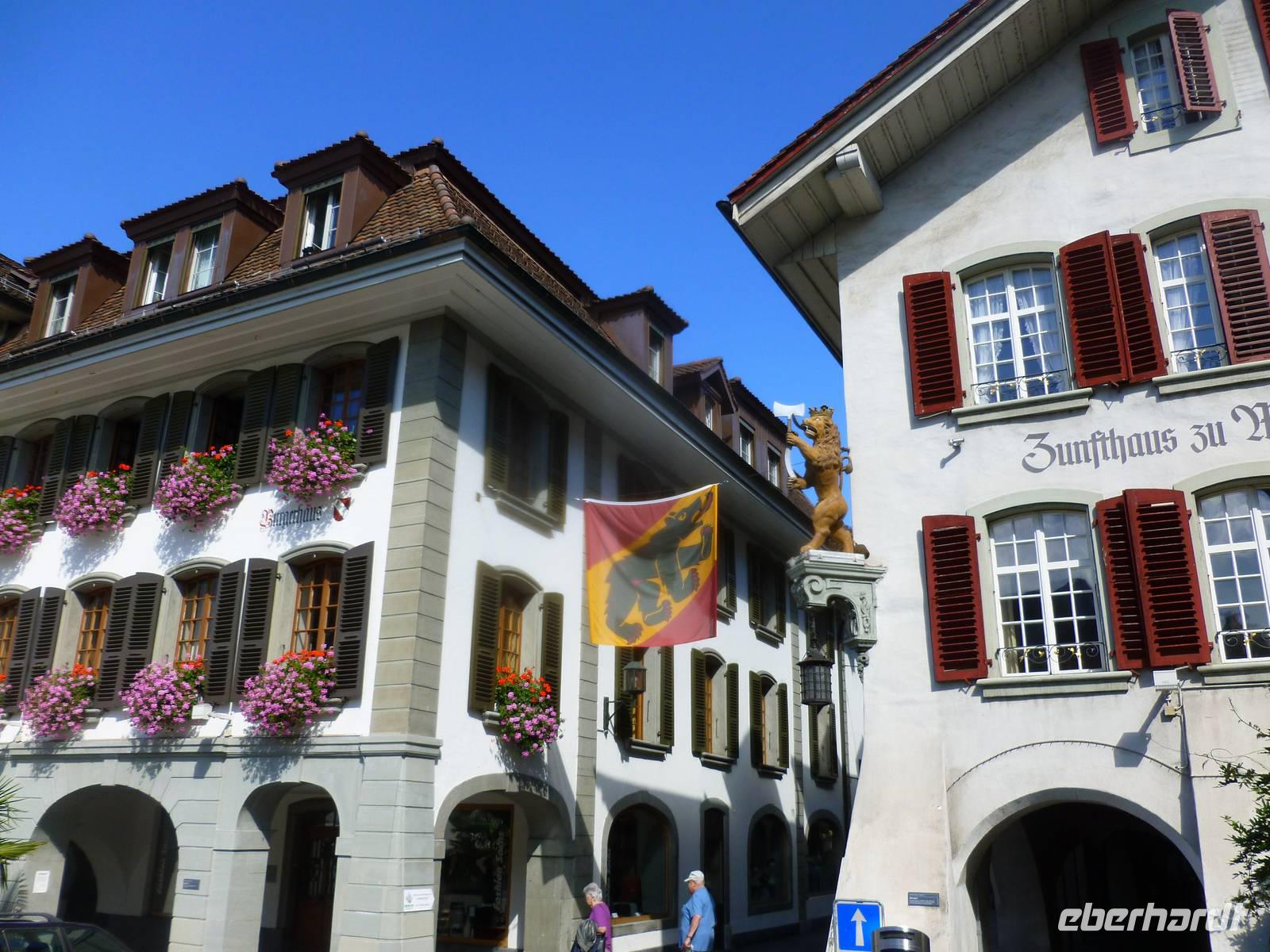 Nun war auch schon der vorletzte Ausflugstag unserer Reise durch die Schweiz angebrochen - wie schnell die Zeit doch vergeht! Wir fuhren mit unserem Bus auf der Südseite des Thuner Sees entlang bis Thun. Während einer Stadtführung konnten wir einiges aus der Geschichte der Stadt erfahren. Das Wahrzeichen ist das über der Altstadt thronende Schloss aus dem 12. Jahrhundert. Die reizvolle Altstadt liegt an der Aare. Die verkehrsberuhigte Hauptgasse wird geprägt von charakteristischen Hochgehsteigen, die nach Berner Vorbild unter den Lauben verlaufen. Der Wettergott meinte es auch heute nochmals gut mit uns und somit unternahm ein kleiner Teil unserer Gäste am Nachmittag eine Schifffahrt auf dem Thuner See und fuhr daher direkt mit dem Schiff von Thun nach Interlaken zurück. Die anderen Gäste gelangten mit dem Bus zurück und der restliche Nachmittag stand für eigene Aktivitäten zur Verfügung.