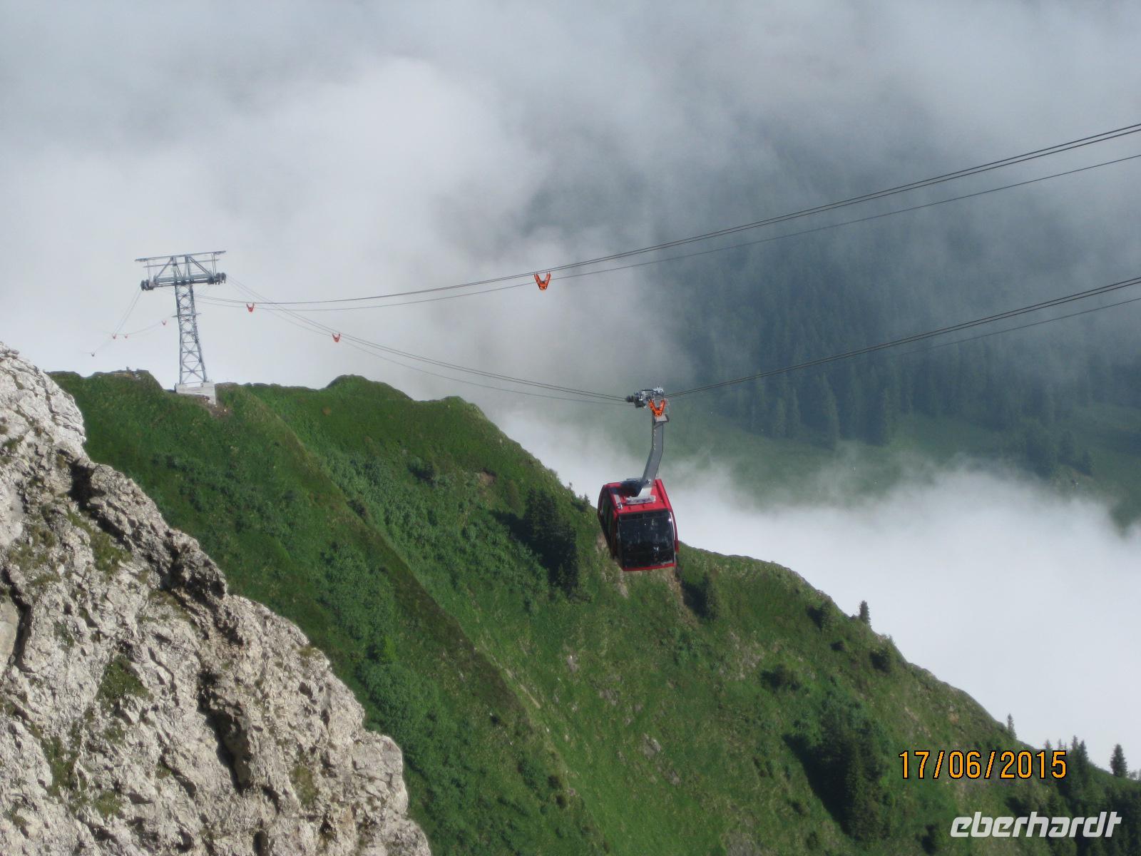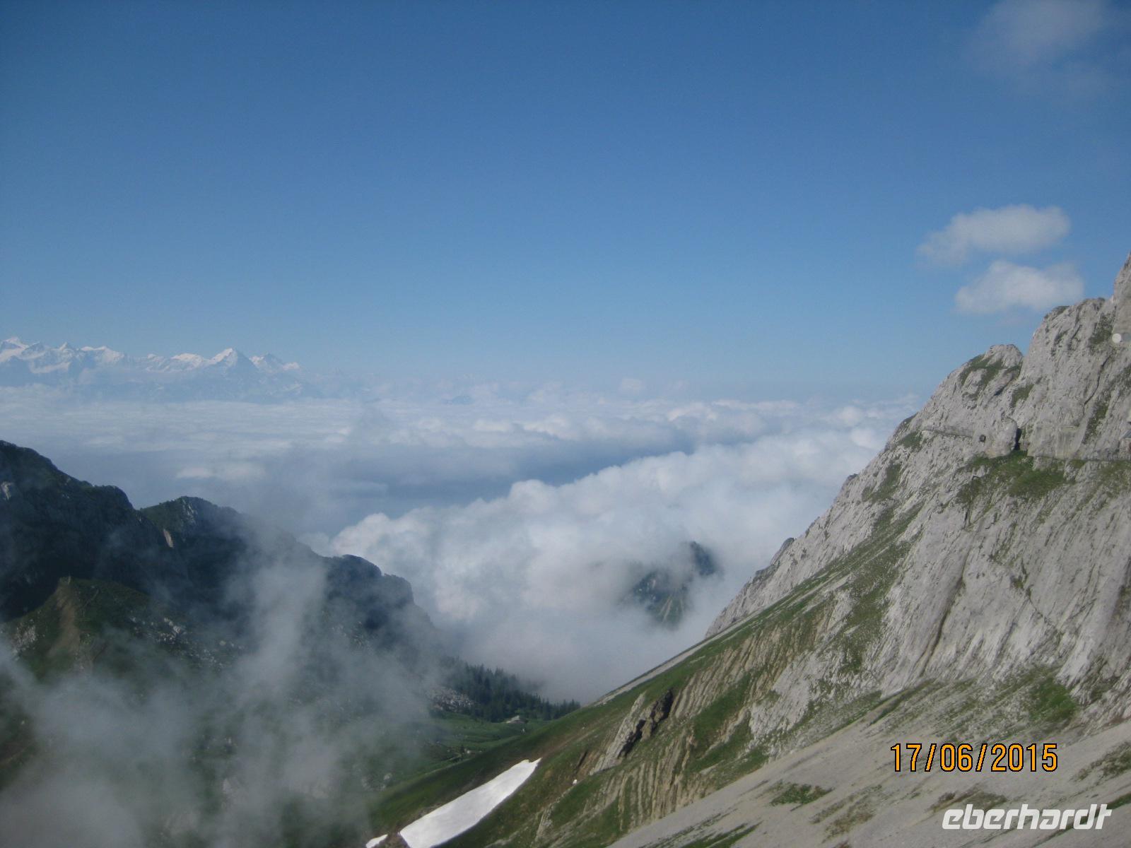 Der heutige Tag beginnt für uns alle etwas früher. Bereits zum Frühstück erwartet man uns an der Spitze des Säntis. Und so treffen wir uns bereits früh am Morgen und fahren mit der Schwebebahn auf den Säntis. Auf 2.502 Metern angekommen, genießen wir zunächst einen recht nebligen Blick vom Berg aus. Im Restaurant genießen wir ein Frühstücksbuffet der besonderen Art. Nachdem wir zahlreiche Köstlichkeiten probiert haben, erwartet uns im Anschluss daran eine Führung, bei welcher wir die verschiedenen Anlagen auf dem Gipfel kennenlernen und viele interessante Details zur Geschichte des Berges erfahren. Nachdem wir mit der Schwebebahn wieder die Talstation erreicht haben, fahren wir am Mittag nach Appenzell. Appenzell ist der Hauptort Appenzell Innerrhodens und ist besonders bekannt für sein hübsches Ortsbild, welches durch die reichhaltige Fassadenverzierung besticht. Die alten Häuser sind mit reichen Schnitzereien und bunten Verzierungen versehen und besonders nett anzuschauen. Während eines kleinen Bummels sowie eines anschließenden Besuchs der Appenzeller Alpenbitter AG lernen wir den kleinen besonderen Ort kennen. Am Nachmittag erreichen wir unser Hotel wieder und unternehmen eine geführte Wanderung mit unserem ortskundigen Wanderführer Albert, wobei wir viel zur Region rundum der Schwägalp erfahren.
