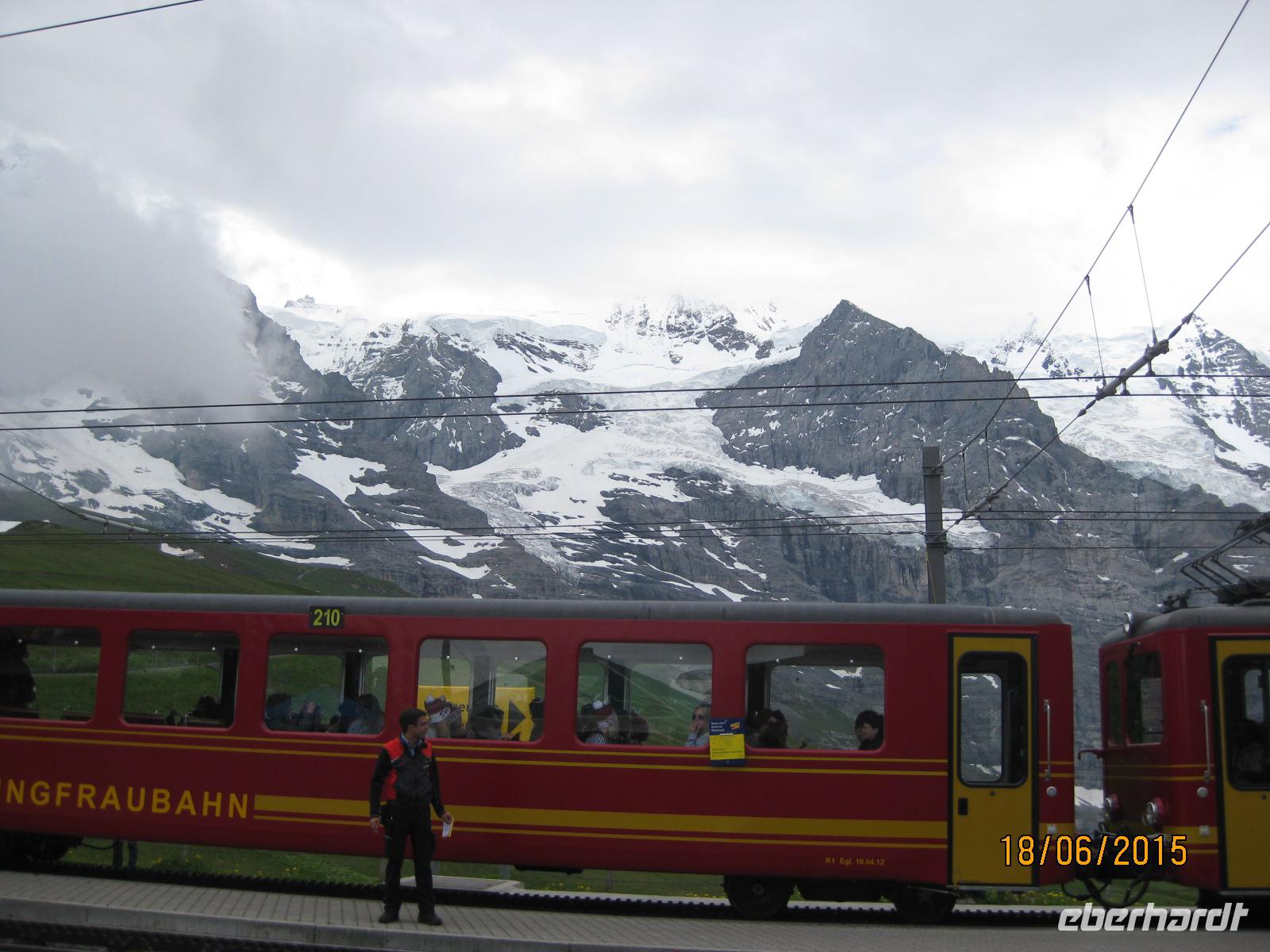 Mönch, Eiger, Jungfrau - heute fahren wir auf das Jungfraujoch! Nicht mit dem Bus sondern mit dem Zug fahren wir heute über Grindelwald weiter mit der Zahnradbahn zur Kleinen Scheidegg. Von dort geht es mit der Jungfraubahn durch den Eiger zur höchstgelegenen Bahnstation Europas, dem Jungfraujoch in 3.454 Metern Höhe. Sieben der neun Kilometer langen Bahnstrecke führen allein durch einen Tunnel, welcher mühsam zur damaligen Zeit entstand und heute viele tausende Besucher zum Jungfraujoch bringt. Auf 3.454 Metren Höhe entstand etwas Einmaliges. Uns wird eine Aussichtsplattform, ein Eispalast im Gletscher mit einzigartigen Eisplastiken sowie ein Erlebnisrundweg, welcher uns viel zu Geschichte des Dreigestirns erzählt, geboten. Auf unserem Rückweg führt uns unsere Route über die Kleine Scheidegg nach Lauterbrunnen. Von hier kehren wir mit der Berner Oberland Bahn zurück nach Interlaken.