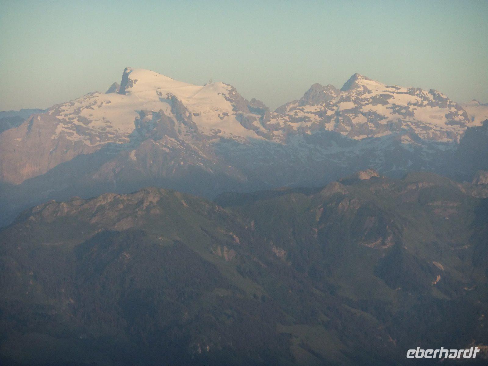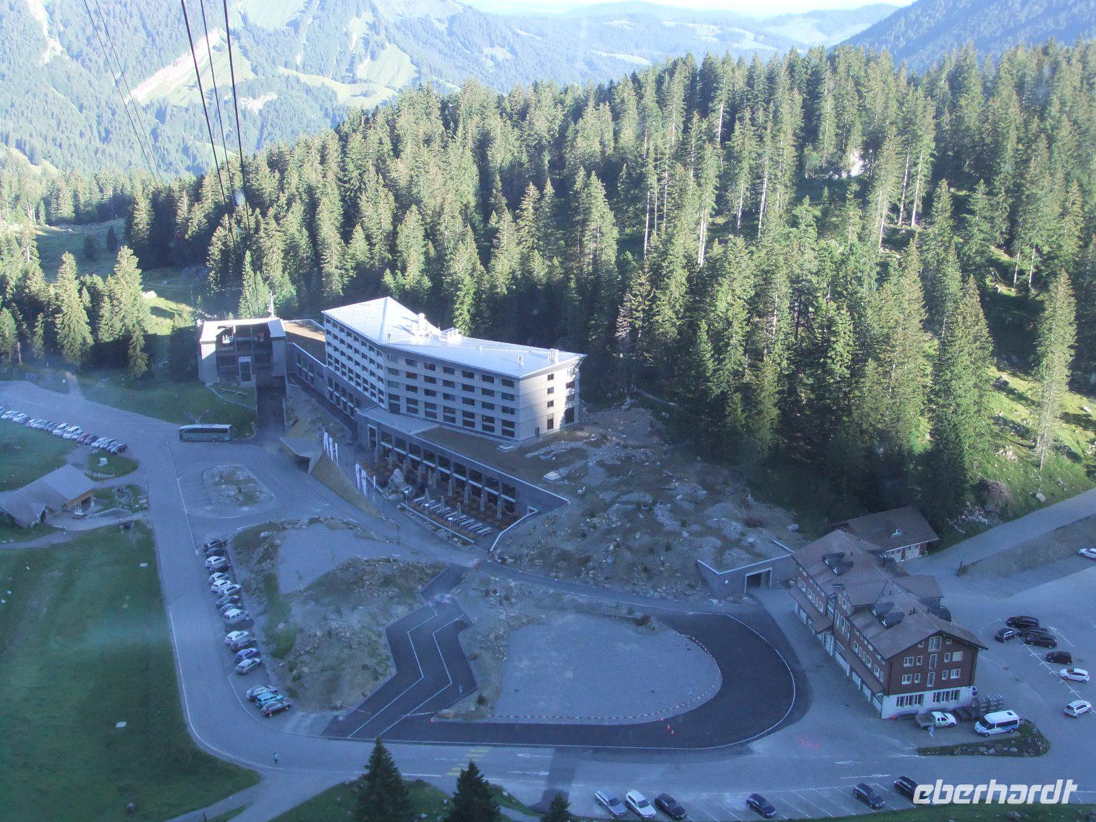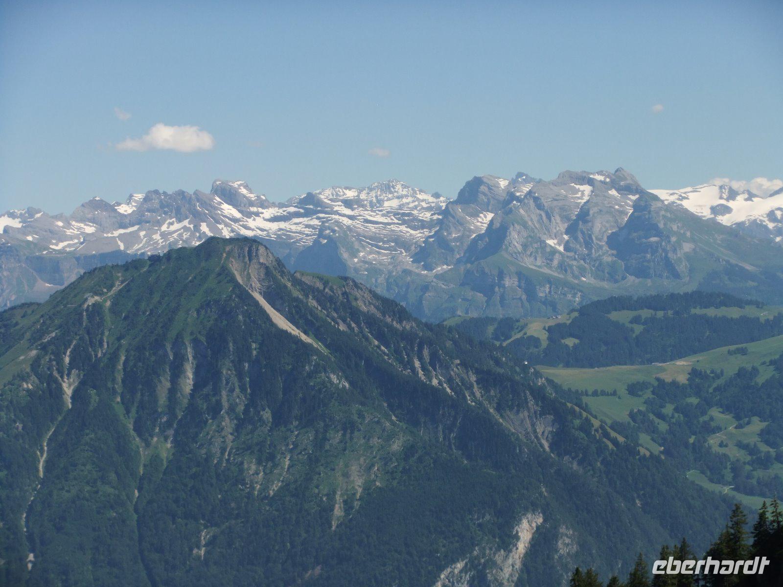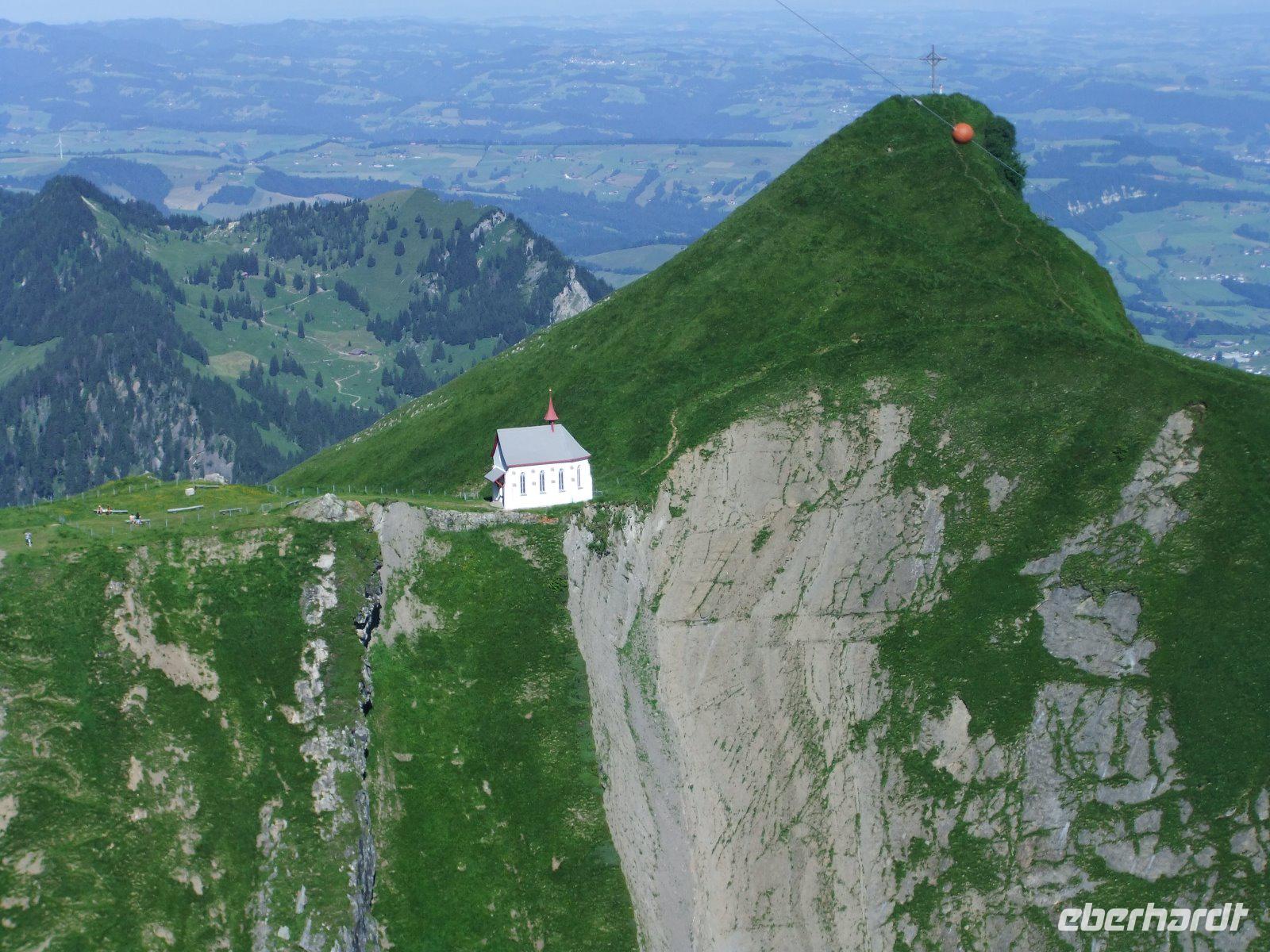 34 Eberhardt-Gäste freuen sich auf eine Reise in die Schweiz. Pünktlich stehen alle an den Zustiegsstellen und anfangs kommen wir auch gut voran. Dann aber, so erfahren wir von Chauffeur Mike, wird ein Stau angekündigt mit 1,5 Stunden Wartezeit. Wir verlassen die Autobahn und fahren durch das Neue Fränkische Seenland und Nördlingen. So erreichen wir fast pünktlich unsere letzte Zustiegsstelle bei Ulm. Von hier geht es weiter nach Lindau, wo ein Tankstopp eingelegt wird. Dann fahren wir durch den Pfändertunnel und durch das Rheintal. Wir sehen an der gegenüberliegenden Talseite das Schloss Vaduz, biegen aber bald ins Toggenburg ab, wo der Skispringer Simon Amman seine Heimat hat. Linkerhand präsentieren sich uns die Gipfel der Churfirsten, rechterhand grüßt bald der Säntis. Nun geht es hinauf zur Schwägalp. Im neuen Hotel auf 1370 m Höhe werden wir schon erwartet. Schnell sind die Zimmer bezogen und bald treffen wir uns zum Abendessen im Restaurant.