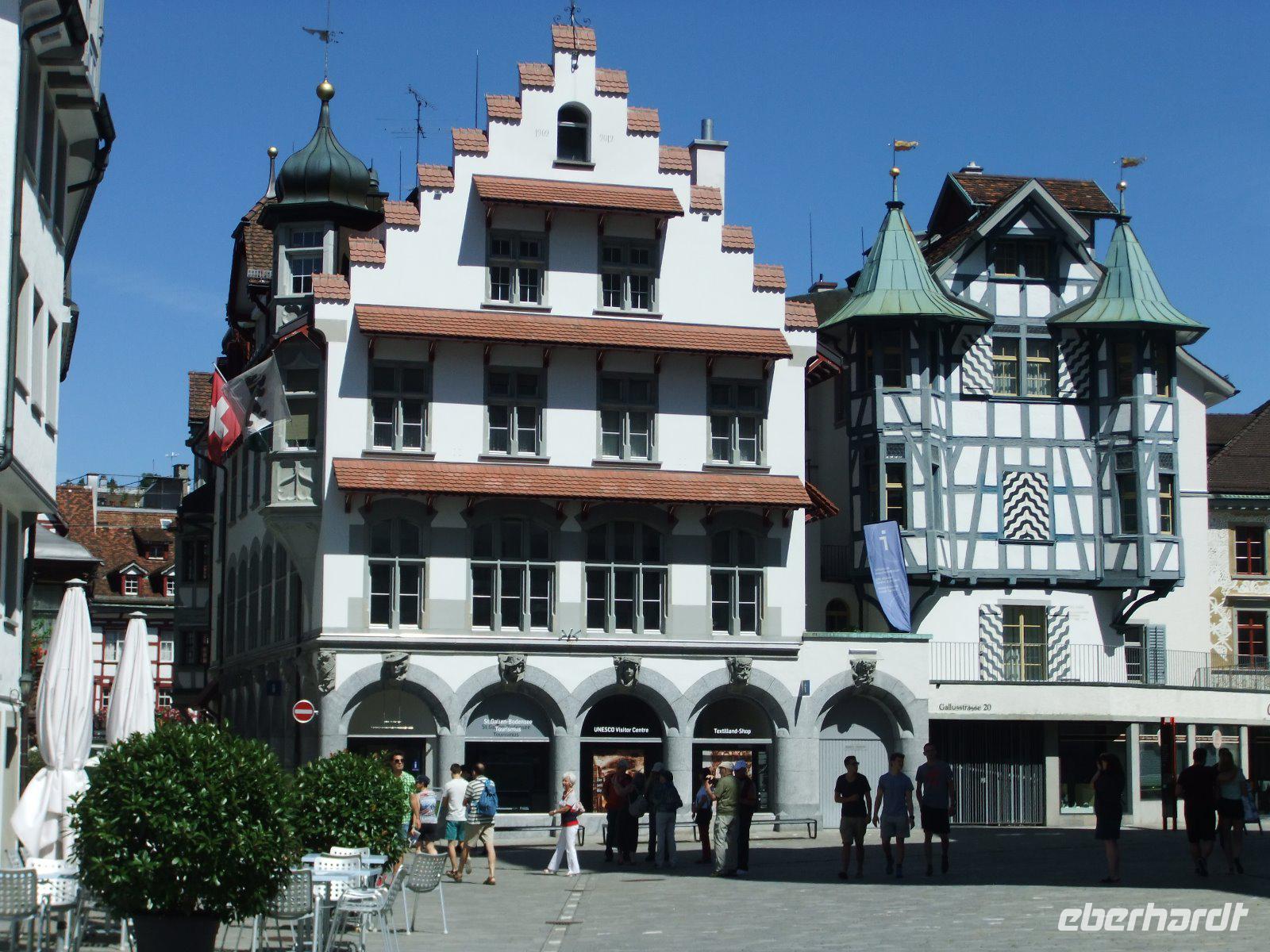Unser erstes Ziel heute ist St. Gallen. Nach 45minütiger Fahrt haben wir die Hauptstadt des gleichnamigen Kantons erreicht. In zwei Gruppen starten wir zu einer Stadtführung. Dabei werfen wir anfangs einen Blick in die Geschichte, erfahren u.a., welch große Rolle die Leinenweberei und die Stickerei gespielt haben und woher die Ausdrücke „steinreich" und „Fahrt ins Blaue" stammen. Vorbei am Waaghaus geht es ins Zentrum. Hier sehen wir zahlreiche Fachwerkbauten und viele prunkvolle Erker. Durch die Multergasse laufen wir zum Gallusplatz. Unterwegs entdecken wir Hermes, den Gott des Handelns, und kommen am Brunnen zur Erinnerung an die Vollendung der Wasserversorgung, an der 1. Textilbörse der Schweiz und an der ehemaligen Volksküche vorbei. Ein Höhepunkt unseres Aufenthalts in St. Gallen ist der Besuch der berühmten Stiftsbibliothek im schönsten profanen Rokokosaal der Schweiz. Sie umfasst rund 17.000 Bände und eine einzigartige Sammlung frühmittelalterlicher Handschriften. Unser letzter Besuch gilt der Kathedrale, die im 18. Jahrhunderts erbaut wurde, zu den schönsten spätgotischen Kirchenanlagen im Bodenseeraum gehört und allein schon durch die Größe des Kirchenschiffes beeindruckt. Es bleibt noch Zeit für einen individuellen Bummel, dann treffen wir uns wieder am Bus.