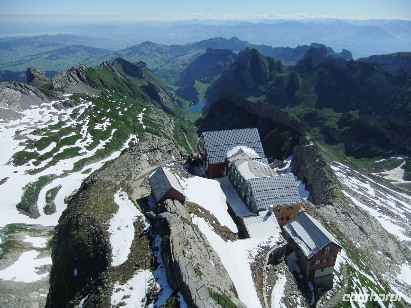 Heute geht unser erster Blick zum Himmel. Scheint wie gestern die Sonne? Ja, wir haben Glück! Mit der ersten Bahn schweben wir 10 Minuten lang hinauf auf den Säntisgipfel. Hier genießen wir bei traumhafter Sicht auf das Bergpanorama unser Frühstück. Wie einst der Berg für den Tourismus erschlossen wurde, erfahren wir in einem interessanten Film. Danach erkunden wir den 123 m hohen Säntisturm, werfen dabei einen spannenden Blick auch ins Innere. Bei den idealen Wetterbedingungen zieht es uns dann wieder hinaus auf die Terrasse. Wir entdecken den Bodensee und den Zürichsee, erkennen die Churfirsten und zahlreiche schneebedeckte Alpengipfel, darunter auch Mönch, Eiger und Jungfrau. Einige Gäste gehen noch hinauf bis zum historischen Wetterhäuschen. Dann bringt uns die Seilbahn wieder zur Schwägalp hinunter.